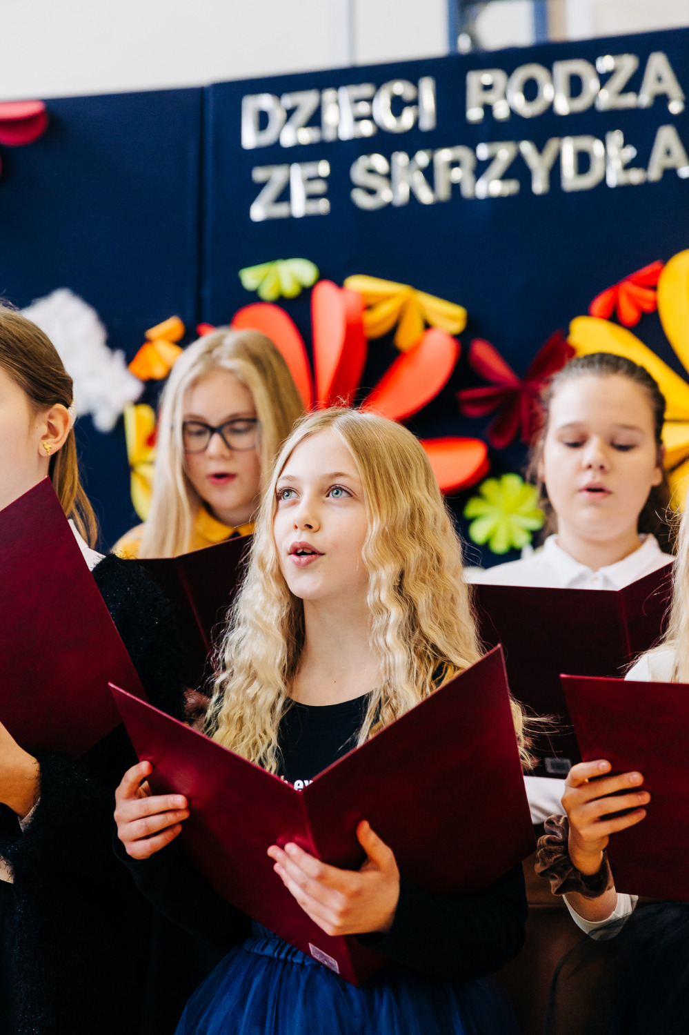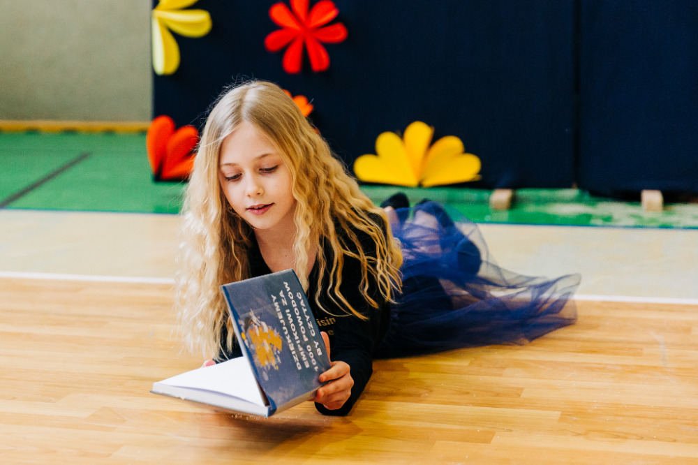 Kolejnym punktem było wręczenie dyplomu przez panią Lidię Stadnicką, menadżer regionalny Empiku. Po jego odebraniu ponownie zabrała głos pani Katarzyna Brzuzy, która zaprosiła zgromadzonych na mały pokaz talentów uczniów naszej szkoły. Chór szkolny, którym dyrygował Pan Michał Waśkiewicz, zaprezentował piosenkę kurpiowską Henryka Gadomskiego „Moja mama rózgą lała”, a „Piosenka o książce” Jana Węcowskiego została wykonana solo z towarzyszeniem zespołu instrumentalnego. Ostatnim punktem był pokaz tańca nowoczesnego, rzecz jasna – z książką – w wykonaniu jednej z uczennic.