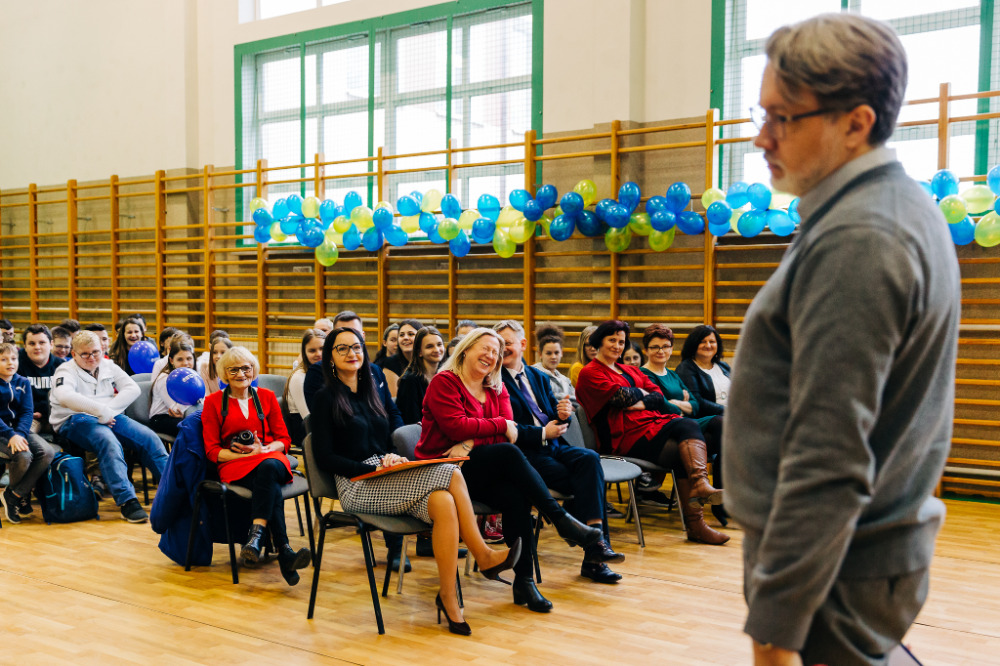 Spotkanie zakończył zabawny warsztat językowy przeprowadzony przez pana Michała Rusinka, pracownika Uniwersytetu Jagiellońskiego, pisarza i literaturoznawcy, byłego sekretarza noblistki, Wisławy Szymborskiej.