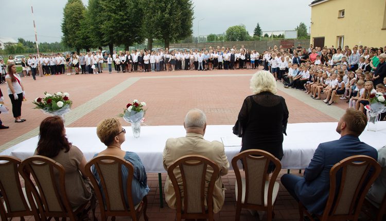 Życzenia w nowym roku szkolnym wszystkim uczniom oraz pedagogom  złożyli dyrektor szkoły Anna Kamińska, burmistrz Tadeusz Ciak i ksiądz proboszcz Stanisław Dziekan.