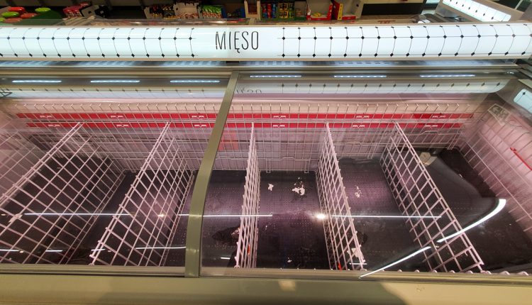 W nowej Biedronce przy Przasnyskiej sytuacja wyglądała nieco lepiej. Były papierowe ręczniki i ostatnie zgrzewki papieru toaletowego. Można było też kupić przecier pomidorowy. Lodówki z mięsem były jednak prawie całkowicie opróżnione.