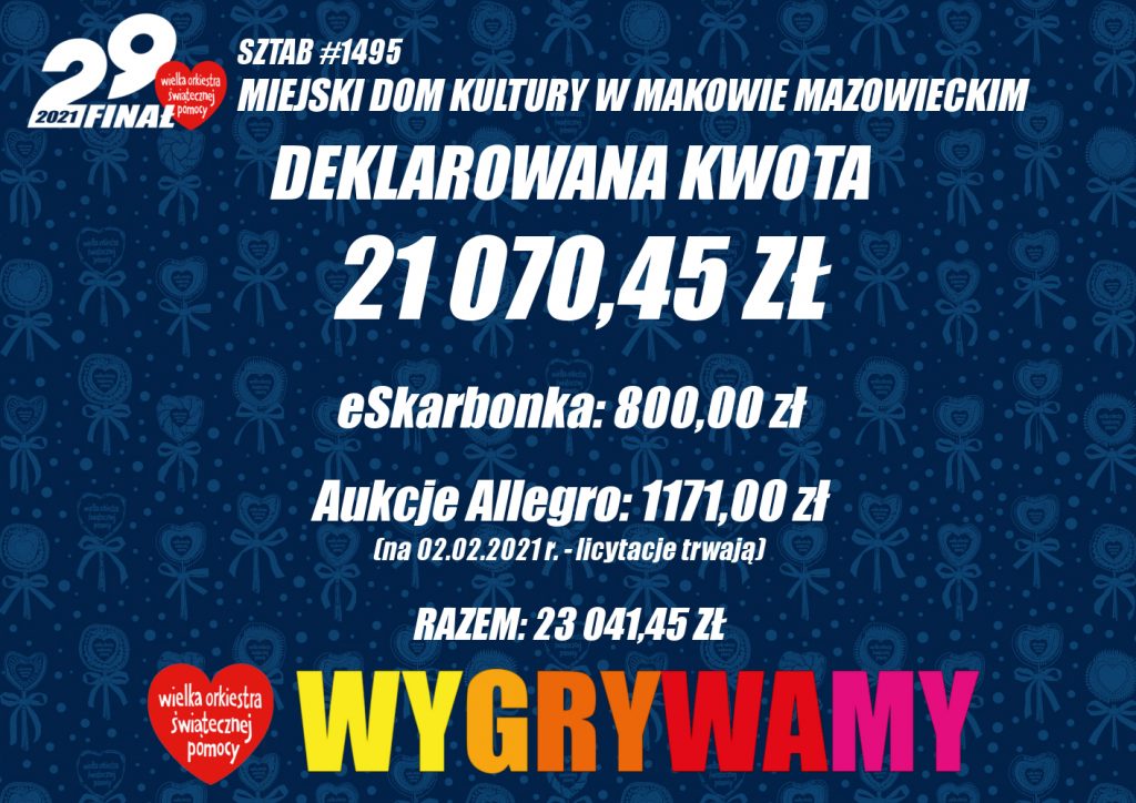 Emocje pomału opadają po cudownym dniu, jakim był 29 Finał Wielkiej Orkiestry Świątecznej Pomocy. Mimo pandemii i trudnych czasów, w reżimie sanitarnym, w bardzo okrojonym składzie z 19 wolontariuszami orkiestra zagrała w Makowie Mazowieckim. 29. Finału WOŚP, to Finał z Głową czyli wsparcie dla oddziałów dziecięcej laryngologii, otolaryngologii i diagnostyki głowy.
