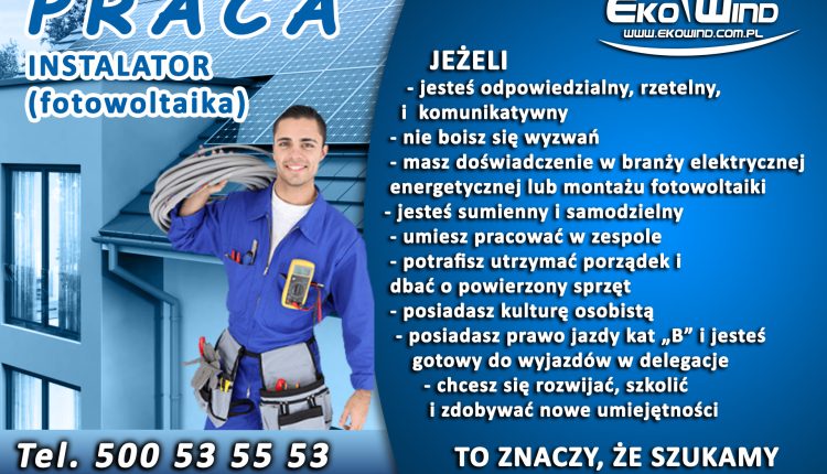Praca ! Monter Instalacji Fotowoltaicznych !!!