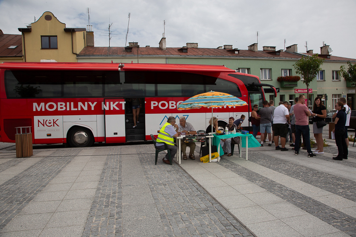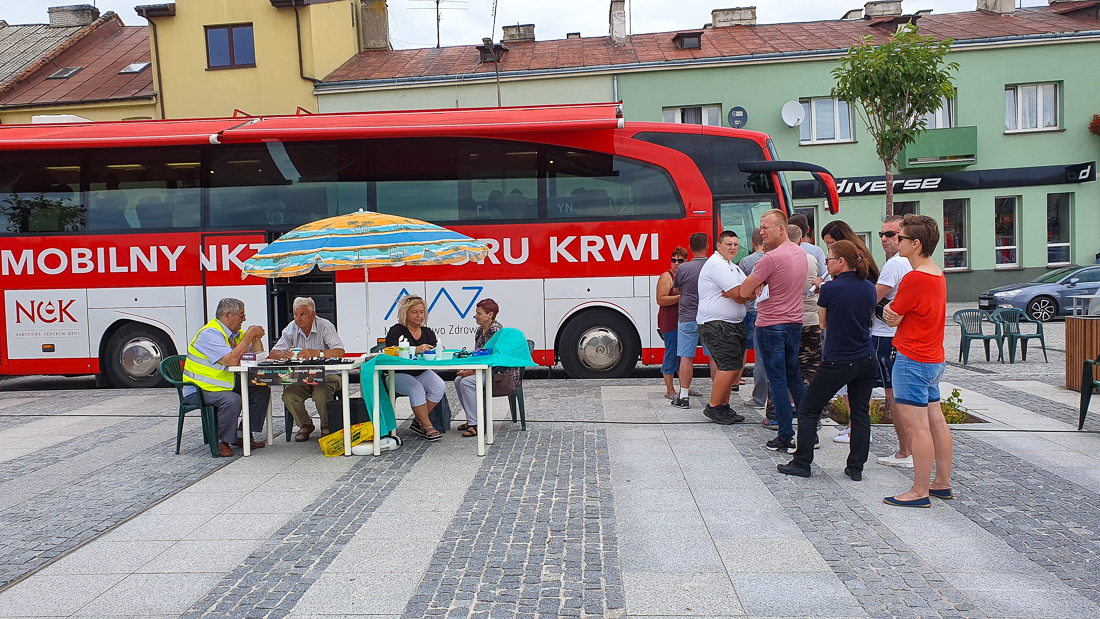 W sobotę 29 czerwca na makowskim Rynku można było honorowo oddać krew. Do wielkiego krwiobusa ustawiały się kolejki chętnych podzielić się tym najcenniejszym darem z potrzebującymi. Tak było od początku akcji, czyli od godz. 10:00 aż do jej zakończenia w 4 godziny później.