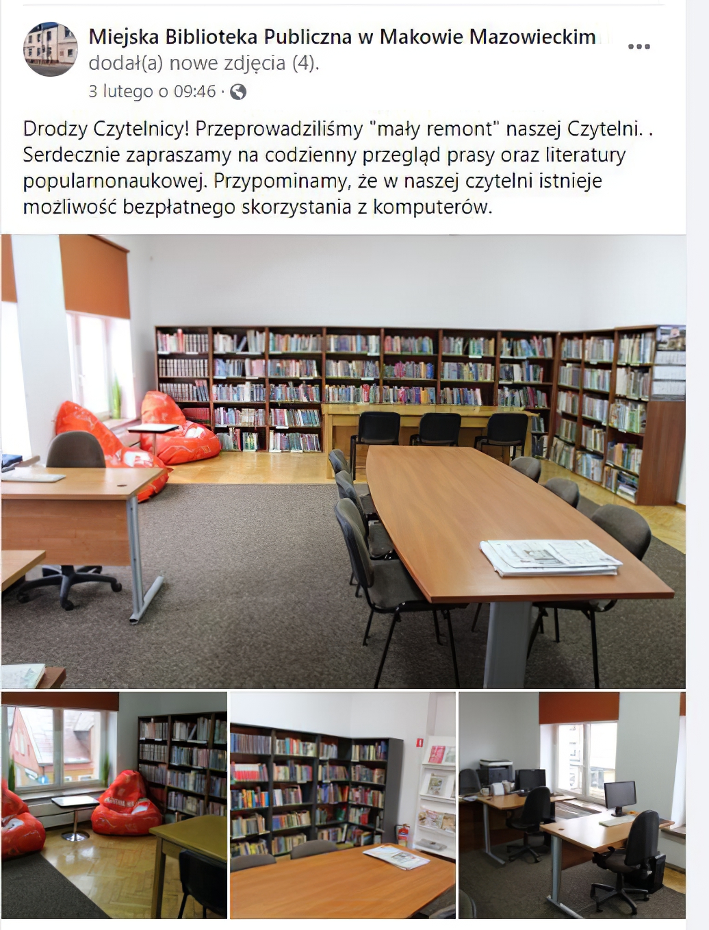 Na stronie Miejskiej Biblioteki Publicznej w Makowie ukazała się informacja, a zarazem zaproszenie do odnowionej czytelni. My również zachęcamy do odwiedzin.