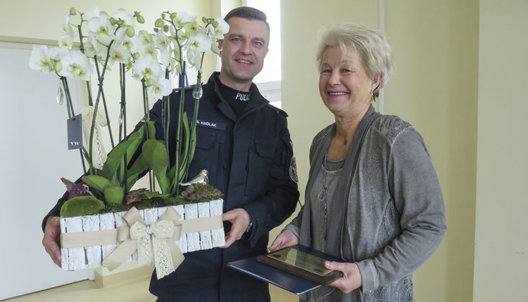 Komendant Powiatowy Policji w Makowie Mazowieckim insp. Marzena Zakrzewska w imieniu wszystkich policjantów, policjantek i pracowników cywilnych, podziękowała pani Bogumile Jakubiak za wiele lat pracy w makowskiej komendzie.