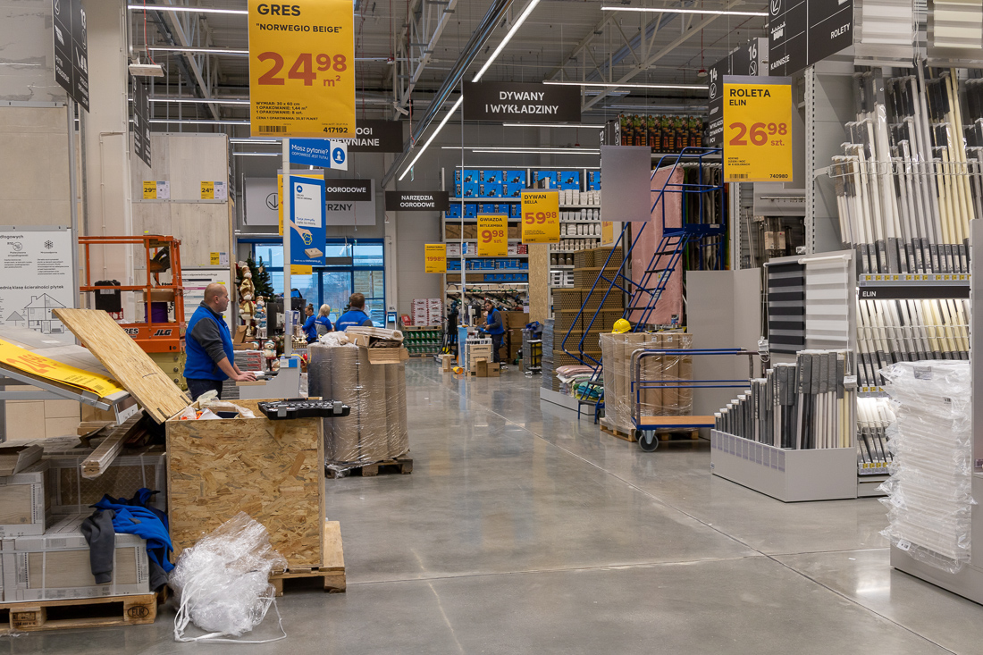 Istotnym elementem będą także dodatkowe usługi, które są wysoko cenione przez Klientów innych sklepów sieci – czyli transport, click&collect (możliwość zamówienia on-line i odbioru produktów w sklepie), click&delivery (możliwość zamówienia on-line z dostawą do domu). W sklepie oferowane będą także kredyty umożliwiające finansowanie zakupów oraz wiele świadczeń związanych z przygotowaniem produktów do wykorzystania w domu i ogrodzie.