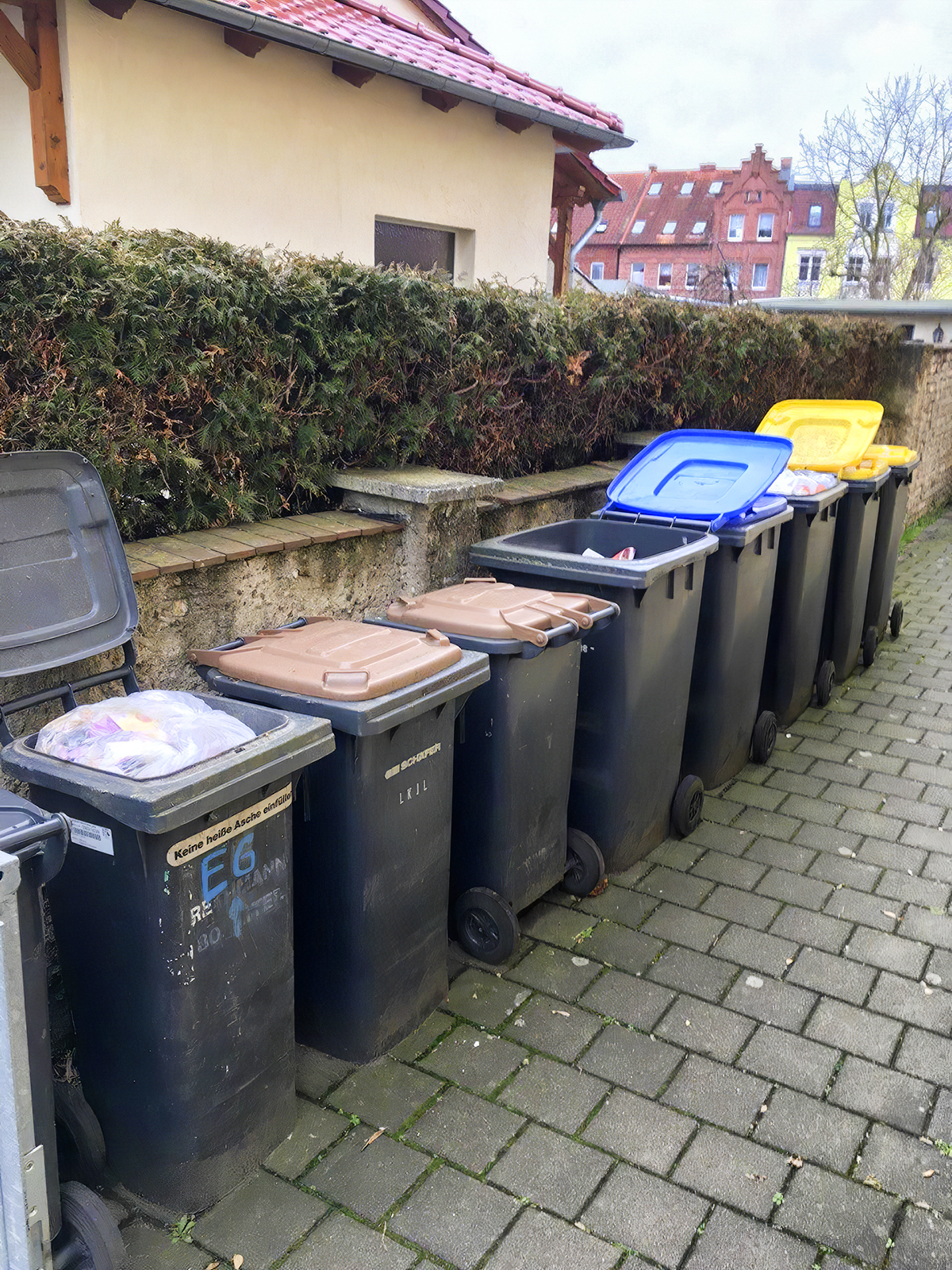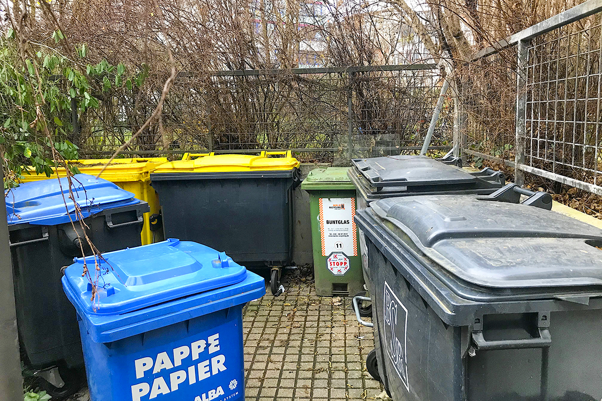 Moi rodzice, którzy mieszkają w domu w mieście pod Berlinem płacą około 230 EUR rocznie, co daje około 20 EUR miesięcznie za wszystkie kosze na śmieci. Płacą mniej w porównaniu ze mną. W Berlinie płacimy całkiem sporo.