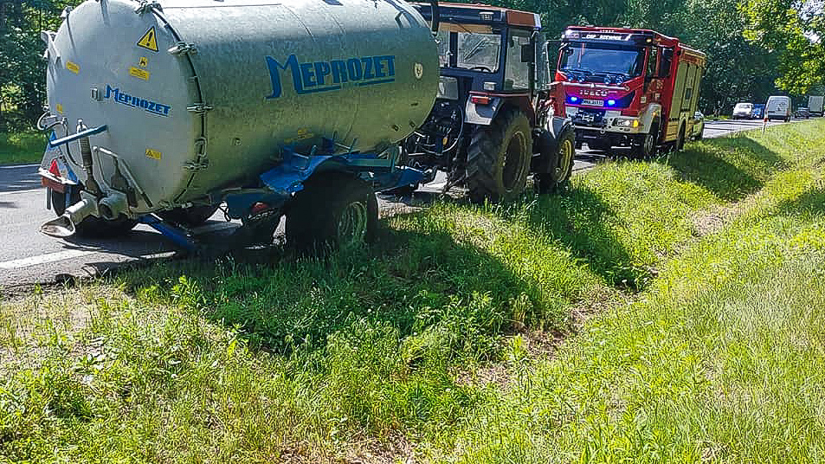 OSP Różan poinformowała dziś przed godziną (poniedziałek 20 lipca, godz. 13:50)), że na drodze krajowej nr 61, na wysokości Chrzanowa doszło do zderzenia ciągnika z samochodem osobowym. Ruch odbywa się wahadłowo.