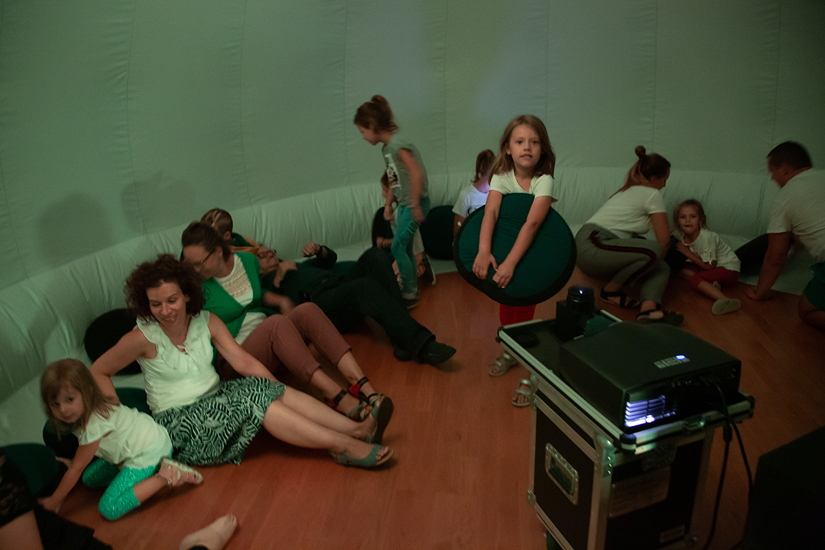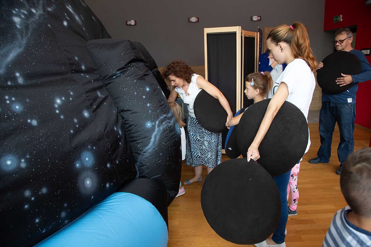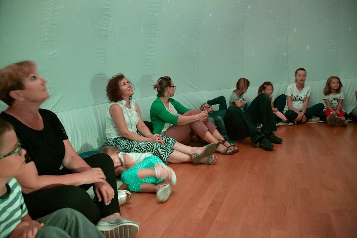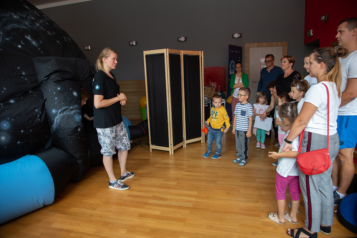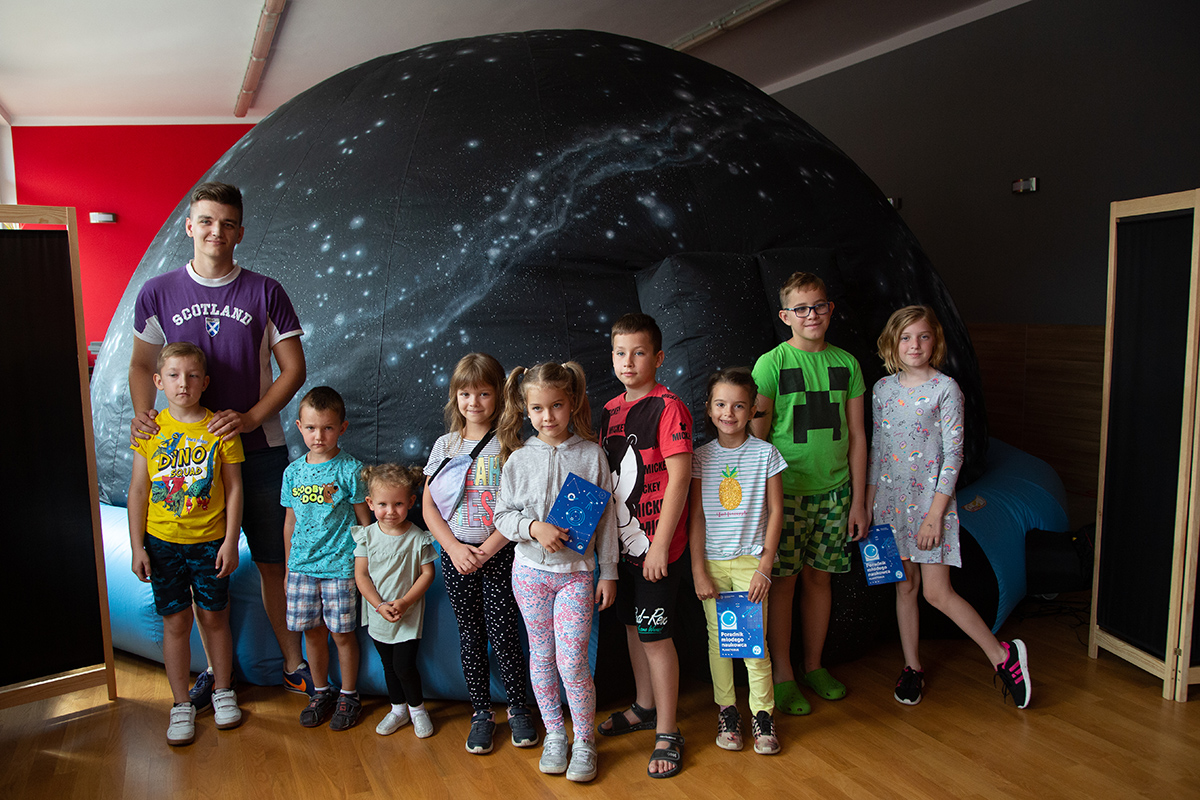 Ile jest gwiazd na niebie, dlaczego świecą, jaki mają kolor, jak odróżnić gwiazdy od planet, czy gwiazdy spadają, jak wygląda Jowisz? – odpowiedzi na te pytania miały okazję poznać te dzieci, które w czwartek 1 sierpnia odwiedziły w MDK wędrujące planetarium z Centrum Nauki Kopernik.