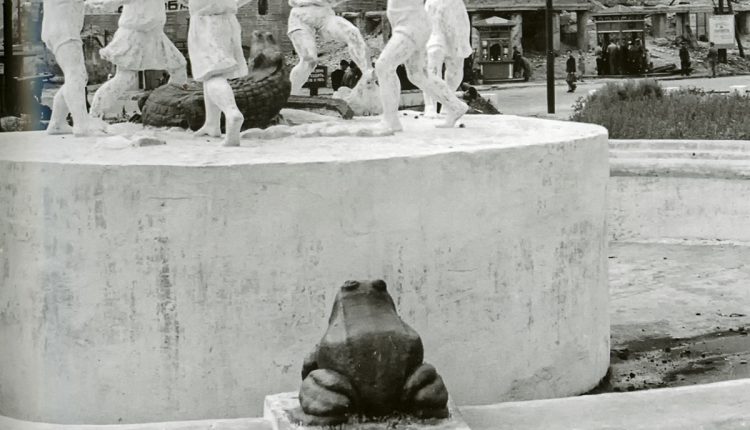 Od lat intrygowało nas pytanie skąd panu Morce przyszedł do głowy pomysł na ozdobienie fontanny żabami. W głowie przewijały nam się kadry z filmów o obronie Stalingradu, gdzie przewijał się motyw fontanny z tańczącymi dziećmi i żabami. Filmowe kadry szybko jednak przemijały. Niedawno znaleźliśmy jednak dowód, że istniały.