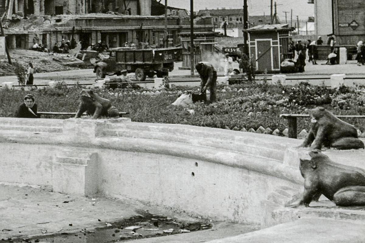 Od lat intrygowało nas pytanie skąd panu Morce przyszedł do głowy pomysł na ozdobienie fontanny żabami. W głowie przewijały nam się kadry z filmów o obronie Stalingradu, gdzie przewijał się motyw fontanny z tańczącymi dziećmi i żabami. Filmowe kadry szybko jednak przemijały. Niedawno znaleźliśmy jednak dowód, że istniały.
