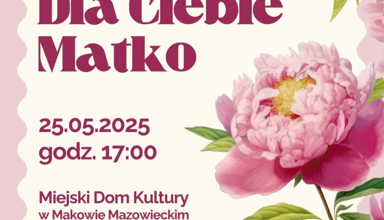 Zaproszenia DLA CIEBIE MATKO Dnia 15 maj 2025 Ostatnia aktualizacja 15 maj 2025 0 690 Podziel się koncert SzmaragdówMiejski Dom Kultury w Makowie Mazowieckim 0 690 Podziel się FacebookTwitterWhatsAppE-mailDrukuj