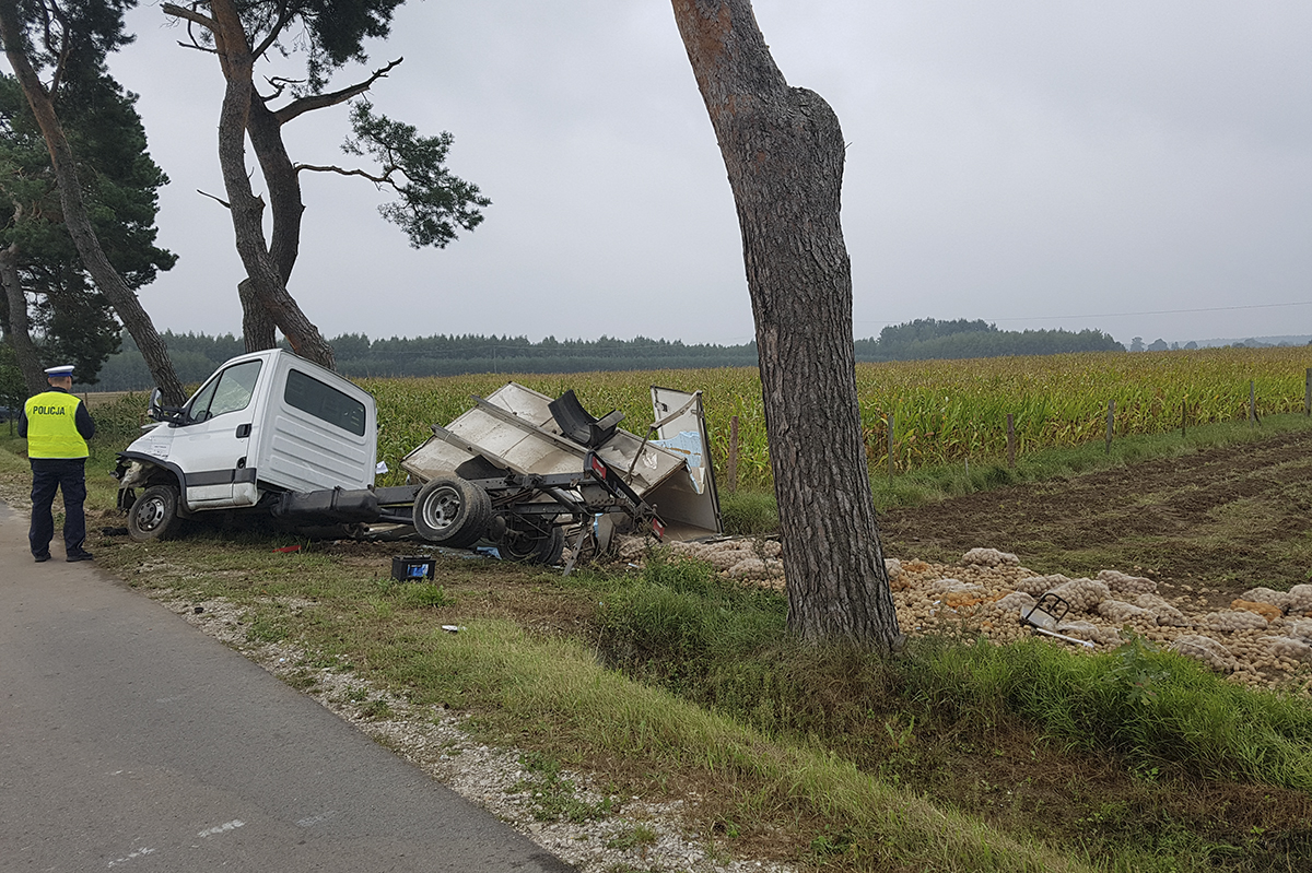 Drążdżewo – Iveco na drzewie, kierowca w szpitalu.