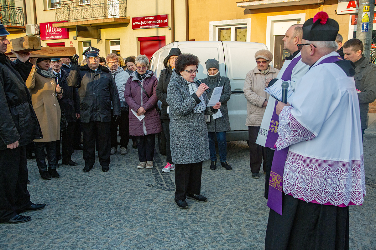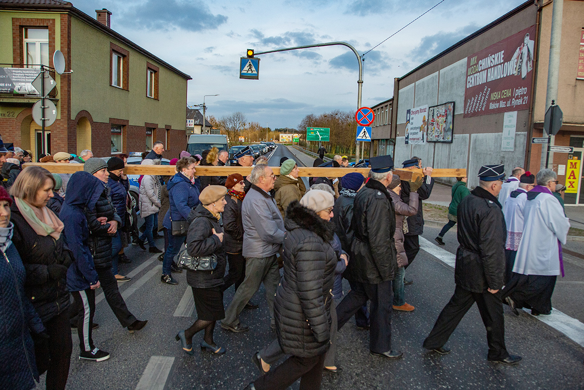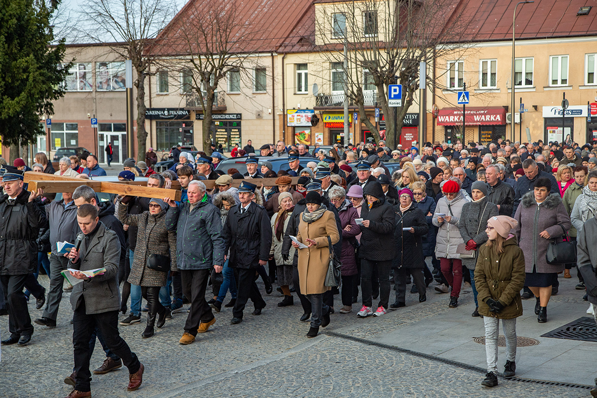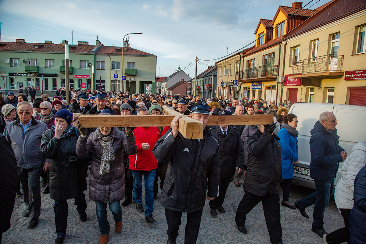 Procesja z krzyżem wyruszyła spod kościoła pw. św. Brata Alberta po Mszy św. o godz. 17:30 i ulicami miasta do kościoła farnego w modlitewnym skupieniu rozważając wspólnie Drogę Krzyżową. Krzyż nieśli mieszkańcy Makowa i okolicznych wiosek z parafii należących do dekanatu makowskiego.