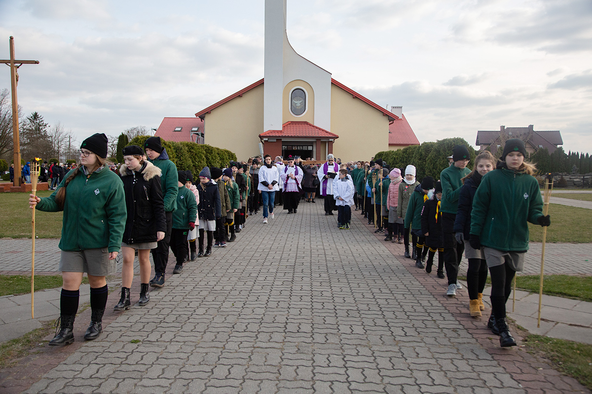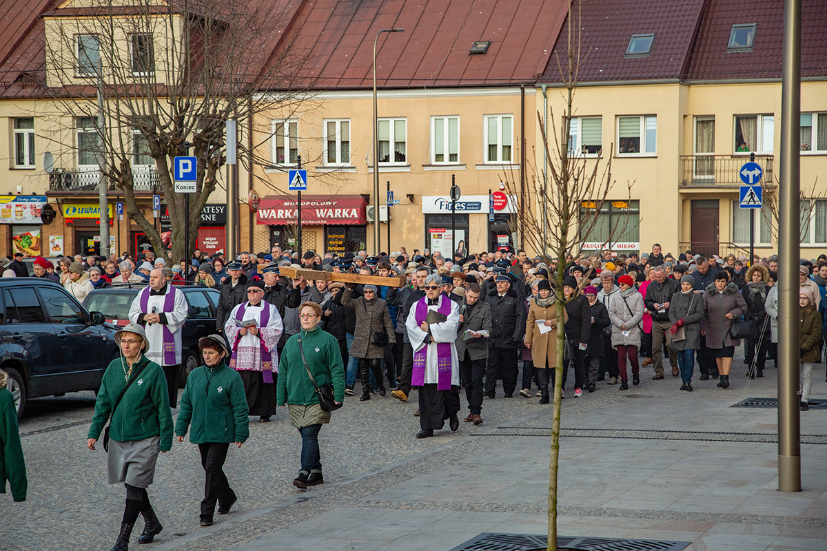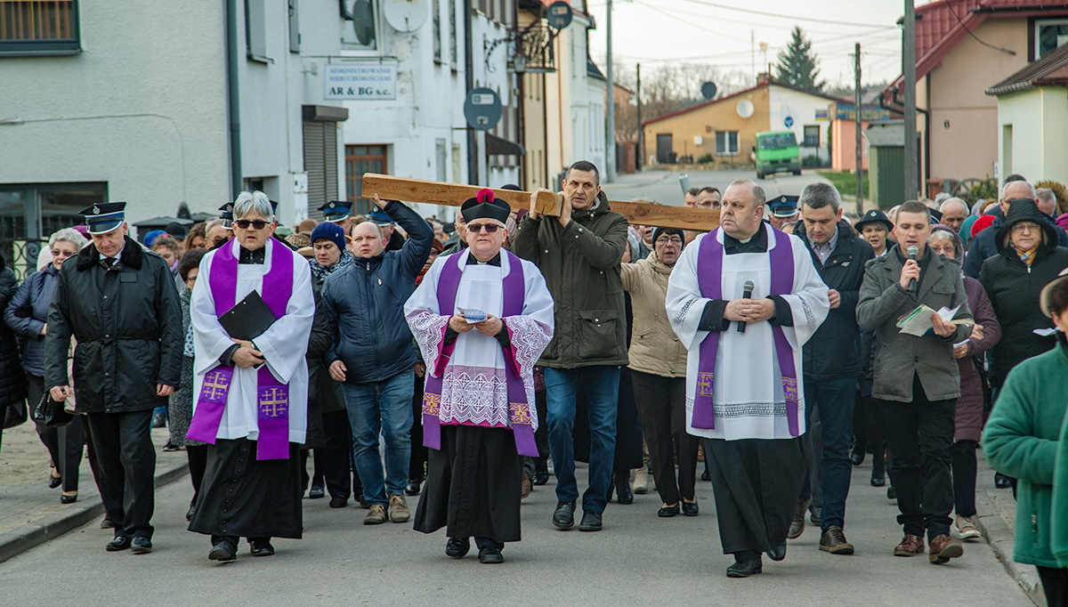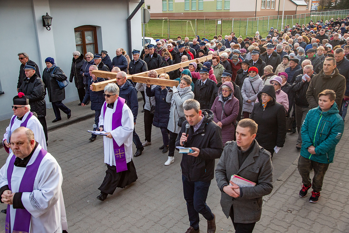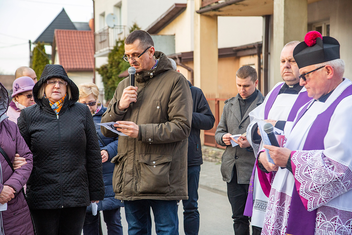 Procesja z krzyżem wyruszyła spod kościoła pw. św. Brata Alberta po Mszy św. o godz. 17:30 i ulicami miasta do kościoła farnego w modlitewnym skupieniu rozważając wspólnie Drogę Krzyżową. Krzyż nieśli mieszkańcy Makowa i okolicznych wiosek z parafii należących do dekanatu makowskiego.