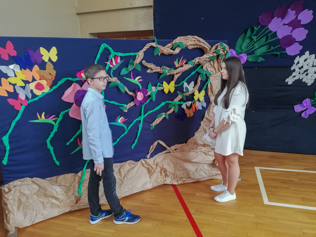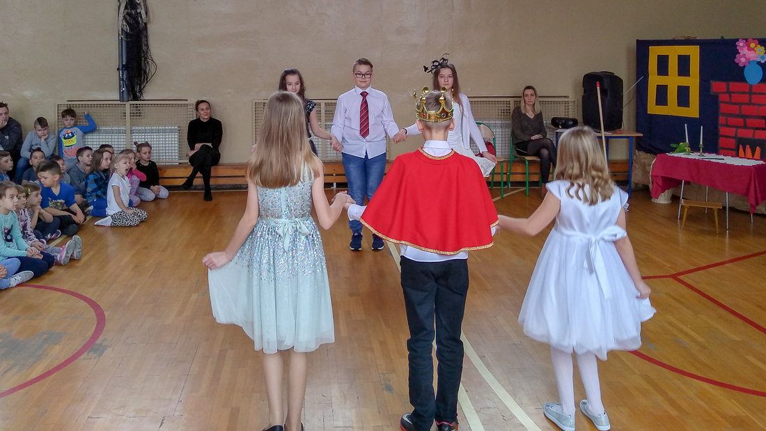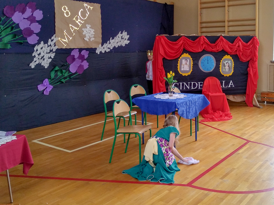 Uczniowie klasy Va i nauczycielka języka angielskiego, Agnieszka Kołodziejska, zaprosili dzieci z edukacji wczesnoszkolnej i ich wychowawczynie na przedstawienie „Cinderella”, czyli na „Kopciuszka” w wersji anglojęzycznej.