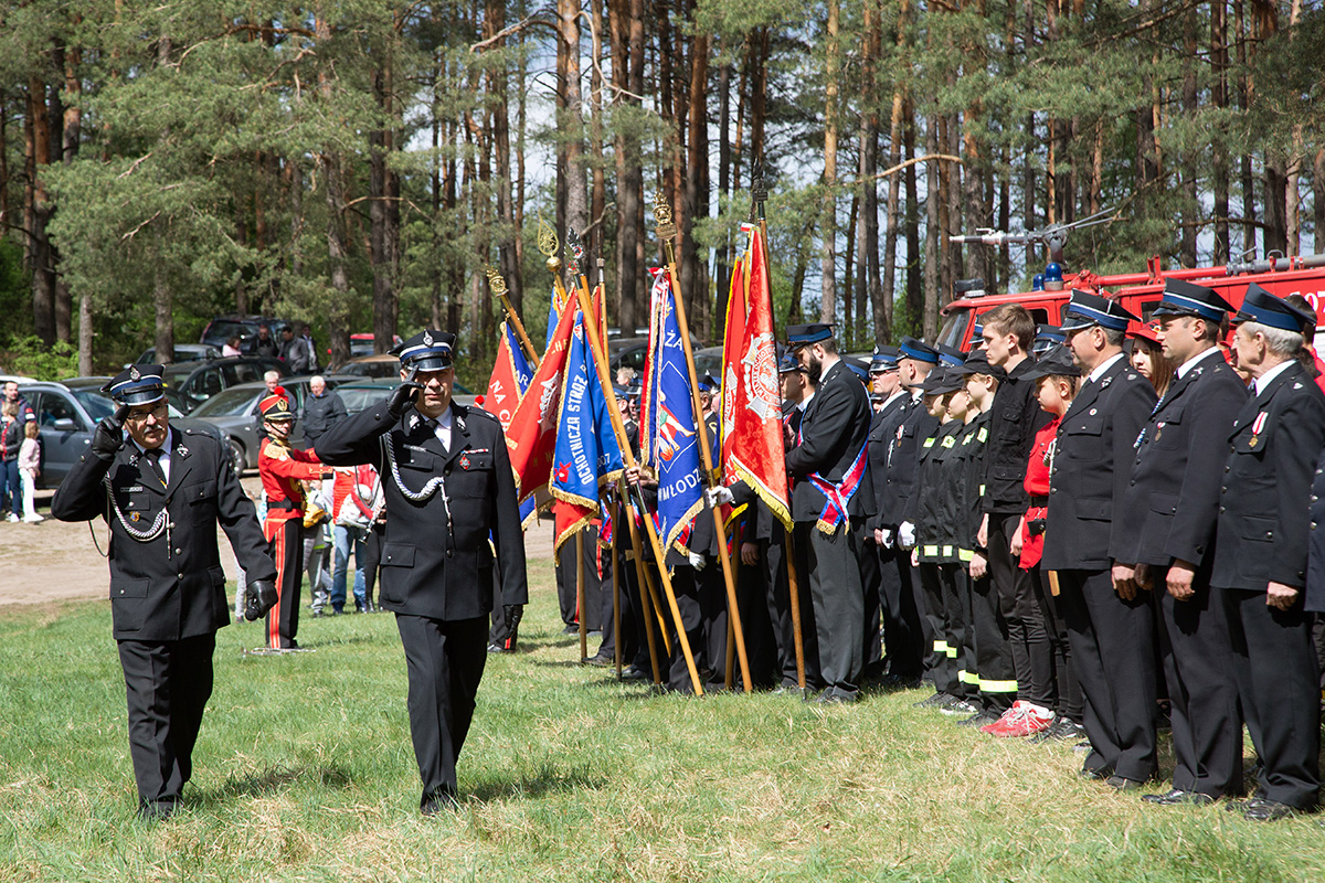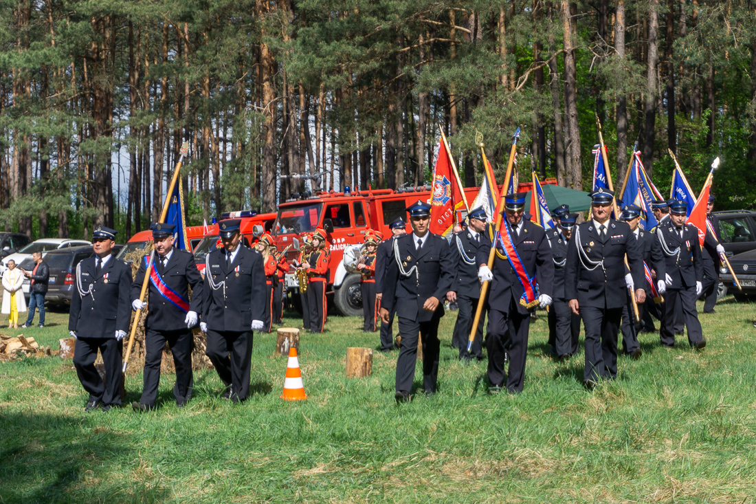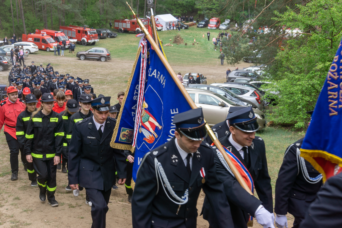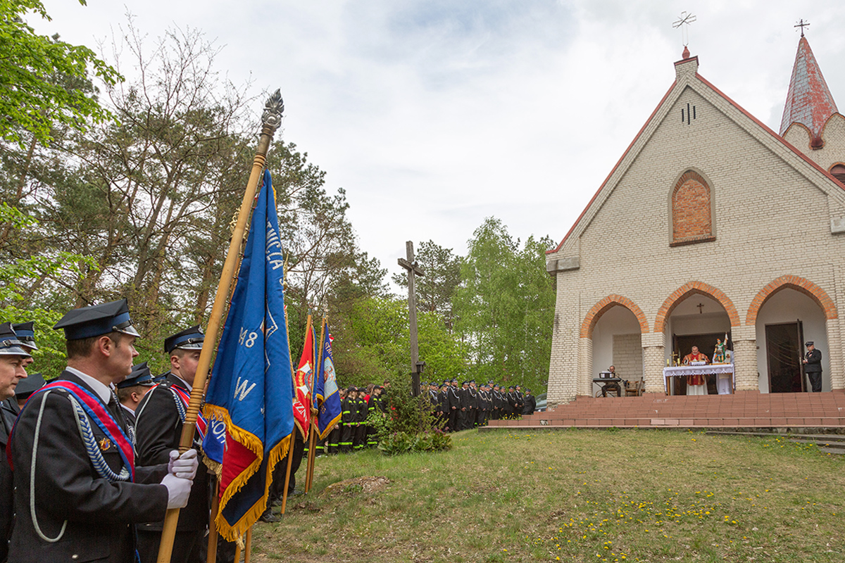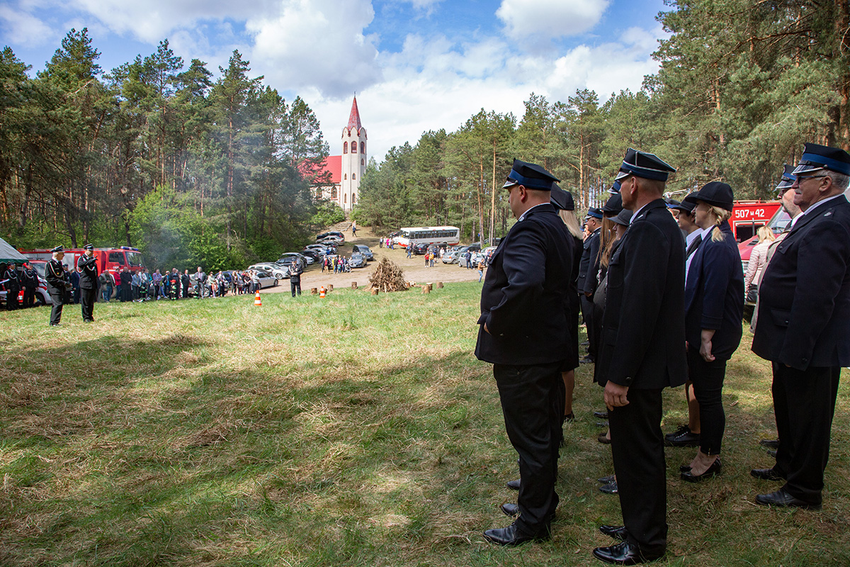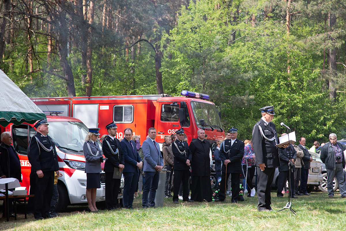 W przeddzień Dnia Strażaka – 3 maja 2019 roku – druhny i druhowie z Ochotniczych Straży Pożarnych w gminie Płoniawy-Bramura zabrali się, by uczcić swoje święto. Uroczystości rozpoczęły się od Mszy św. o godzinie 13:00. Po nabożeństwie wszyscy zebrali się na polanie pod kościołem. Pod ścianą lasu stanęły poczty sztandarowe i wozy bojowe strażaków.