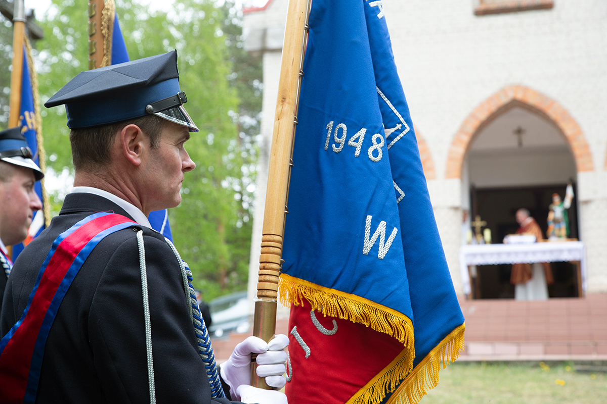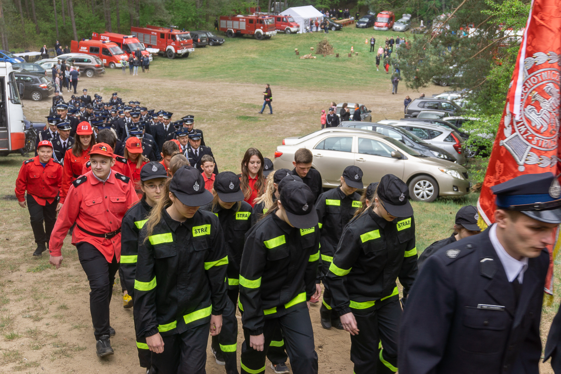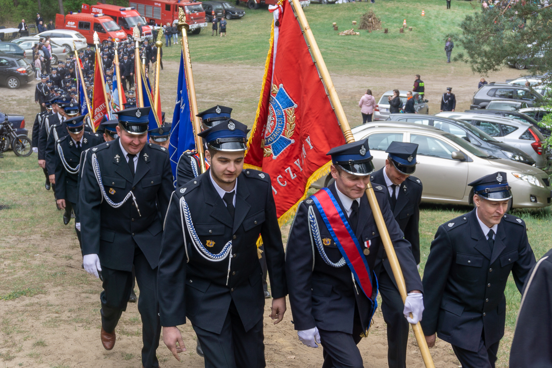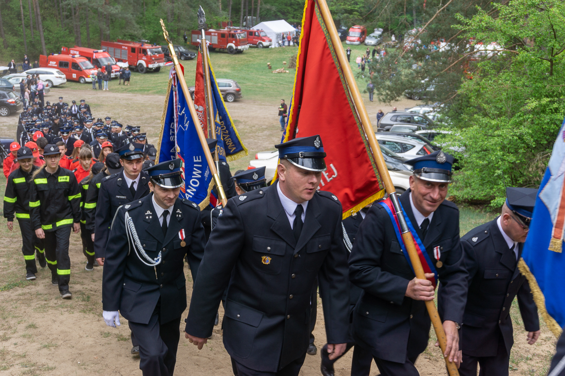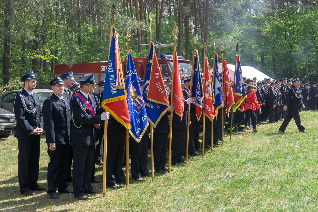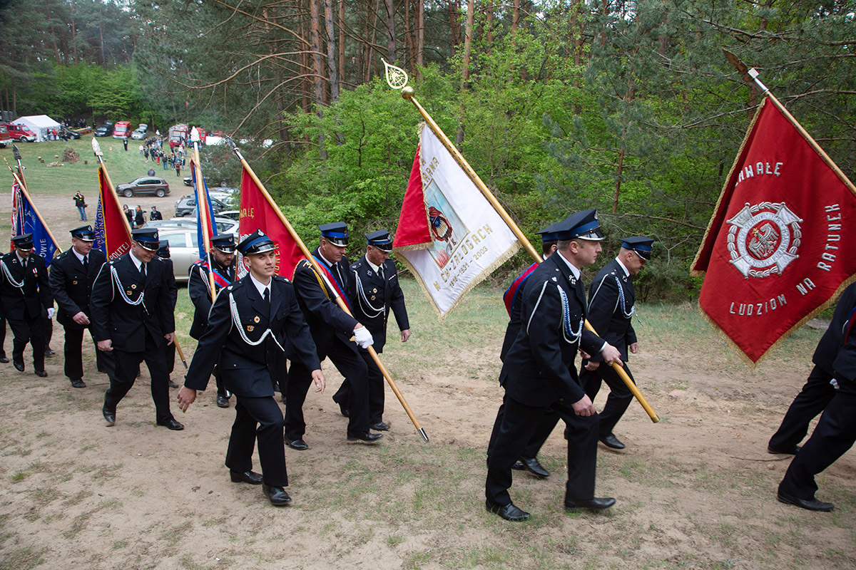 W przeddzień Dnia Strażaka – 3 maja 2019 roku – druhny i druhowie z Ochotniczych Straży Pożarnych w gminie Płoniawy-Bramura zabrali się, by uczcić swoje święto. Uroczystości rozpoczęły się od Mszy św. o godzinie 13:00. Po nabożeństwie wszyscy zebrali się na polanie pod kościołem. Pod ścianą lasu stanęły poczty sztandarowe i wozy bojowe strażaków.