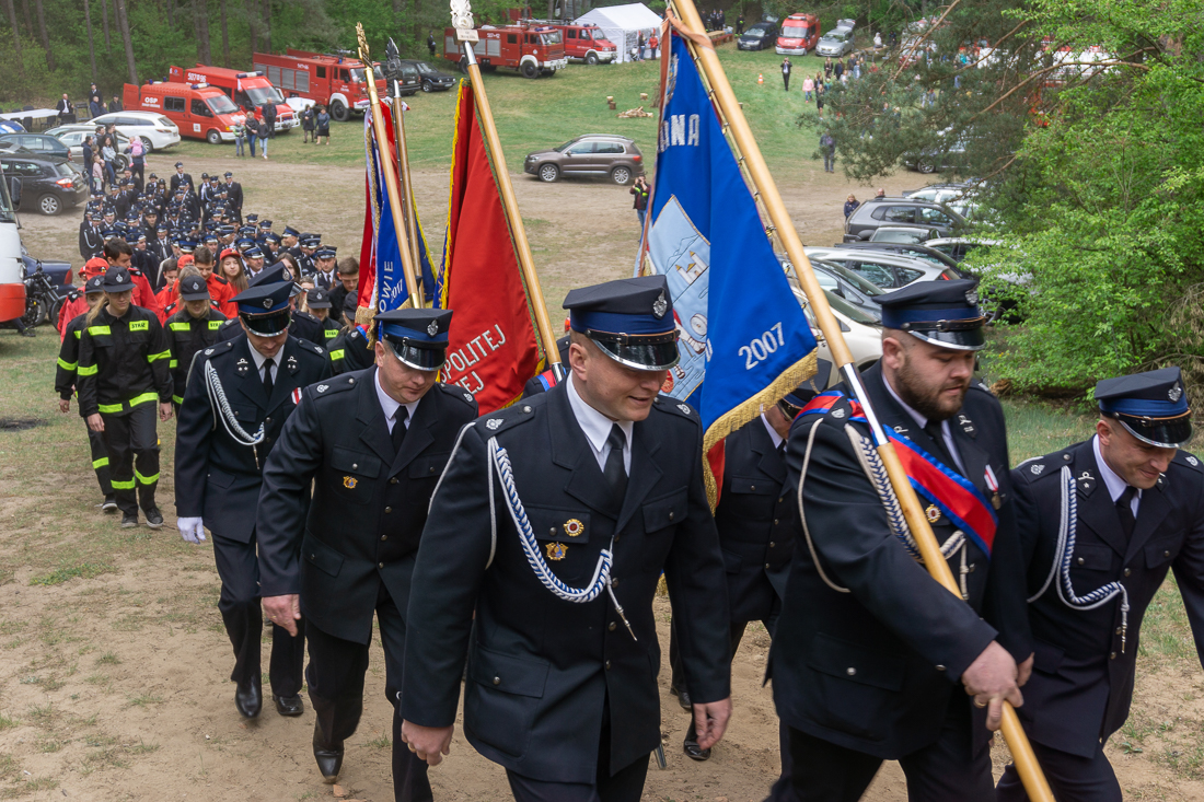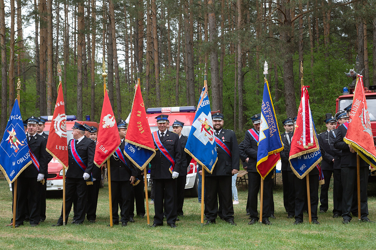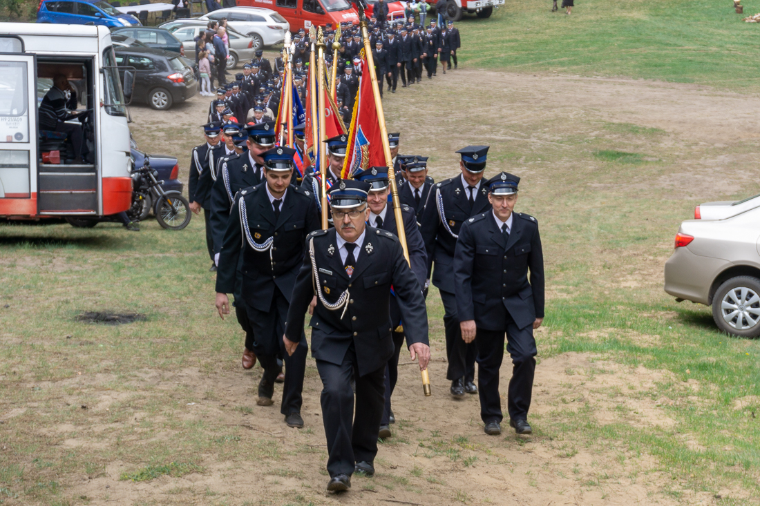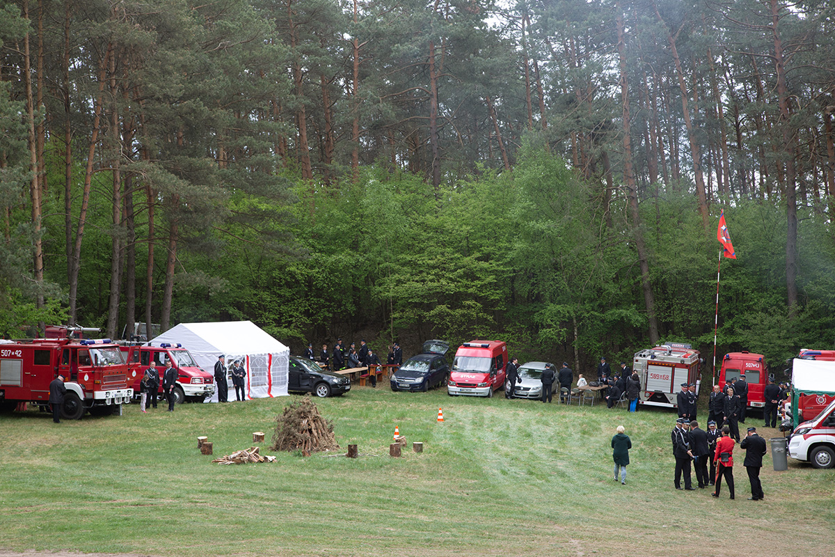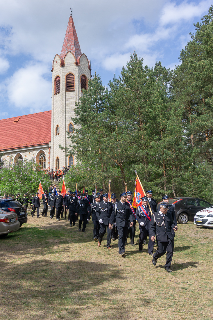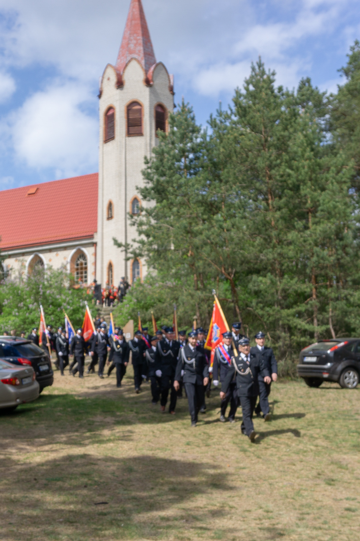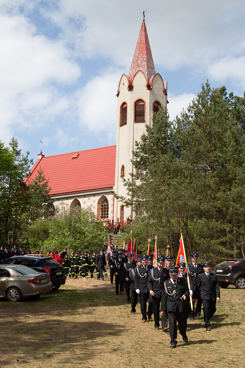 W przeddzień Dnia Strażaka – 3 maja 2019 roku – druhny i druhowie z Ochotniczych Straży Pożarnych w gminie Płoniawy-Bramura zabrali się, by uczcić swoje święto. Uroczystości rozpoczęły się od Mszy św. o godzinie 13:00. Po nabożeństwie wszyscy zebrali się na polanie pod kościołem. Pod ścianą lasu stanęły poczty sztandarowe i wozy bojowe strażaków.