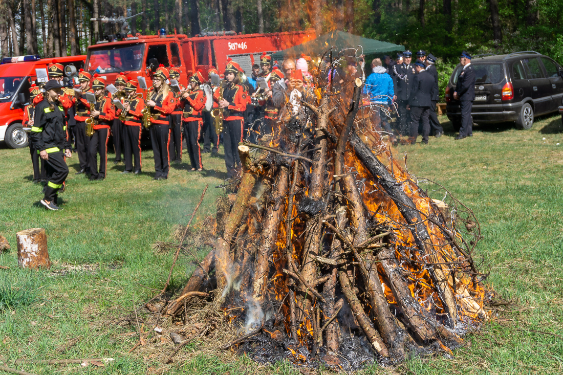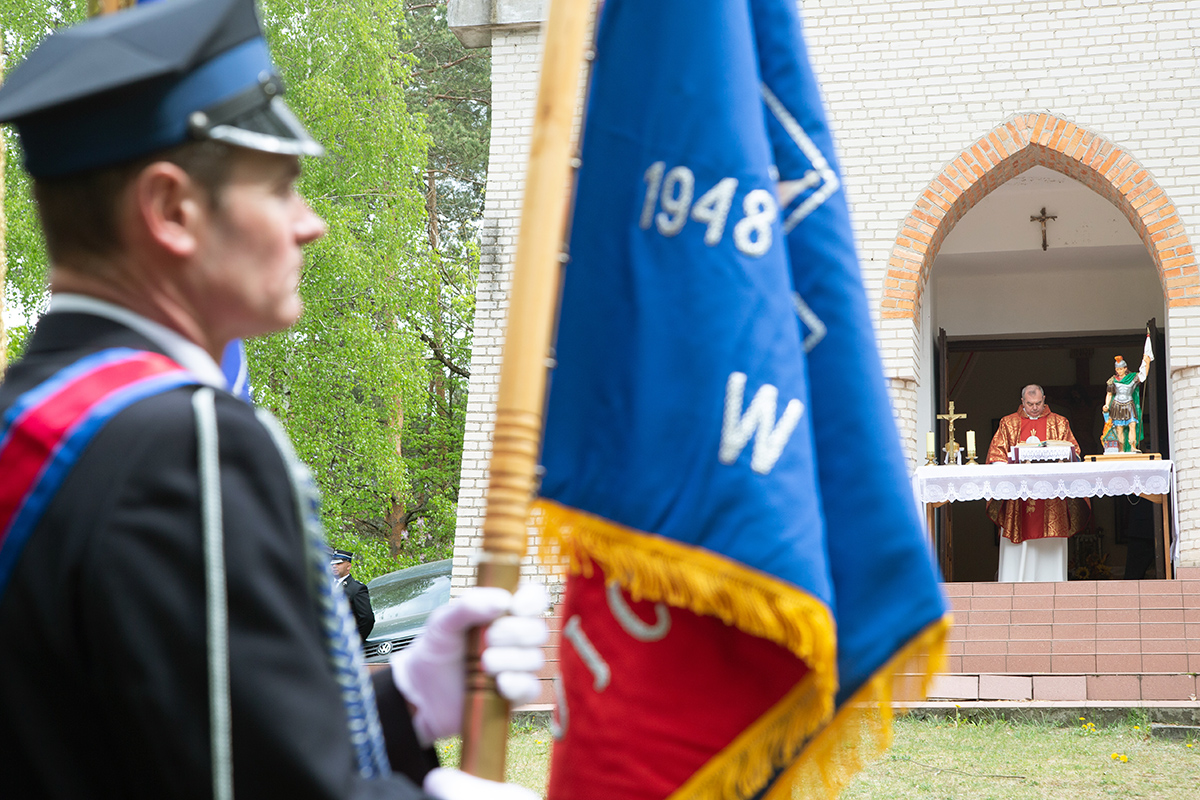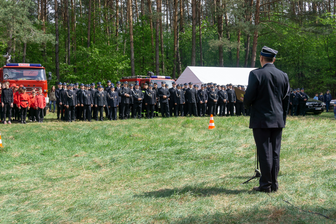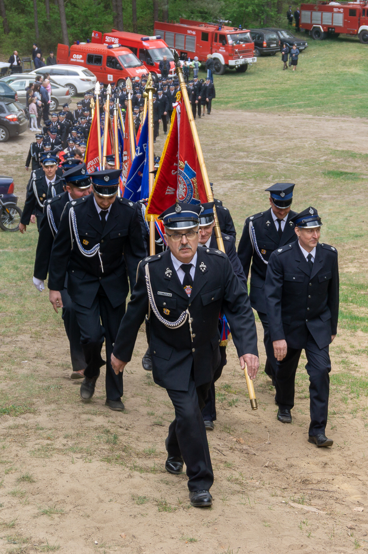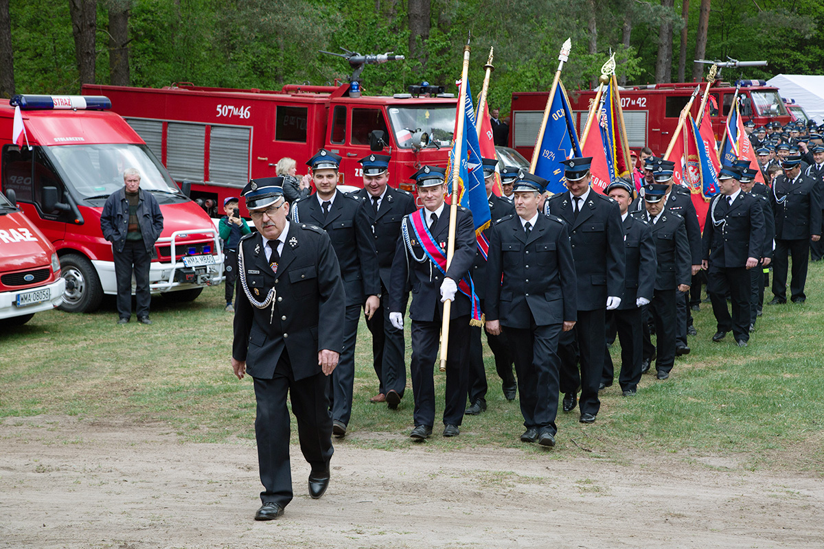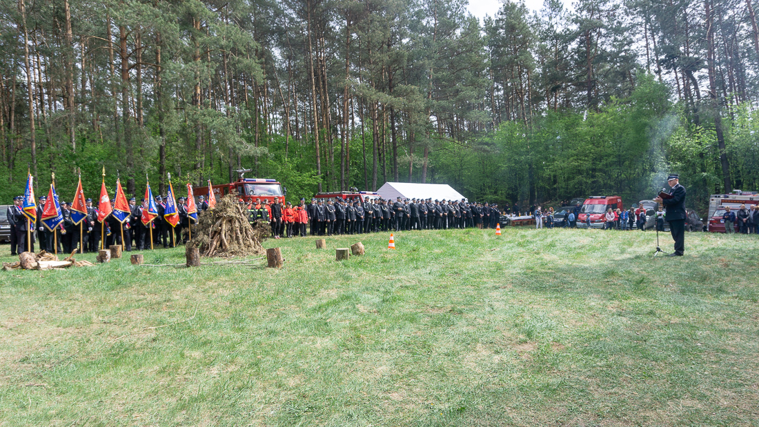 W przeddzień Dnia Strażaka – 3 maja 2019 roku – druhny i druhowie z Ochotniczych Straży Pożarnych w gminie Płoniawy-Bramura zabrali się, by uczcić swoje święto. Uroczystości rozpoczęły się od Mszy św. o godzinie 13:00. Po nabożeństwie wszyscy zebrali się na polanie pod kościołem. Pod ścianą lasu stanęły poczty sztandarowe i wozy bojowe strażaków.