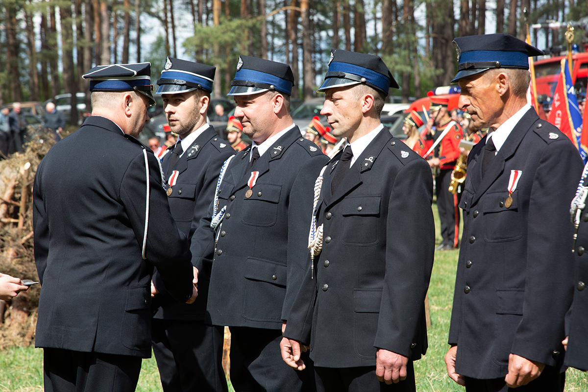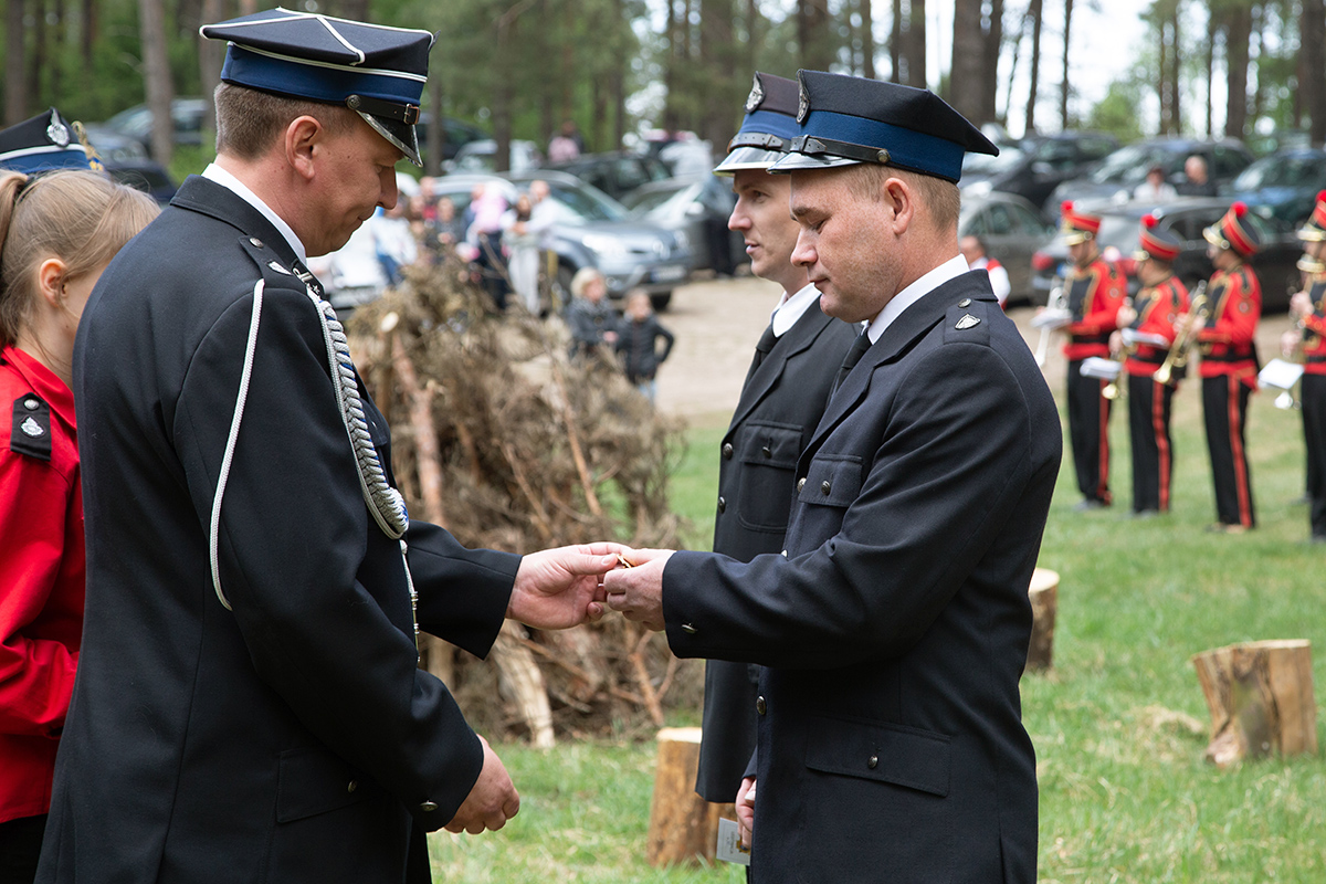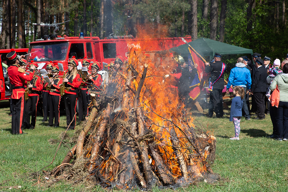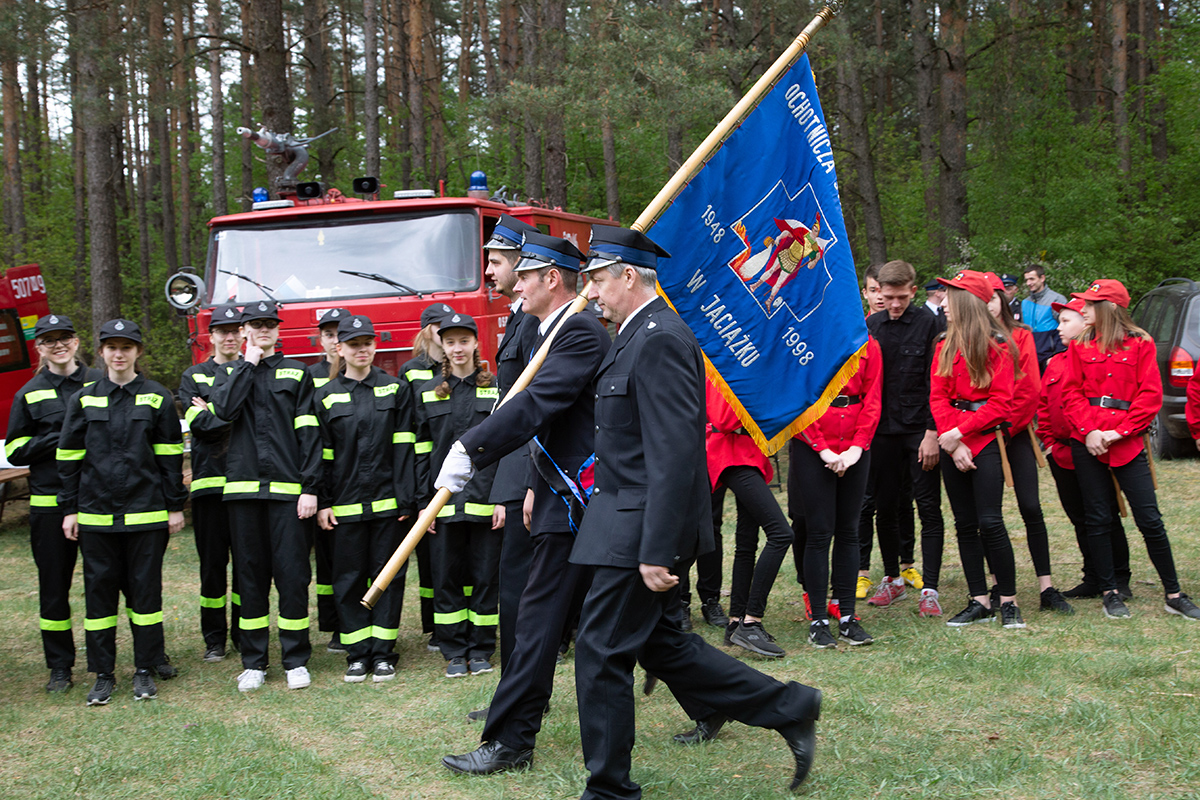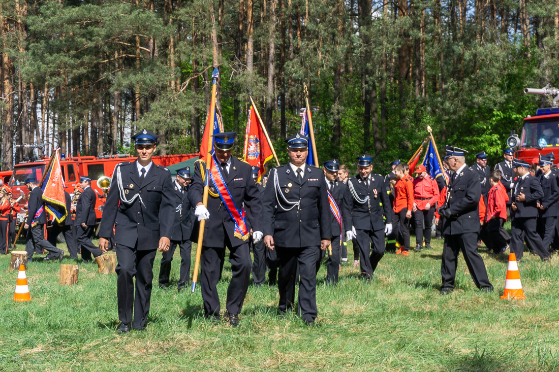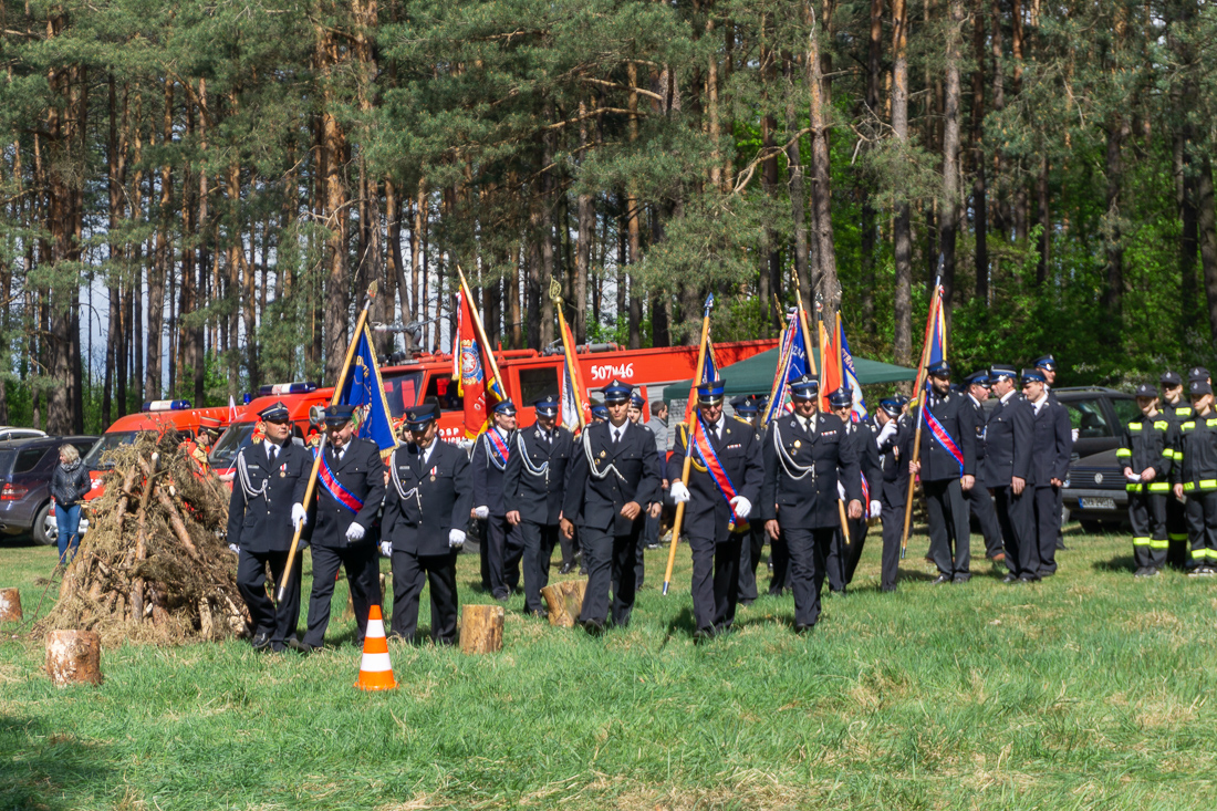 W przeddzień Dnia Strażaka – 3 maja 2019 roku – druhny i druhowie z Ochotniczych Straży Pożarnych w gminie Płoniawy-Bramura zabrali się, by uczcić swoje święto. Uroczystości rozpoczęły się od Mszy św. o godzinie 13:00. Po nabożeństwie wszyscy zebrali się na polanie pod kościołem. Pod ścianą lasu stanęły poczty sztandarowe i wozy bojowe strażaków.