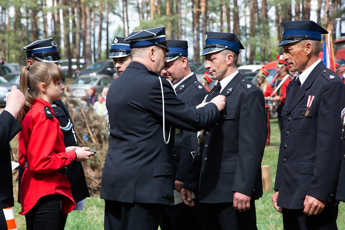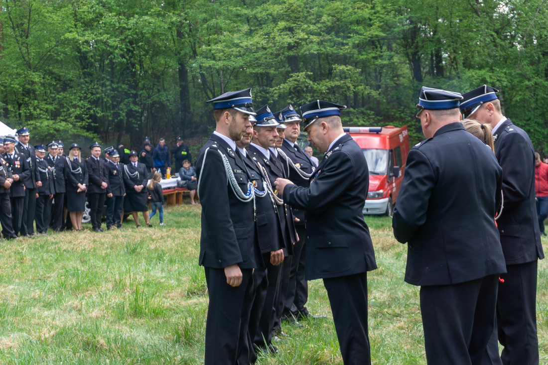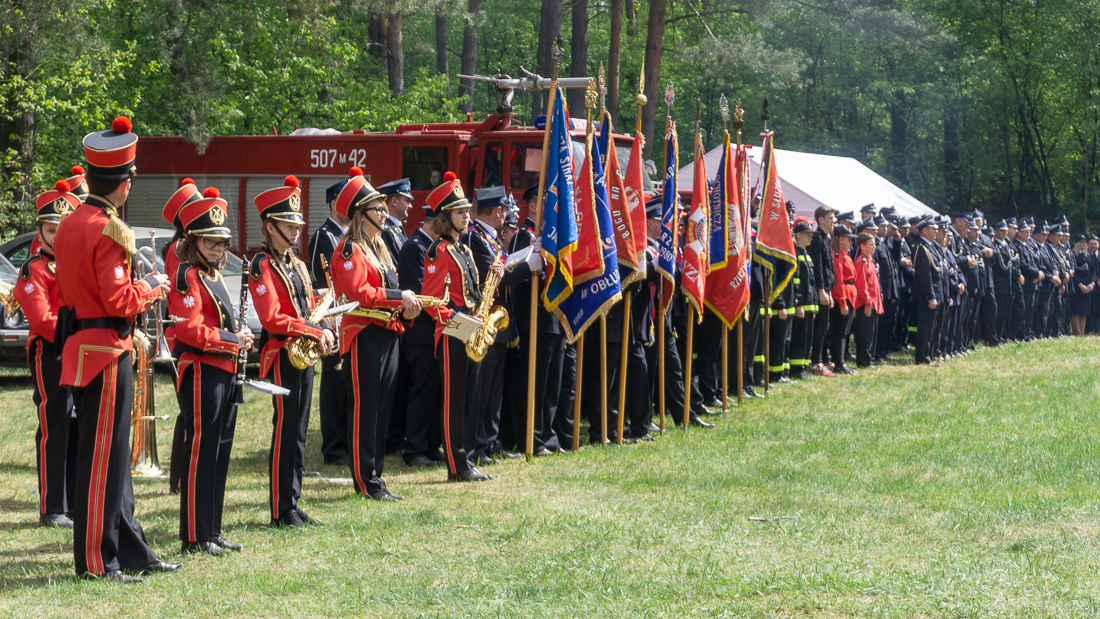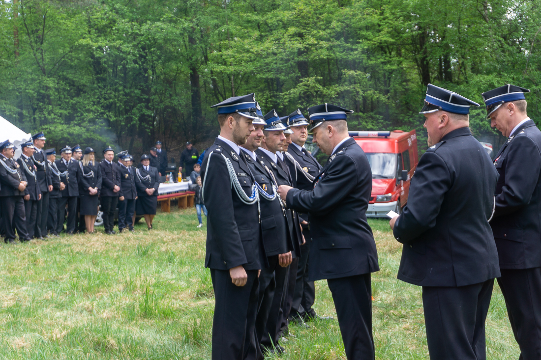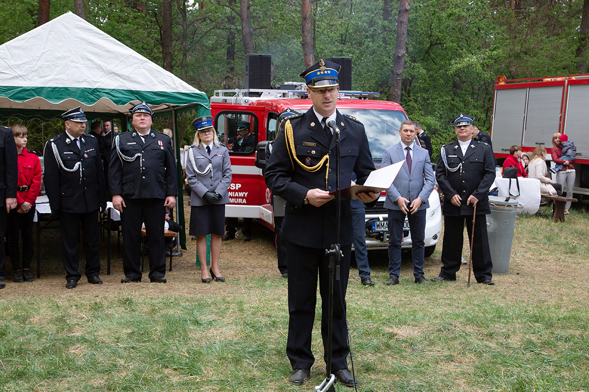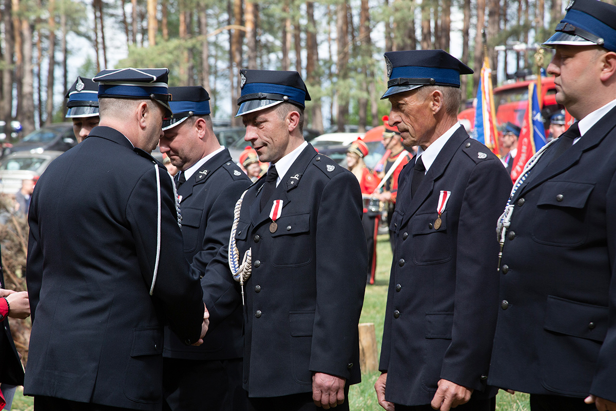 W przeddzień Dnia Strażaka – 3 maja 2019 roku – druhny i druhowie z Ochotniczych Straży Pożarnych w gminie Płoniawy-Bramura zabrali się, by uczcić swoje święto. Uroczystości rozpoczęły się od Mszy św. o godzinie 13:00. Po nabożeństwie wszyscy zebrali się na polanie pod kościołem. Pod ścianą lasu stanęły poczty sztandarowe i wozy bojowe strażaków.