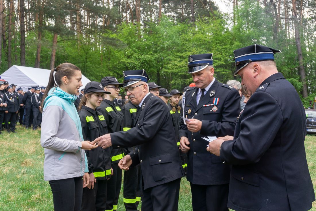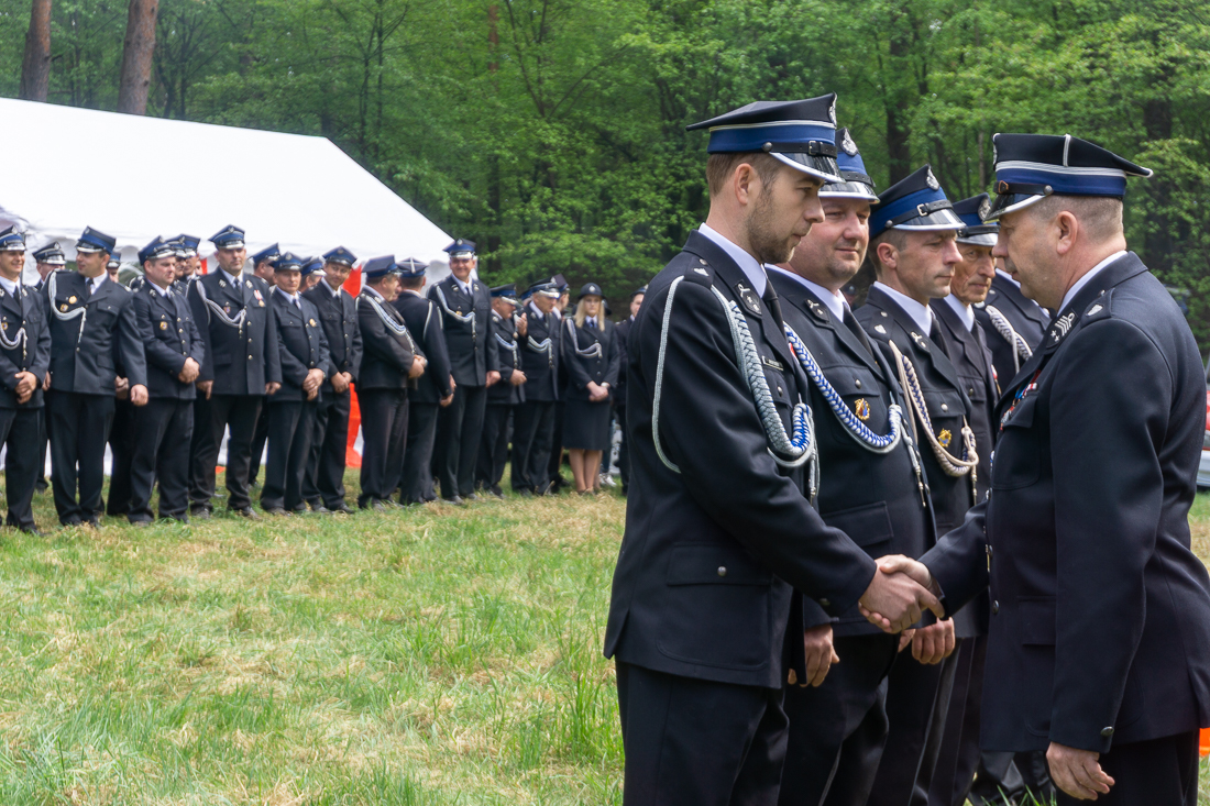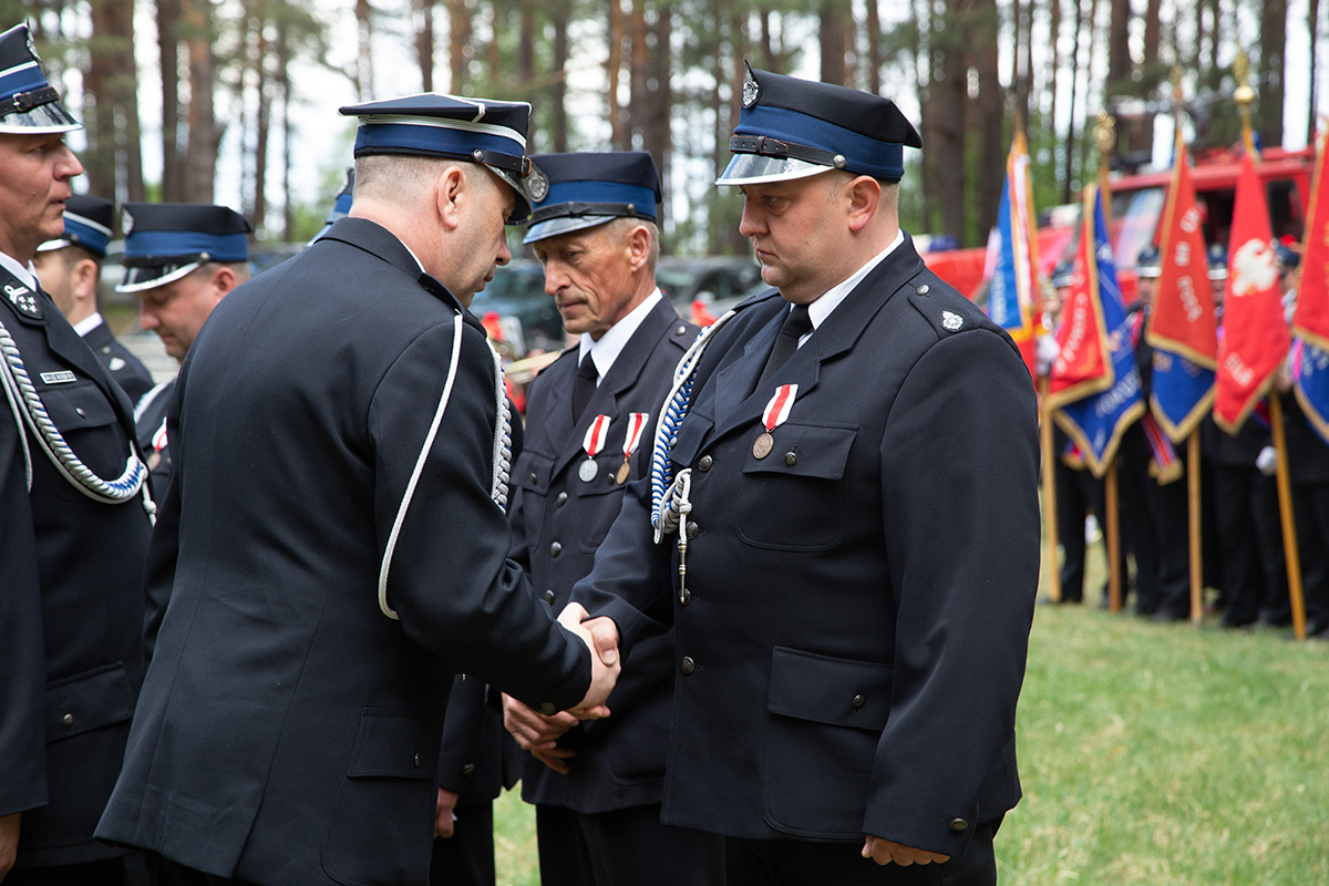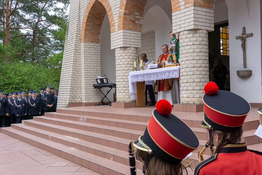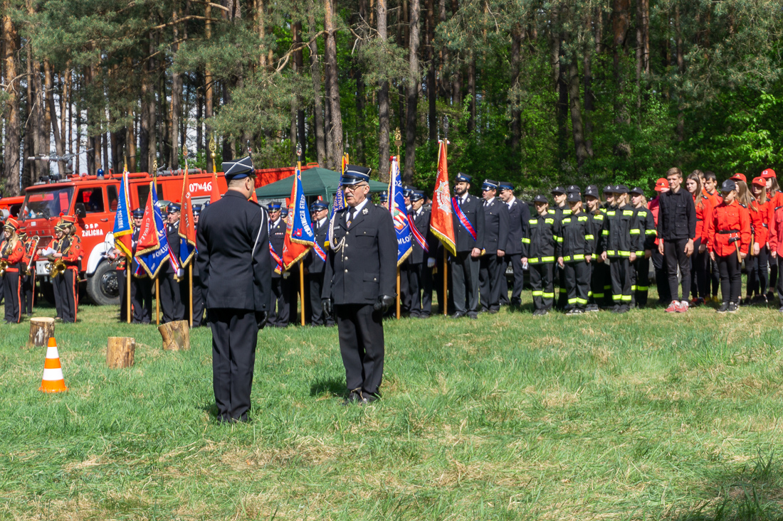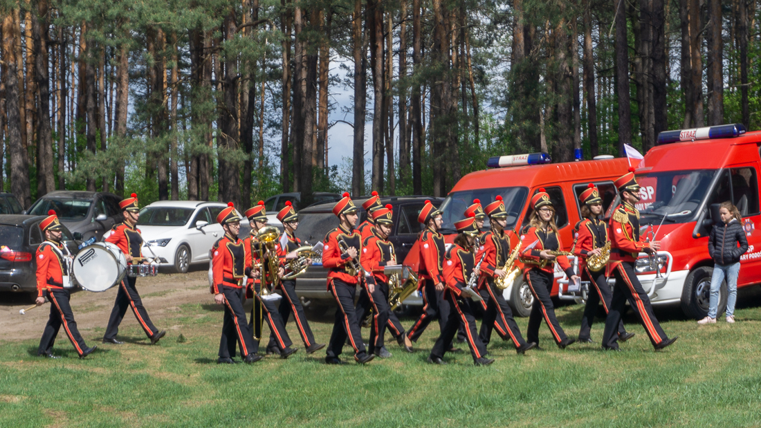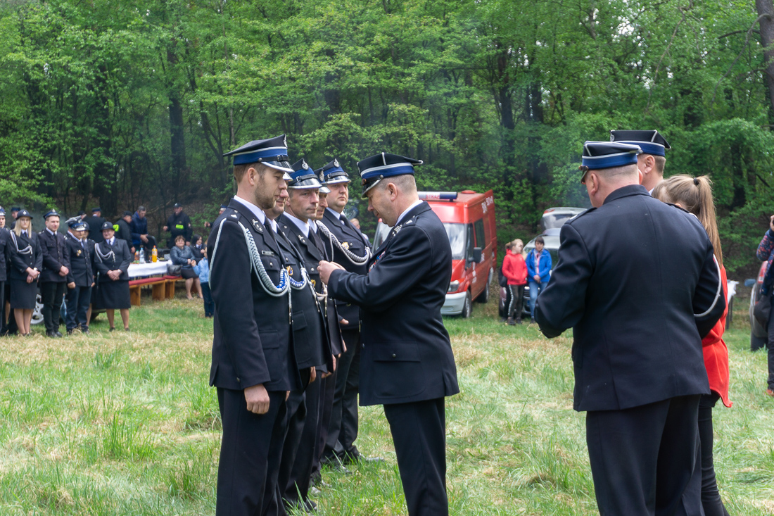 W przeddzień Dnia Strażaka – 3 maja 2019 roku – druhny i druhowie z Ochotniczych Straży Pożarnych w gminie Płoniawy-Bramura zabrali się, by uczcić swoje święto. Uroczystości rozpoczęły się od Mszy św. o godzinie 13:00. Po nabożeństwie wszyscy zebrali się na polanie pod kościołem. Pod ścianą lasu stanęły poczty sztandarowe i wozy bojowe strażaków.