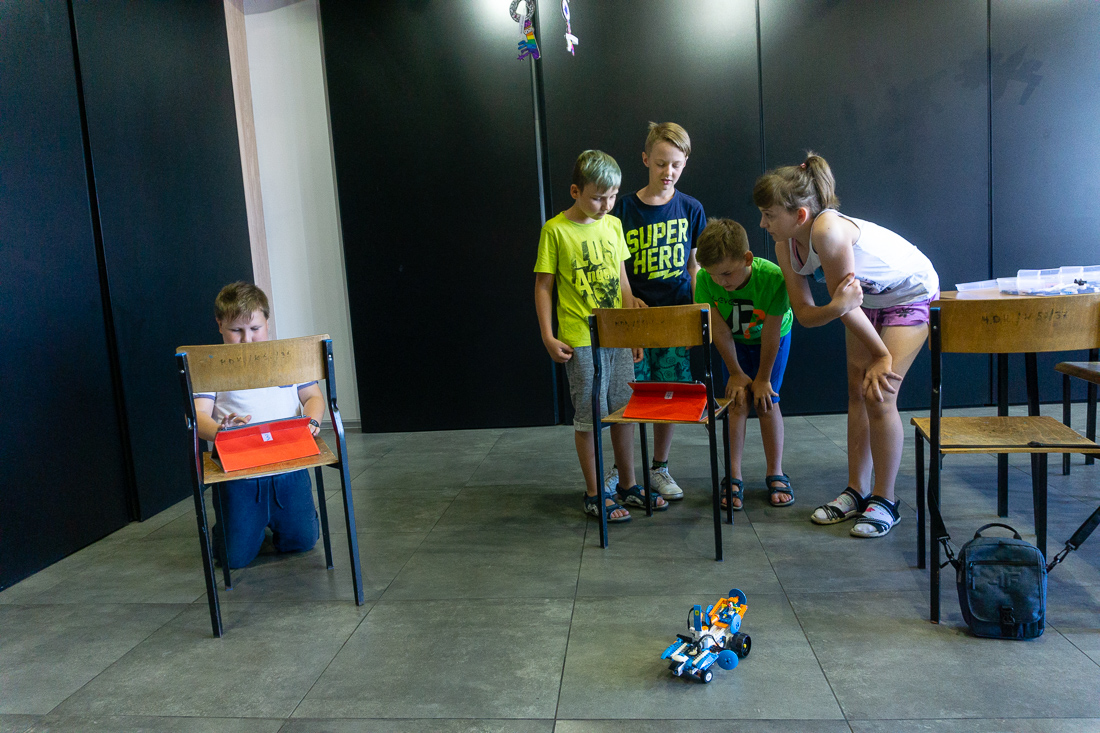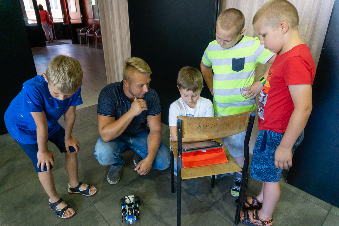 – Na terenie Makowa od 3 lat zajmujemy się prowadzeniem zajęć z robotyki dla dzieci w szkołach podstawowych – mówi Łukasz. – W wakacje w Miejskim Domu Kultury prowadzimy zajęcia z budowania i programowania robotów, na których dzieci mogą świetnie spędzić czas. Zbudować różnego rodzaju roboty, zaprogramować je oraz nimi się pobawić. Prowadzimy dwie grupy. Na naszych zajęciach codziennie przez półtorej godziny dzieci mają styczność z robotami, z programowaniem i przy tym świetnie się bawią.
