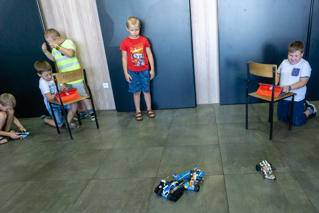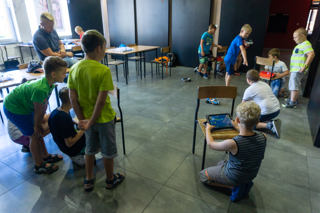 Atakuj go, atakuj! Wasz pojazd wcale nie jest taki mocny! – krzyczą rozemocjonowane dzieci. Wcześniej same budowały i programowały działanie pojazdów, które teraz wysłały do walki. Wszystko dzieje się w galerii Miejskiego Domu Kultury w Makowie.