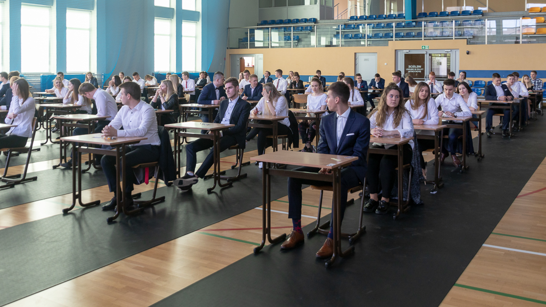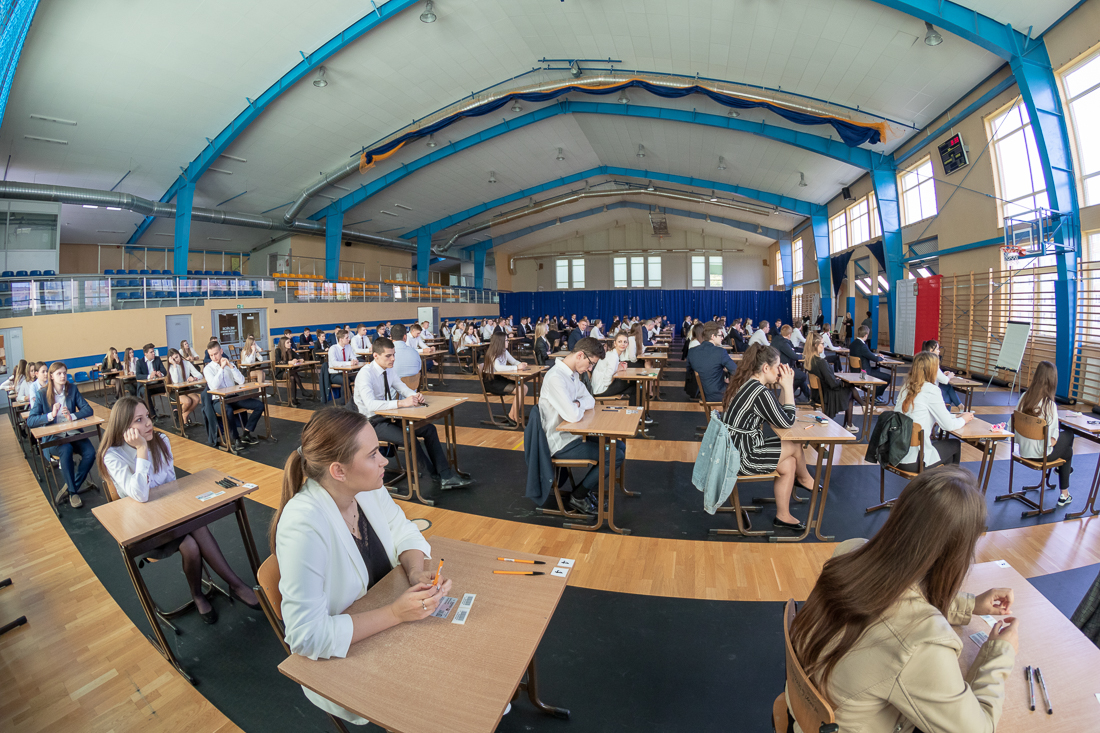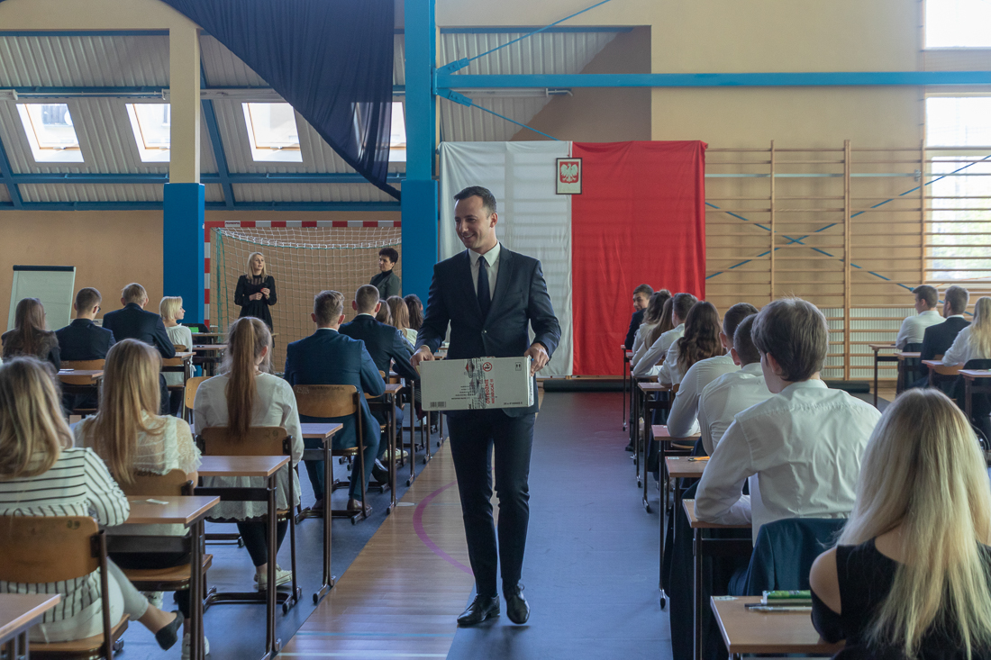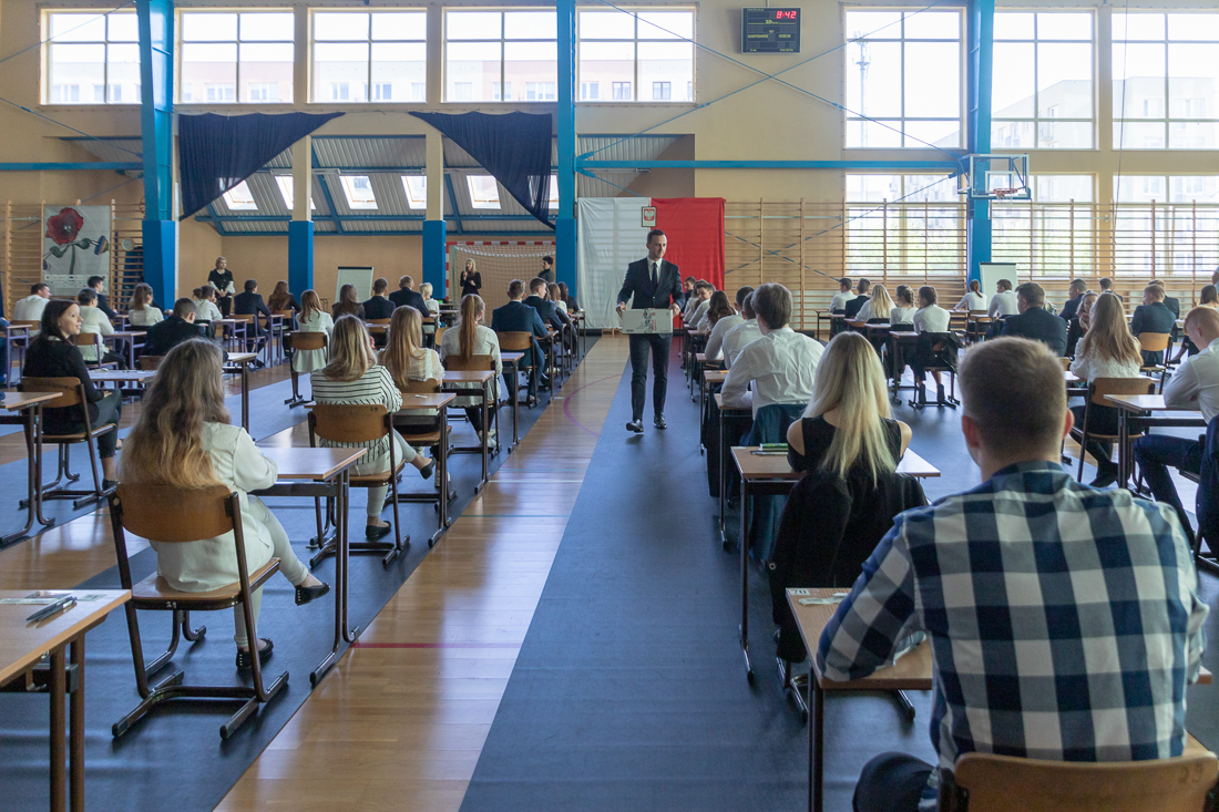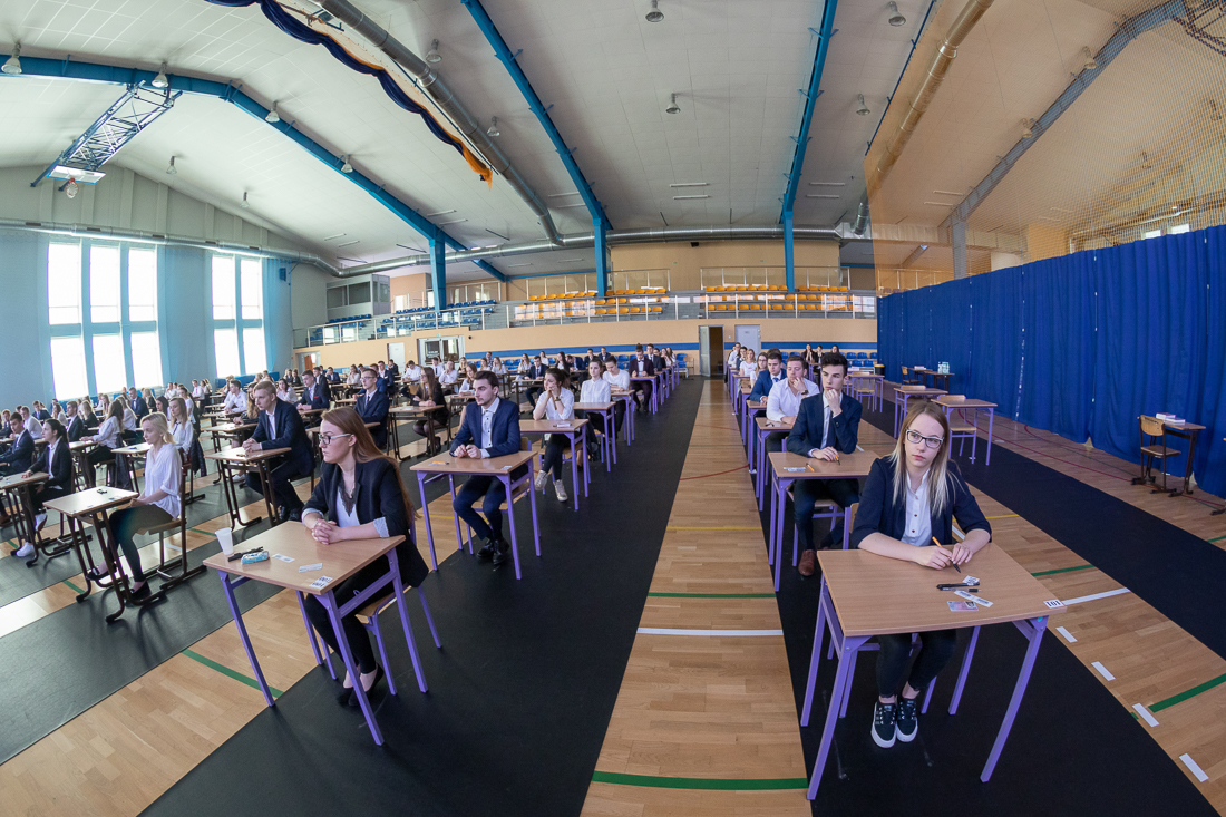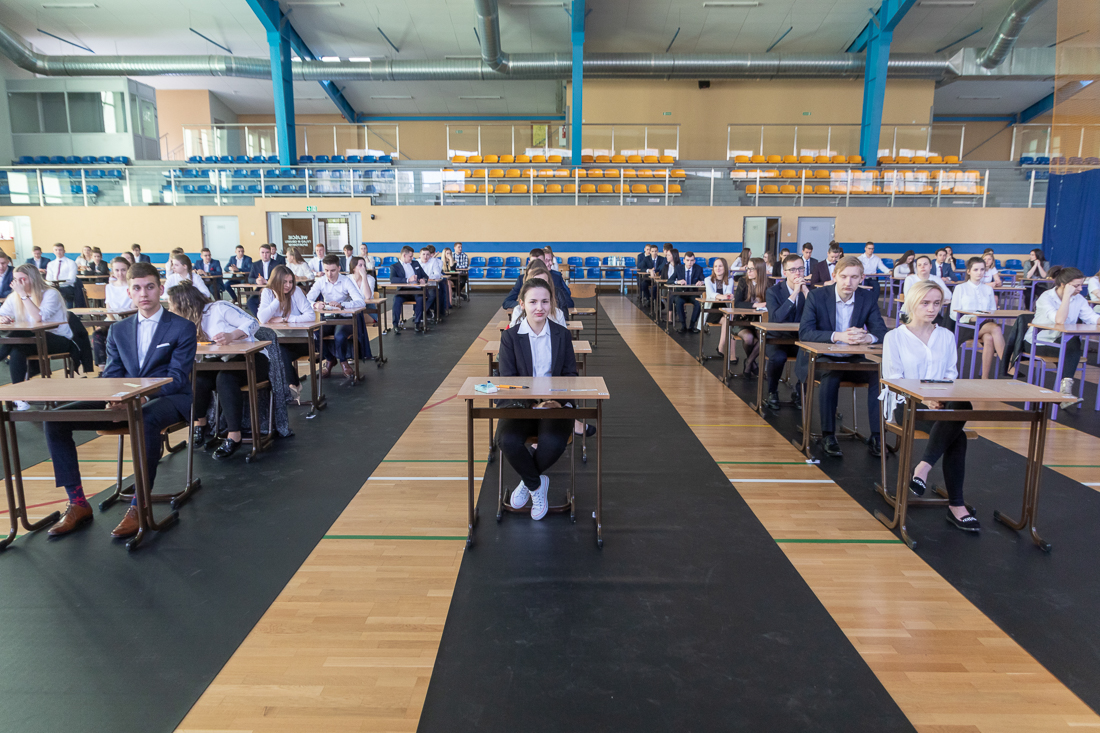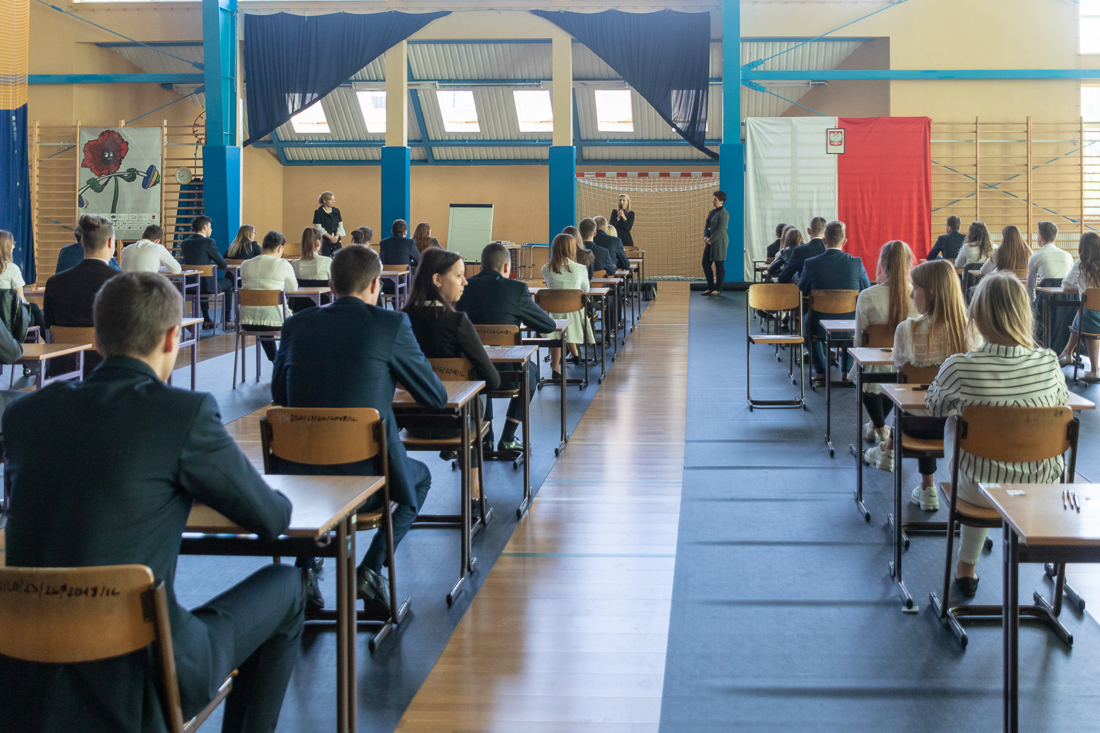 Na zdjęciach: egzamin maturalny z języka polskiego w makowskim liceum, poniedziałek 6. maja 2019 r.