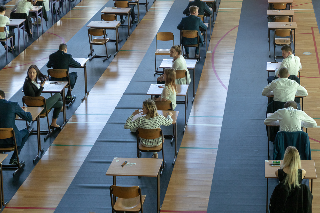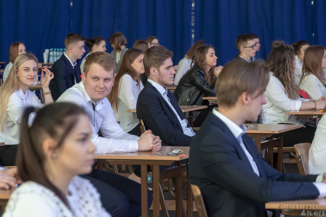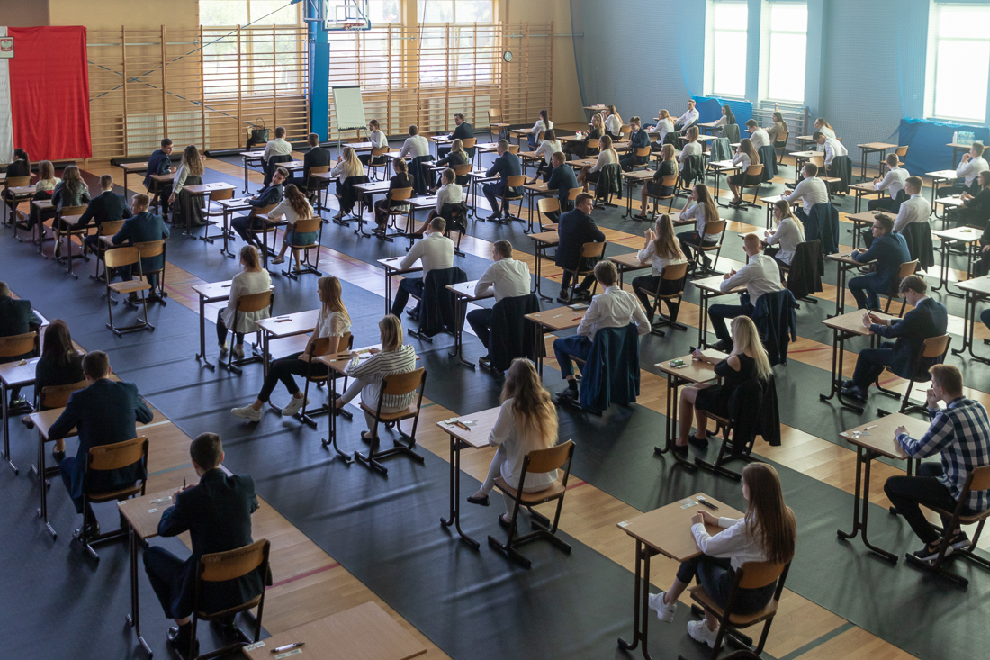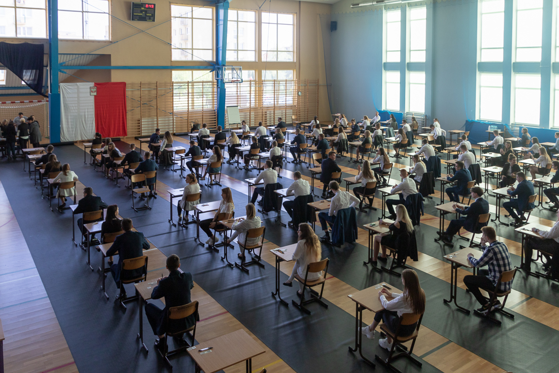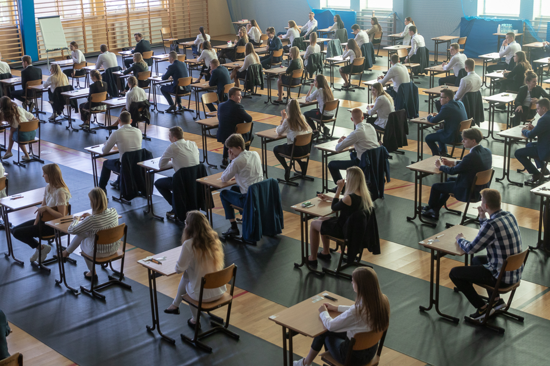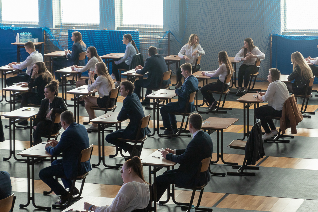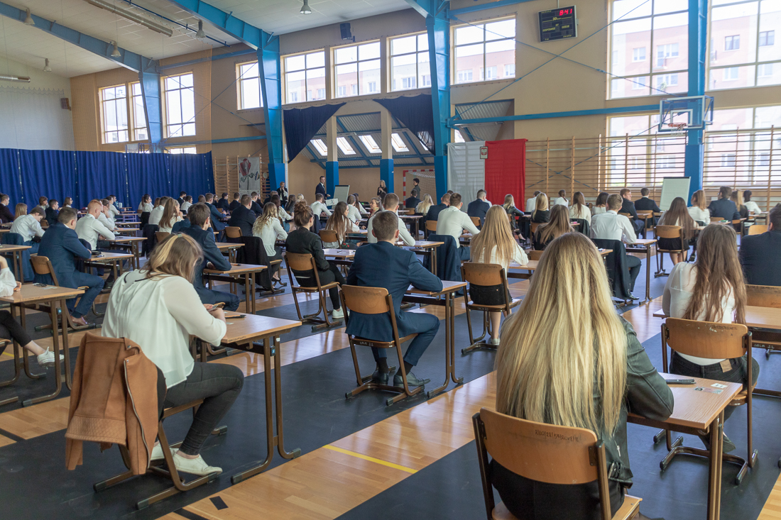 Na zdjęciach: egzamin maturalny z języka polskiego w makowskim liceum, poniedziałek 6. maja 2019 r.