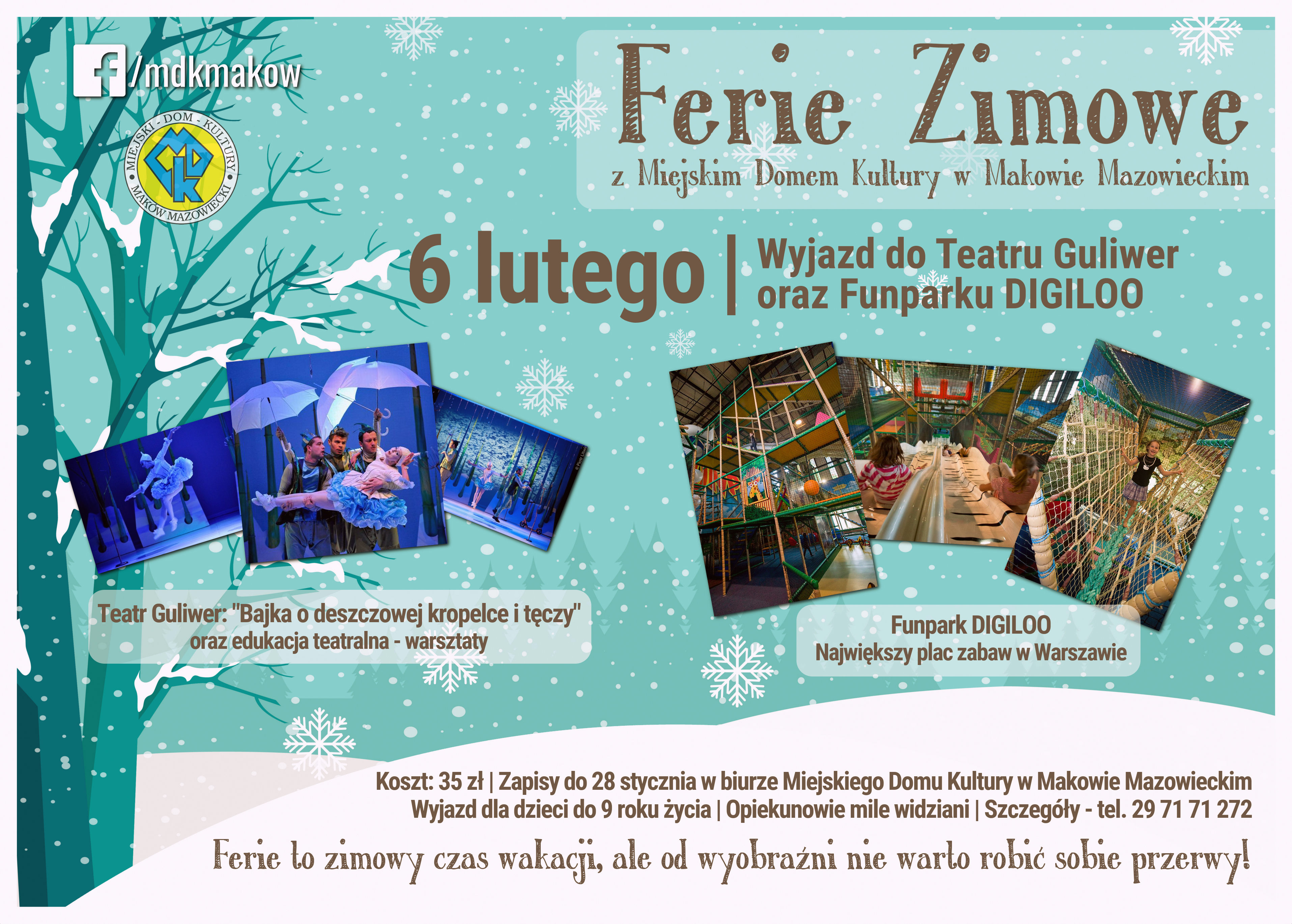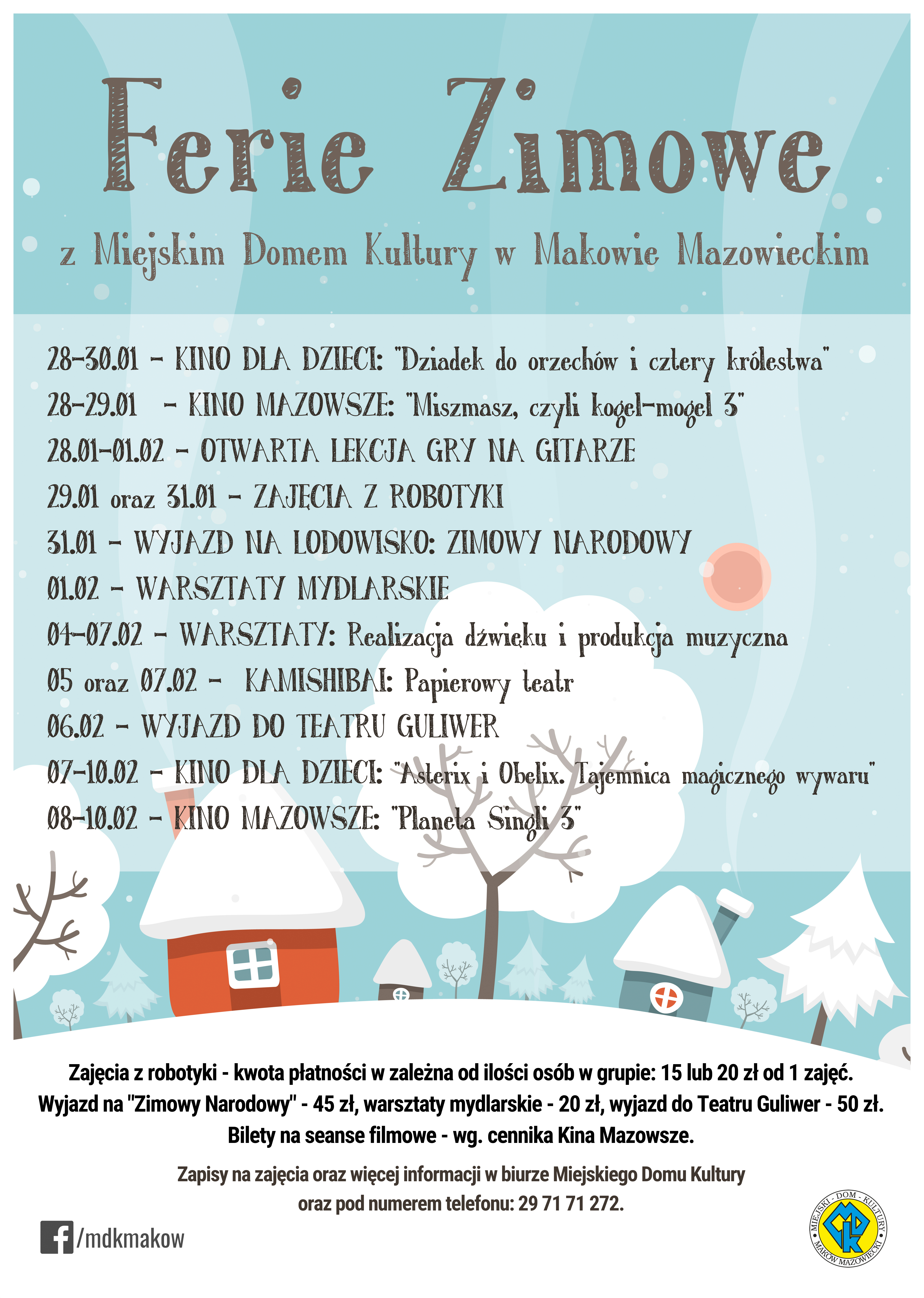 Zajęcia na miejscu, kino i atrakcyjne wyjazdy przygotował MDK na tegoroczne ferie zimowe.