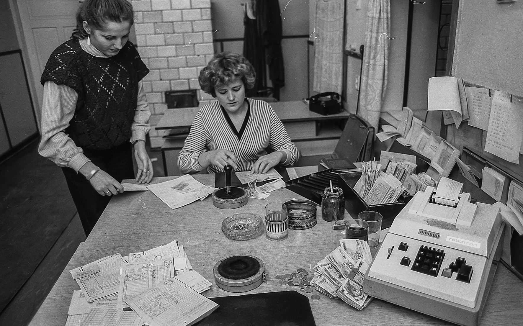 32 lata temu, w końcu listopada 1986 roku, odwiedziłem z aparatem fotograficznym urząd pocztowy w Makowie Mazowieckim. Uważny czytelnik zauważy, jak wiele się od tamtych czasów zmieniło. Wszechobecne popielniczki (w biurach nie było zakazów palenia), ręczne stemple i waga, teleks (urządzenie praktycznie dziś nieznane – kto powie jak działało i do czego służyło?).