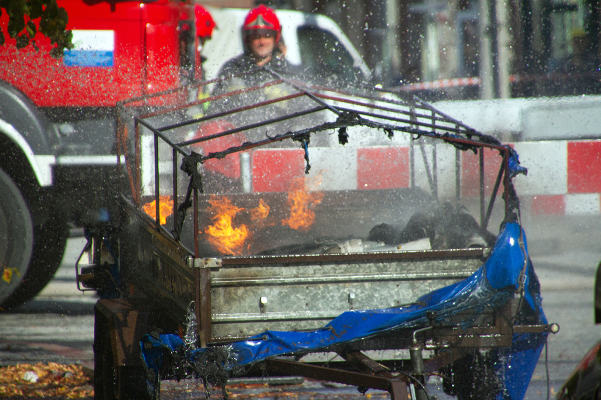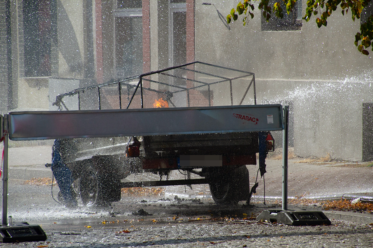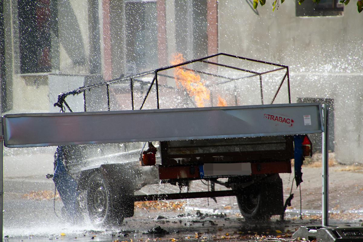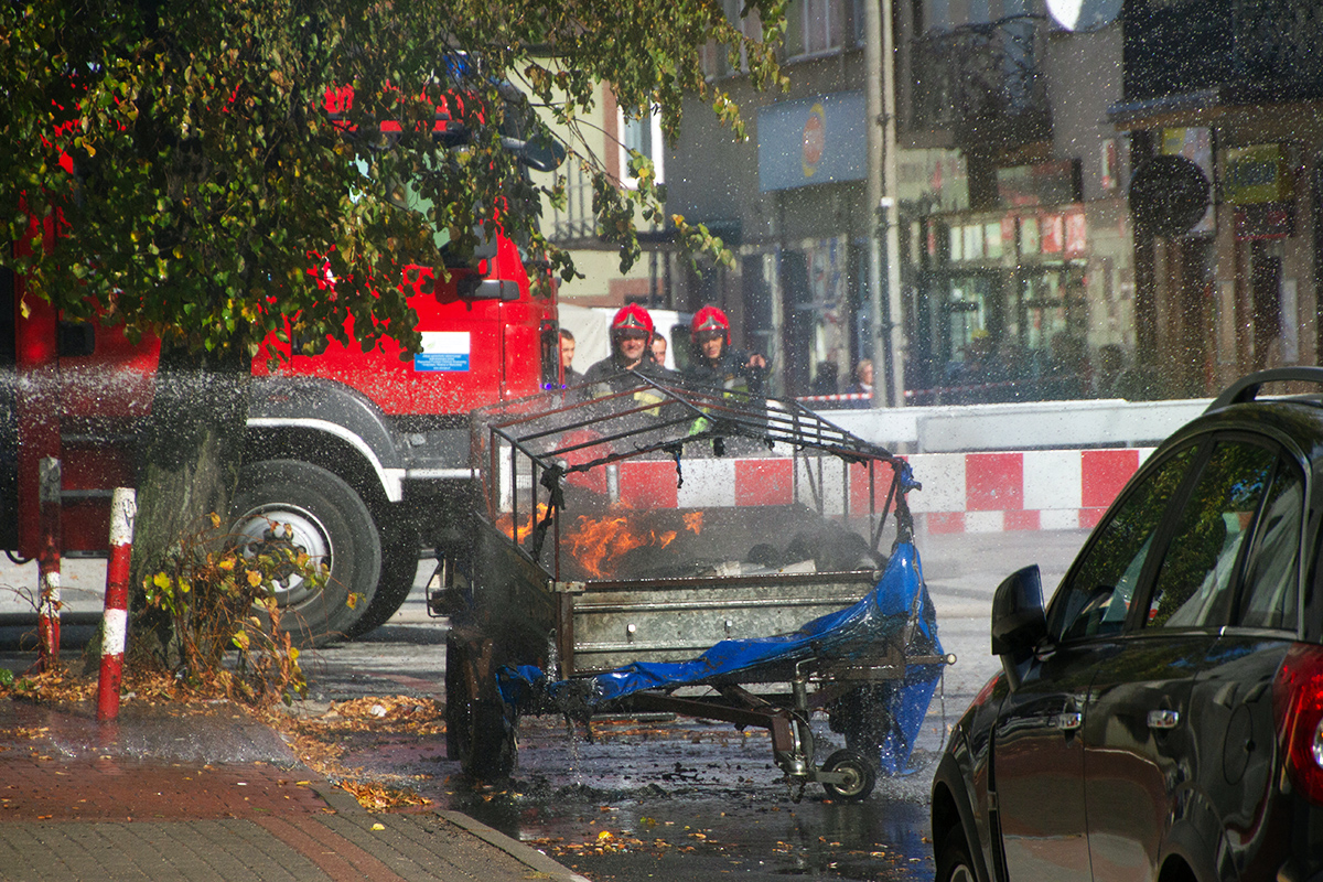 Z nieustalonych jeszcze przyczyn na przyczepce samochodowej zapaliły się dwie butle z acetylenem.