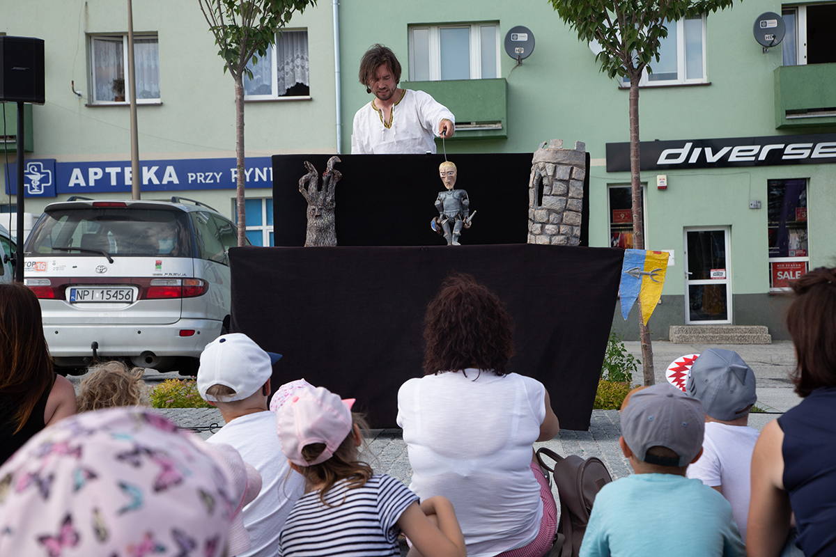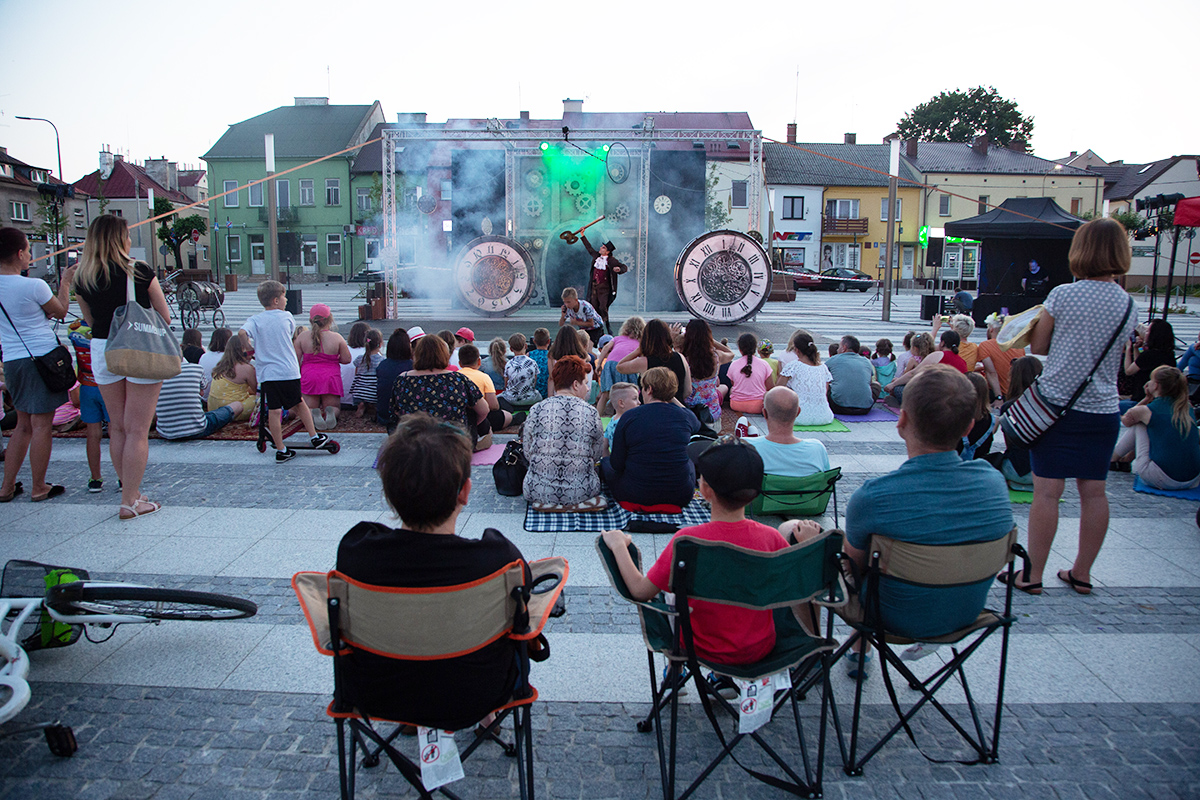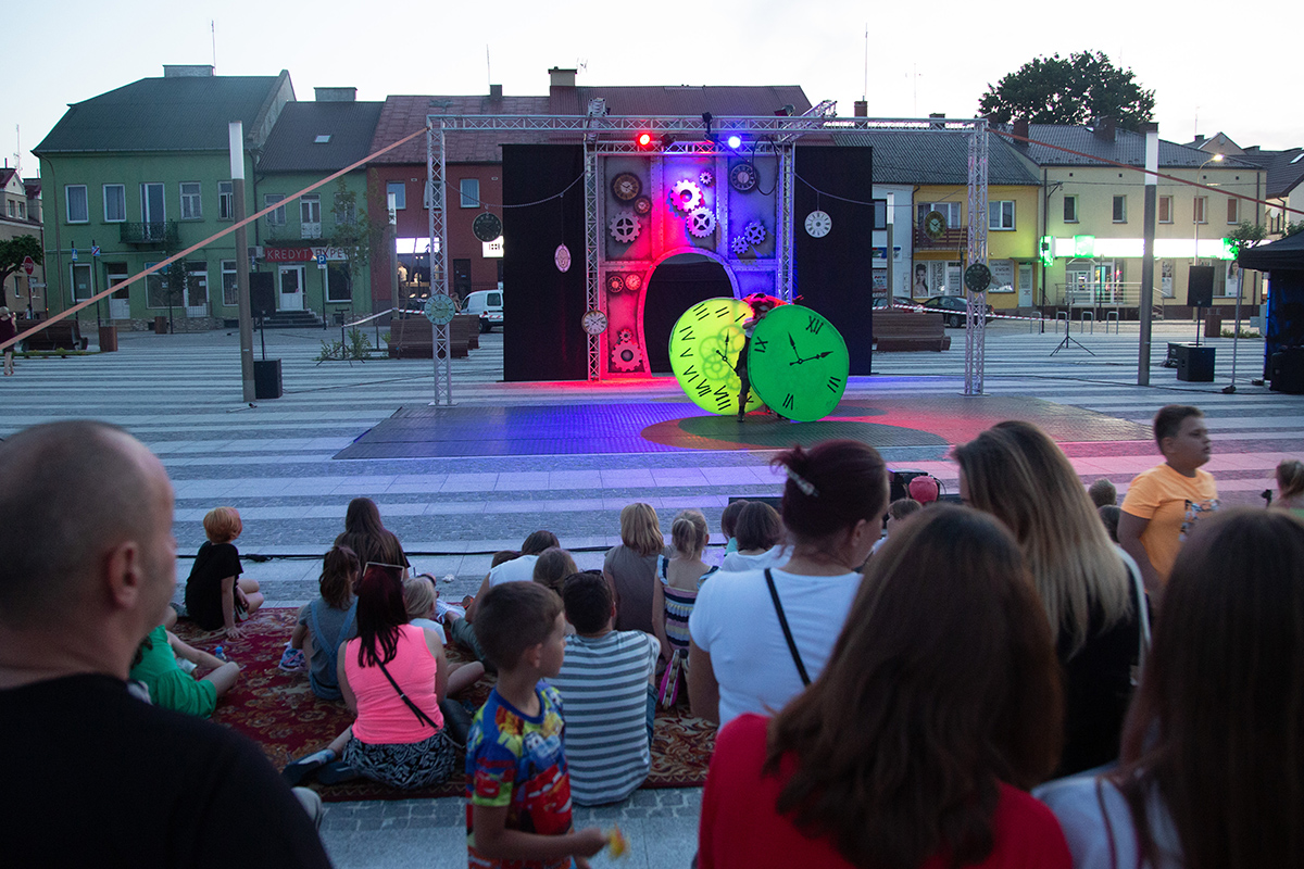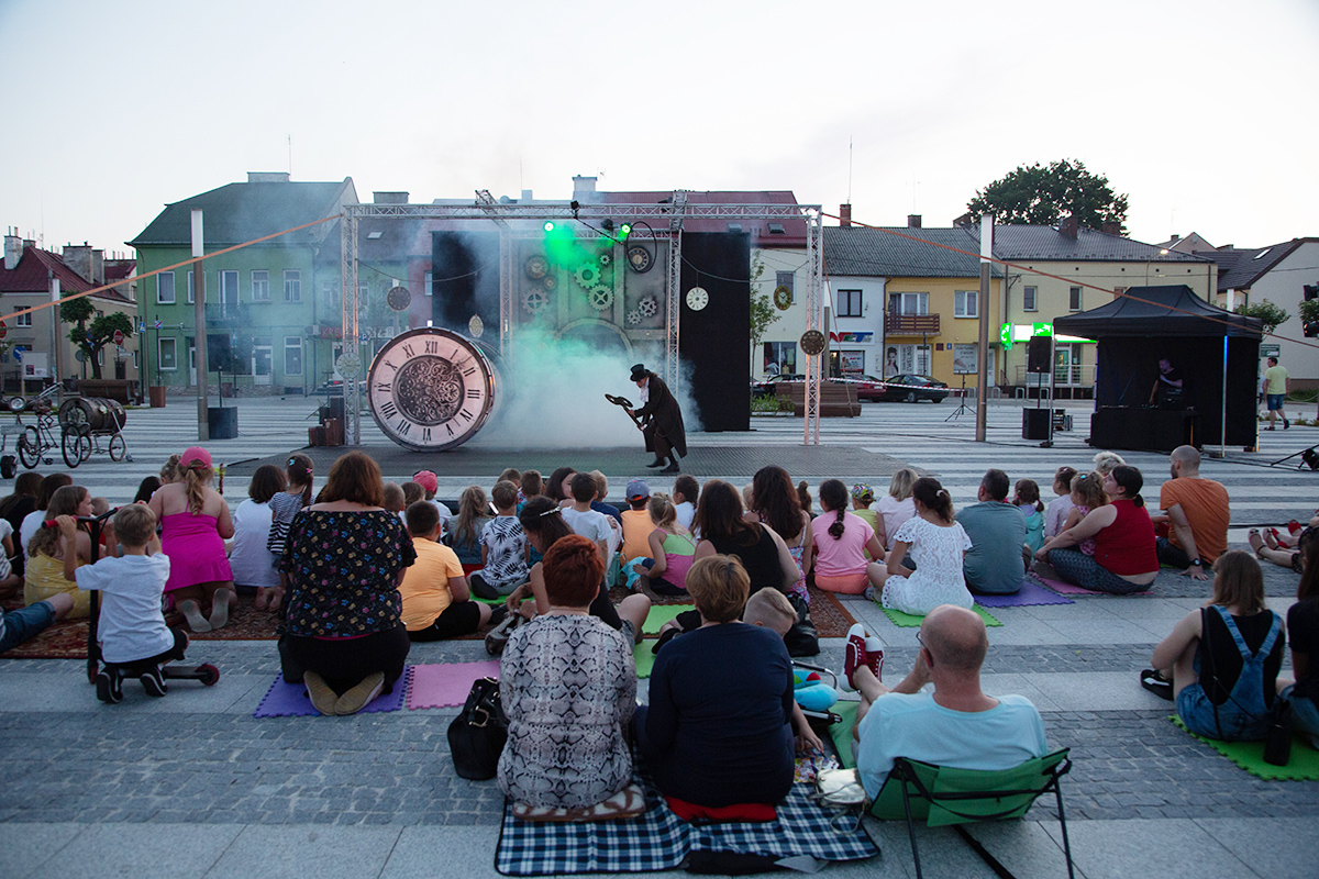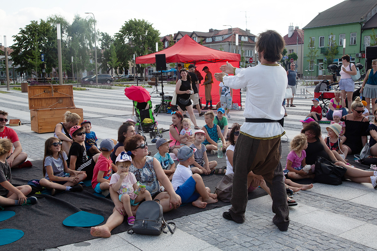 W piątek na makowskim Rynku wystąpiły 4 teatry uliczne: Barnaby, Delikates, Wędrowny Teatr Lalek Małe Mi oraz gwiazda wieczoru – Teatr Akt.
