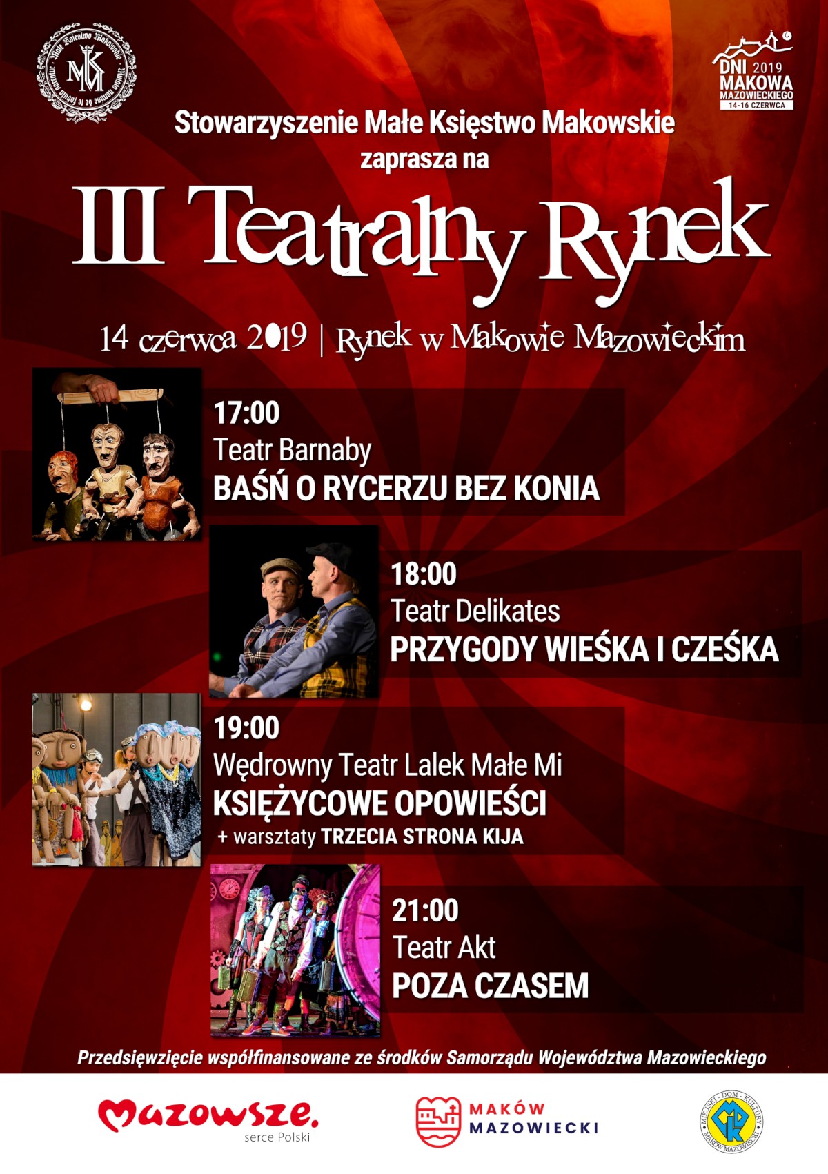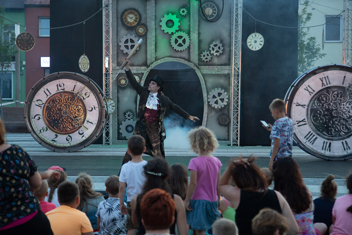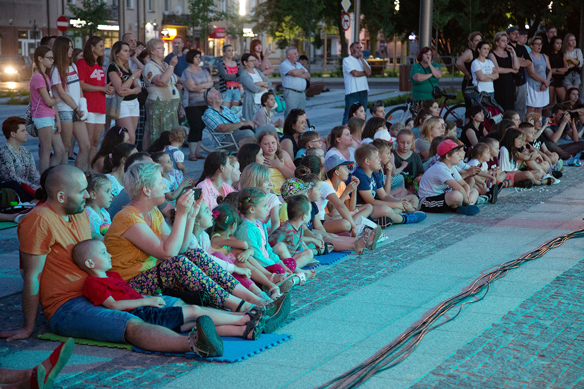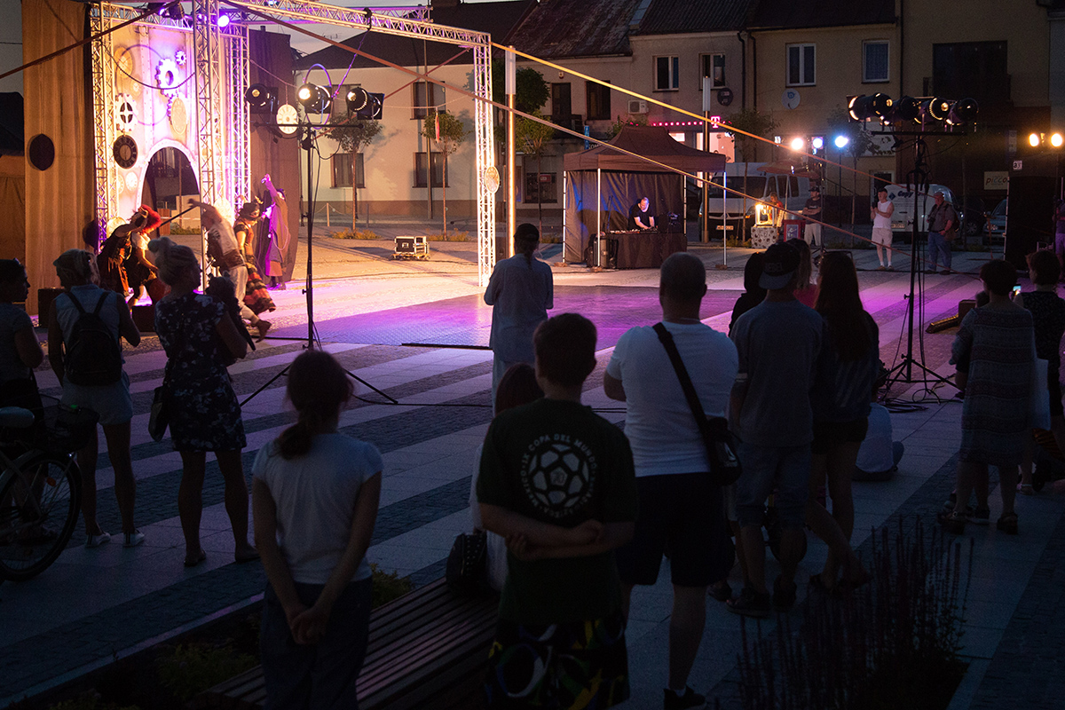 W piątek na makowskim Rynku wystąpiły 4 teatry uliczne: Barnaby, Delikates, Wędrowny Teatr Lalek Małe Mi oraz gwiazda wieczoru – Teatr Akt.