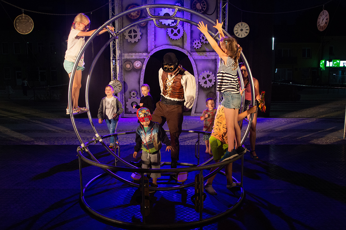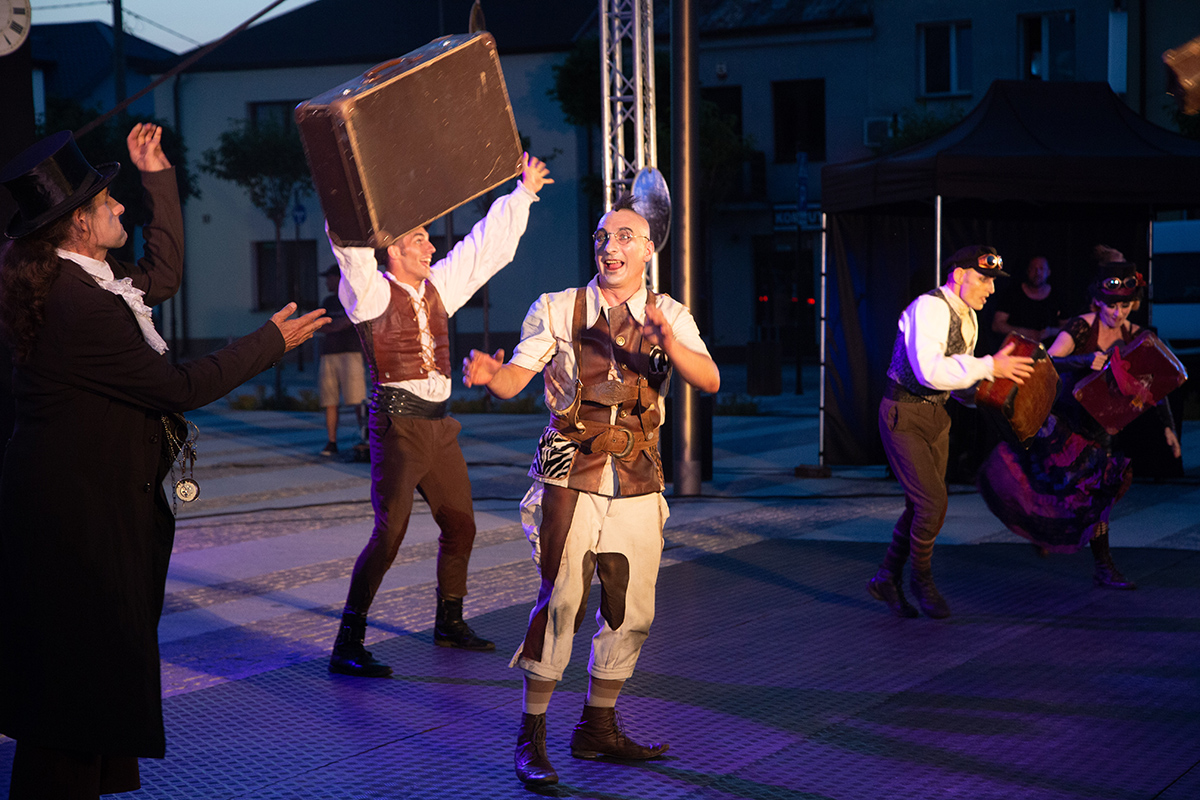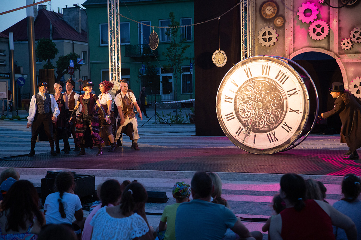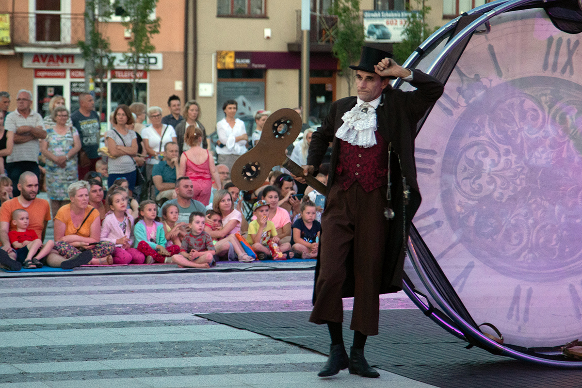 Spektakle rozpoczęły się w upalne popołudnie o 17 i trwały do 22. Spektakl Teatru Akt, zatytułowany „Poza czasem” transmitowaliśmy na żywo, teraz zamieszczamy zdjęcia z tego bardzo fotogenicznego przedstawienia.