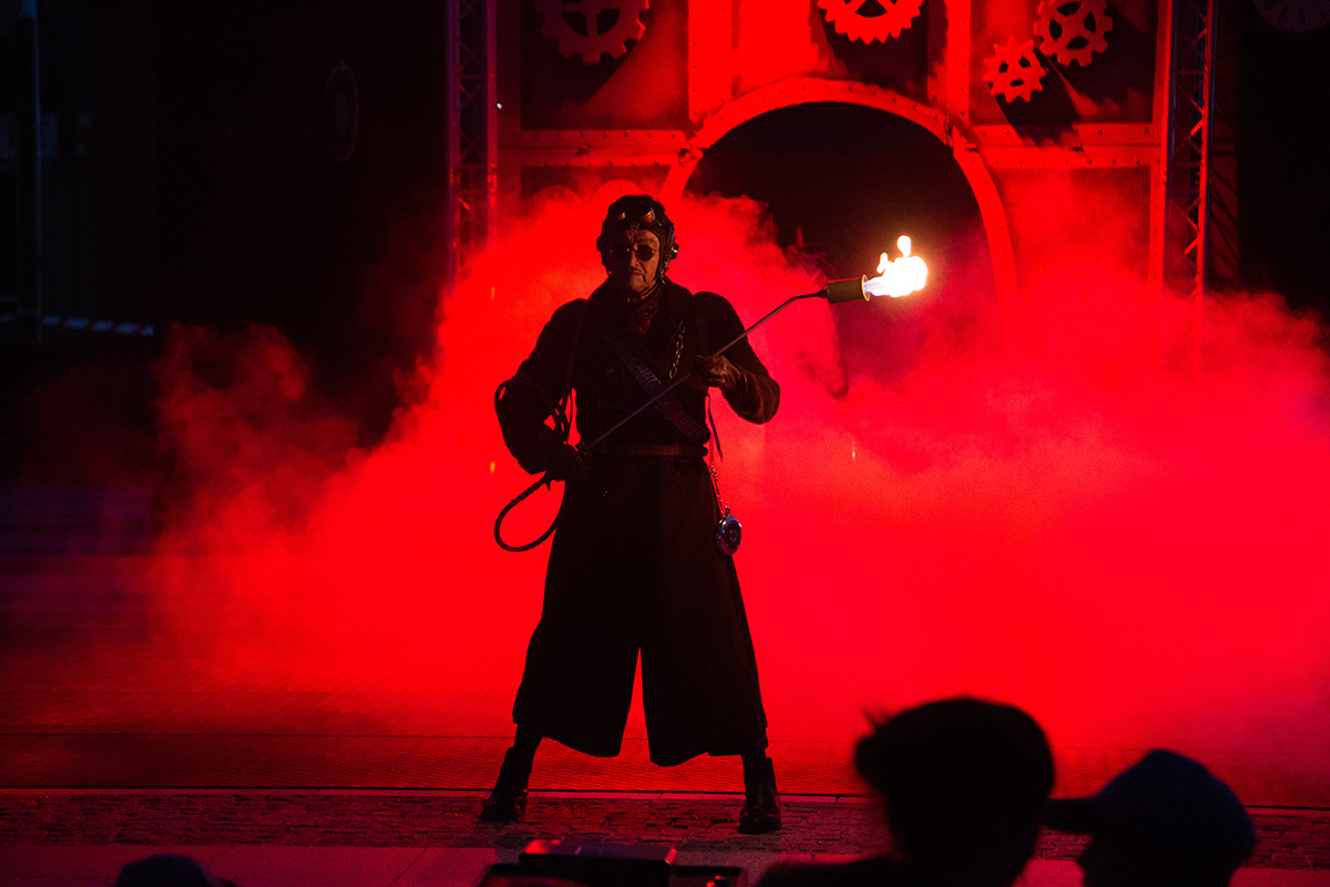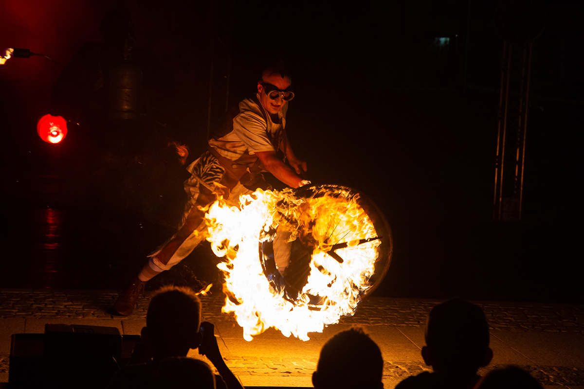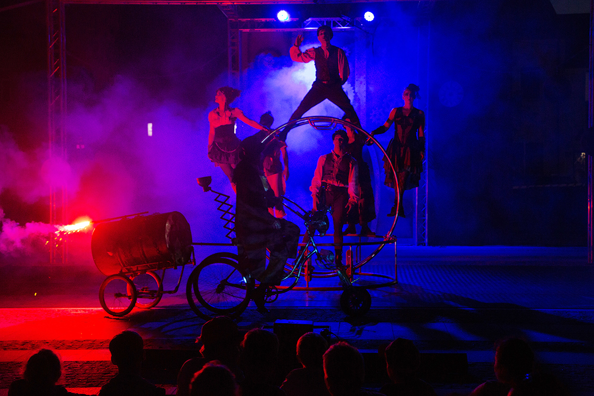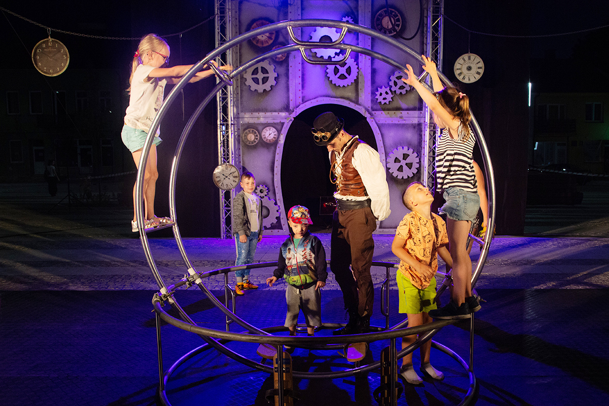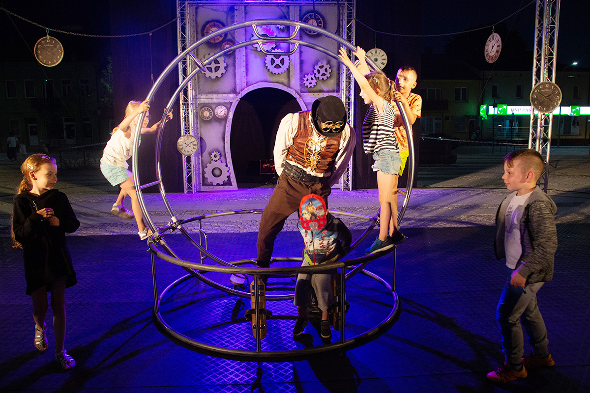 Spektakle rozpoczęły się w upalne popołudnie o 17 i trwały do 22. Spektakl Teatru Akt, zatytułowany „Poza czasem” transmitowaliśmy na żywo, teraz zamieszczamy zdjęcia z tego bardzo fotogenicznego przedstawienia.