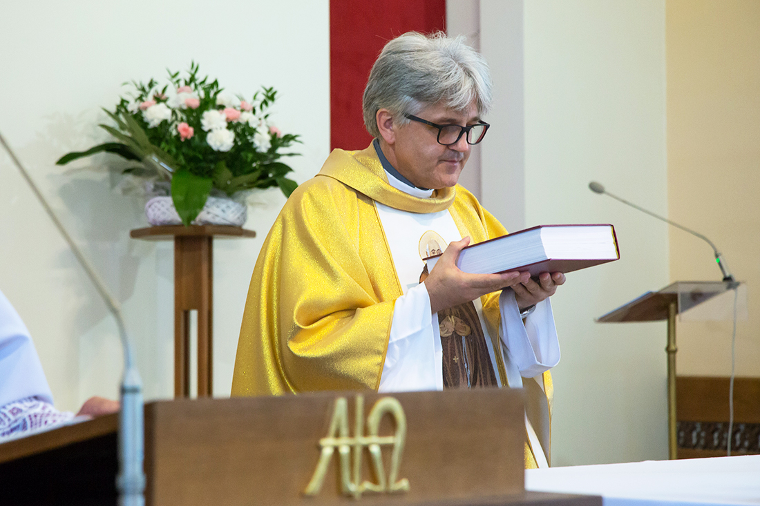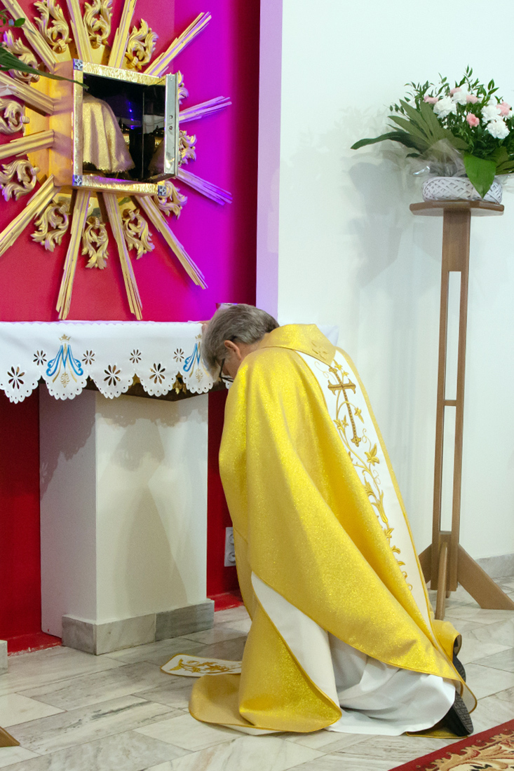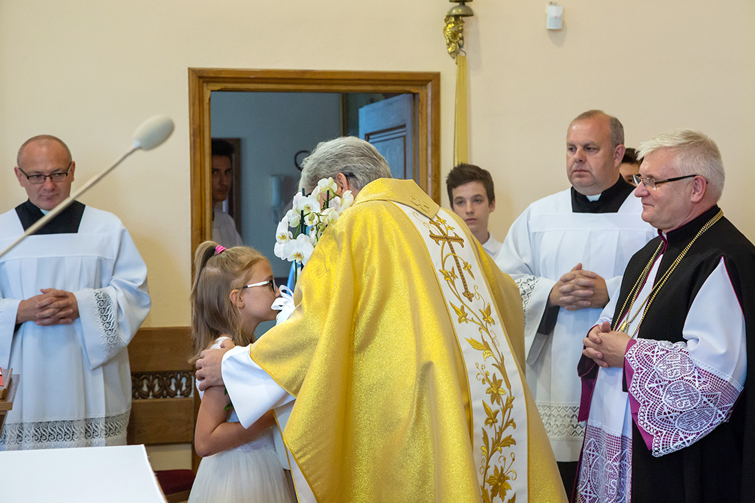 Klęcząc przed otwartym tabernakulum, ks. Marek Podsiadlik prosił w modlitwie o Boże błogosławieństwo dla swej posługi. Nowy proboszcz przyjął również z rąk księdza dziekana Pismo Święte oraz kielich z pateną, symbolizujące główne zadania duszpasterskie proboszcza: przepowiadanie Słowa Bożego oraz sprawowanie Ofiary Eucharystycznej. Duszpasterza powitali także jego nowi parafianie, dzieci wręczyły kwiaty.