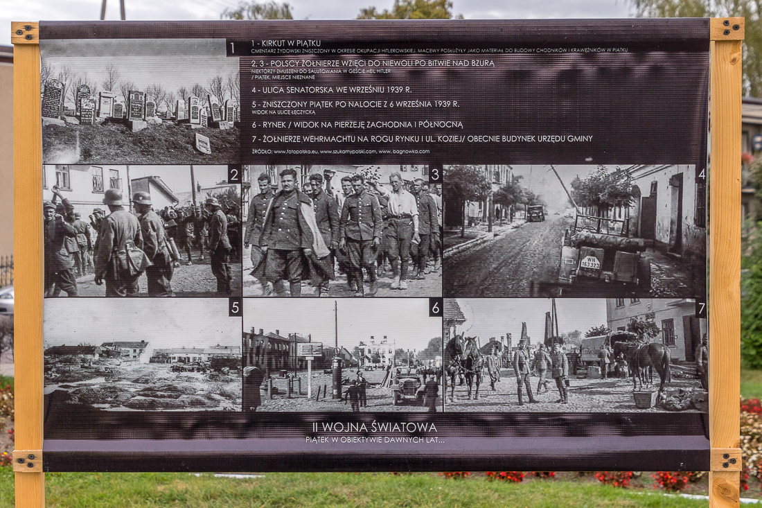 Różnica druga jest taka, że Piątek chwali się nie tylko centralnym położeniem, ale także swoją historią. Wokół pomnika ustawiono stojaki z fotografiami przedstawiającymi miasto sprzed lat oraz najważniejsze wydarzenia z historii miasta. Przyjezdni i turyści zatrzymujący się przy pomniku przy okazji poznają uroki miasteczka i jego bogatą przeszłość.