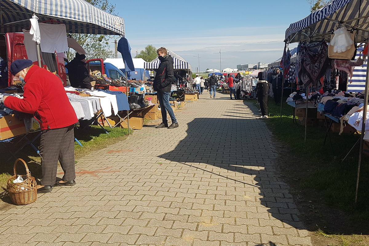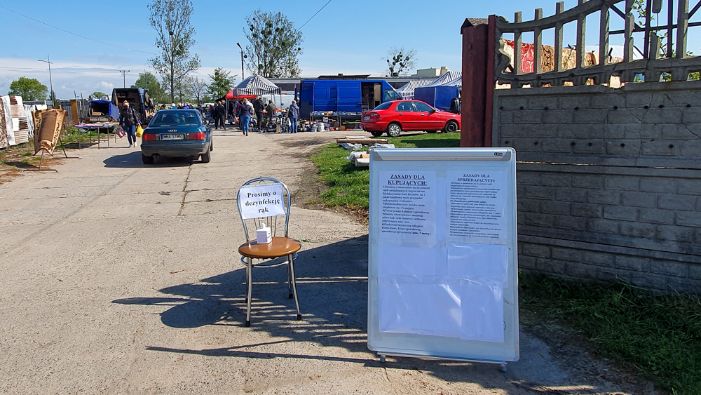 Jarmark ma jednak swoje prawa i trudno było zachować dwumetrowy dystans pomiędzy ludźmi, a już zupełnie nie sposób było zapłacić za towar utrzymując ten dystans od sprzedawcy. Jedynym regulaminowym rozwiązaniem byłoby w tym przypadku podawanie gotówki na kiju, na który to sposób nie jesteśmy jeszcze gotowi.