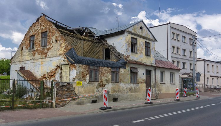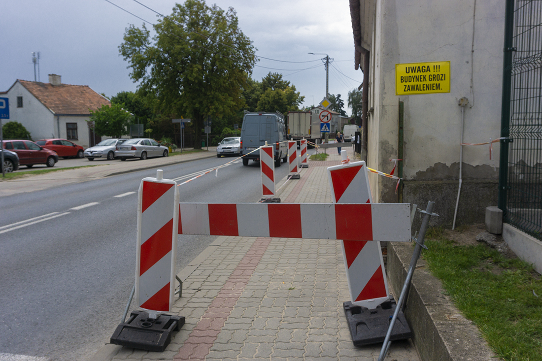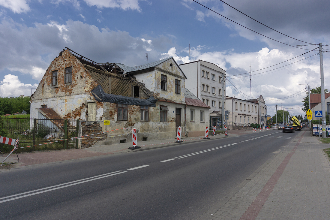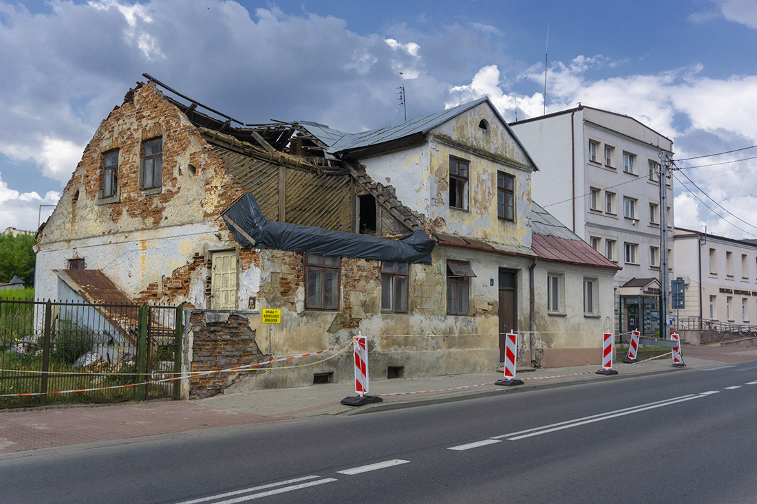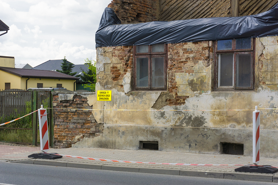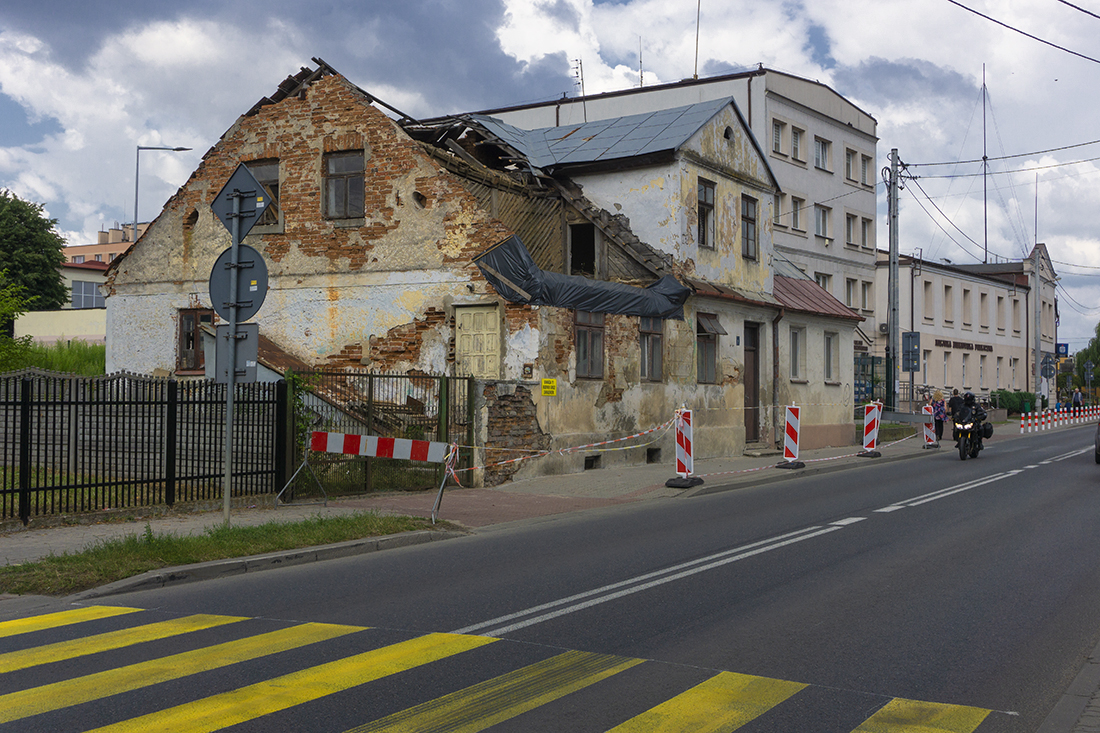 Sąsiadująca z Urzędem Miejskim rudera straszy już nie tylko wyglądem. Budynek grozi zawaleniem. Powinien zostać jak najszybciej rozebrany, ale na razie zagrodzony został chodnik przy budynku i wymalowane dodatkowe żółte pasy na przejście dla pieszych. O to dlaczego tak się dzieje i kiedy rudera zostanie rozebrana zapytaliśmy Jadwigę Roman, powiatowego inspektora nadzoru budowlanego.