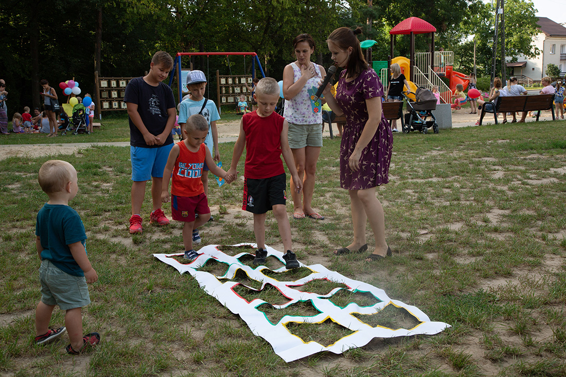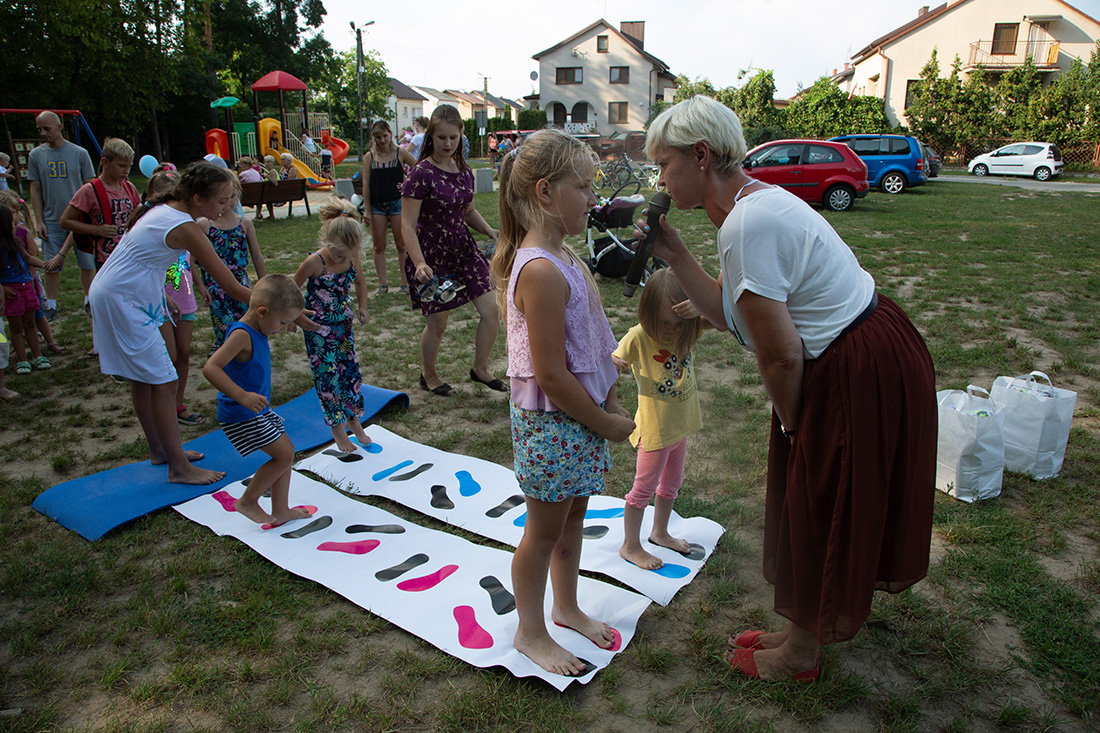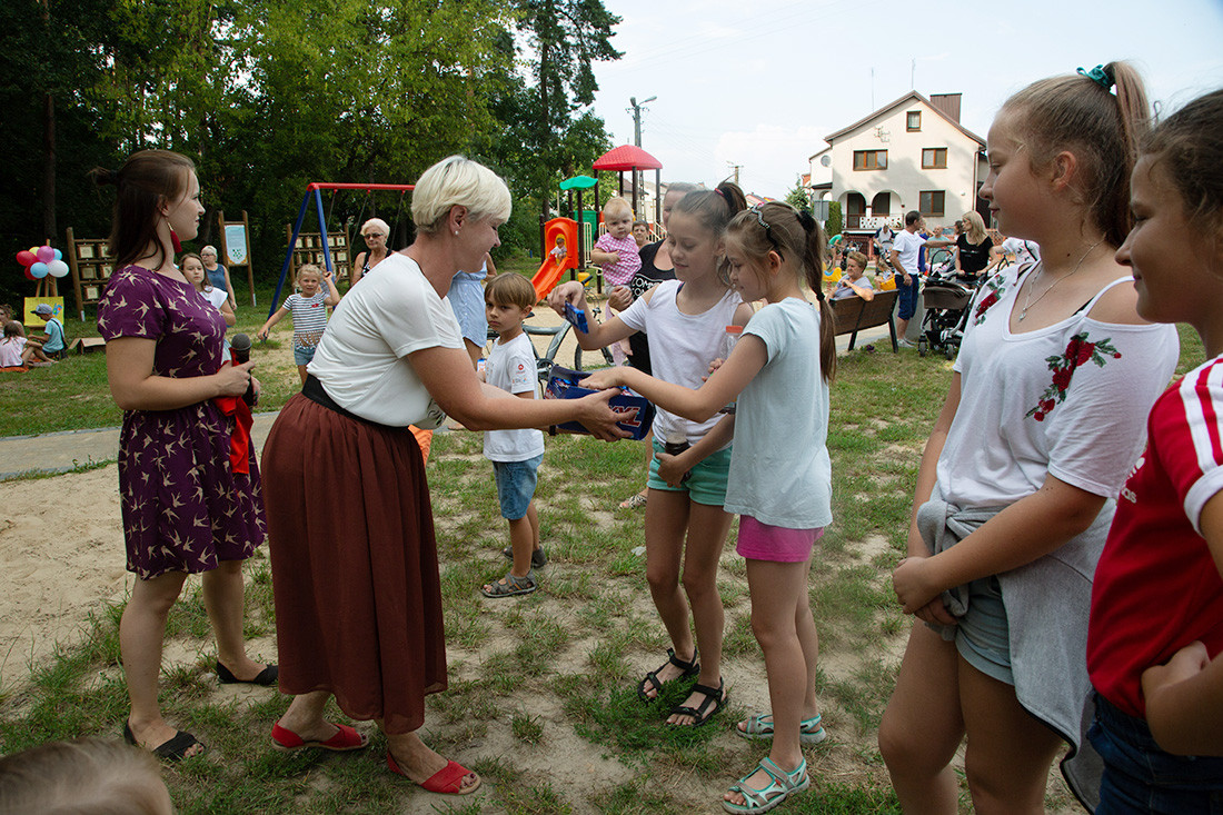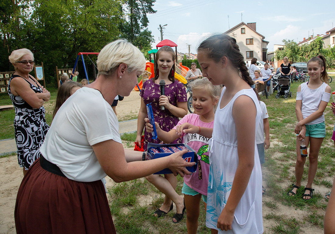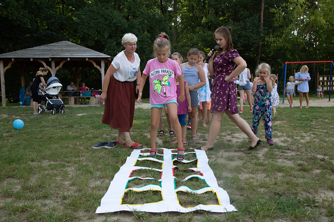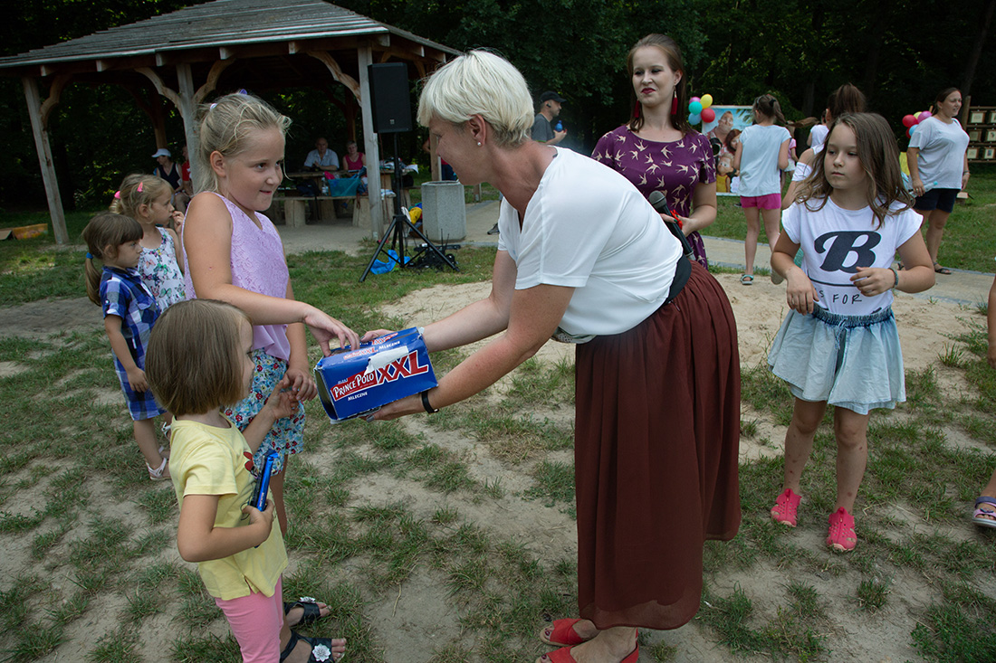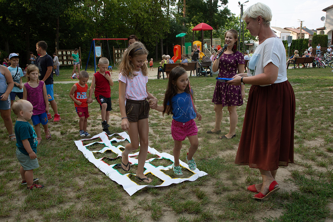 – Kiedy było otwarcie placu zabaw, państwo się super bawiliście i niektórzy z mieszkańców powiedzieli: „przyjdźcie do nas, od lasu chłodniej” – więc jesteśmy. Pracownicy Domu Kultury, ale nie tylko bo jest też młodzież, która się angażuje w to działanie – mówiła prowadząca imprezę Kasia Wojnarowska.