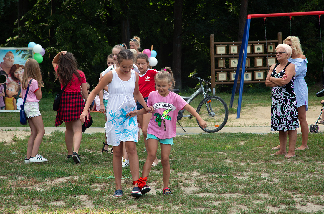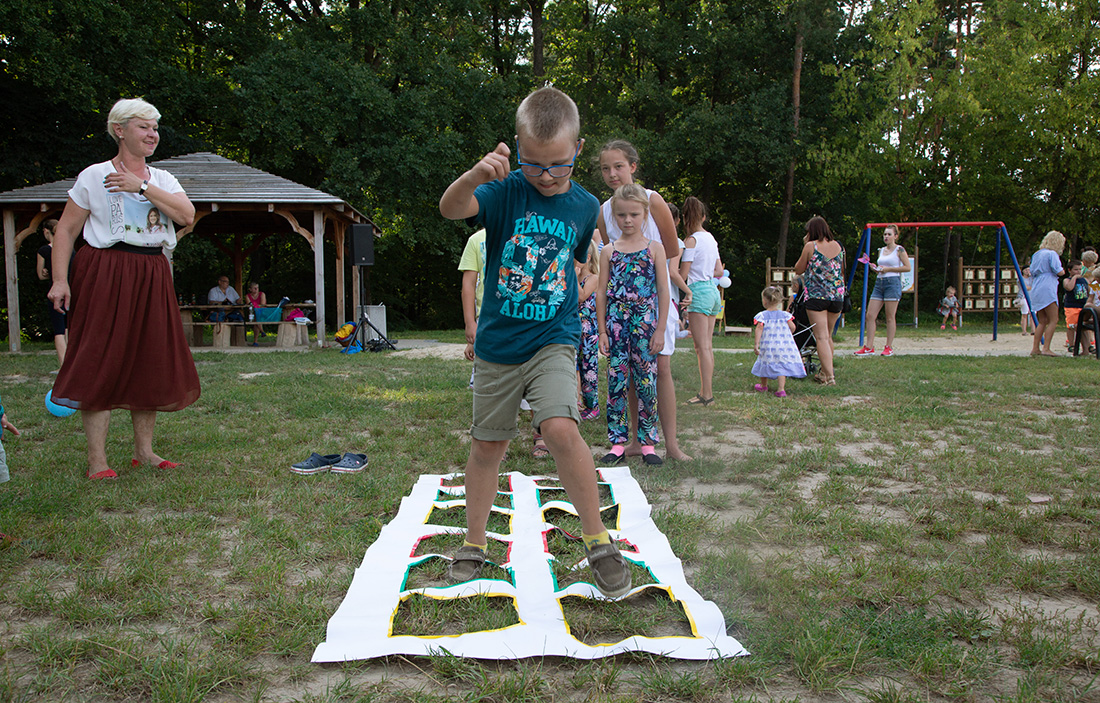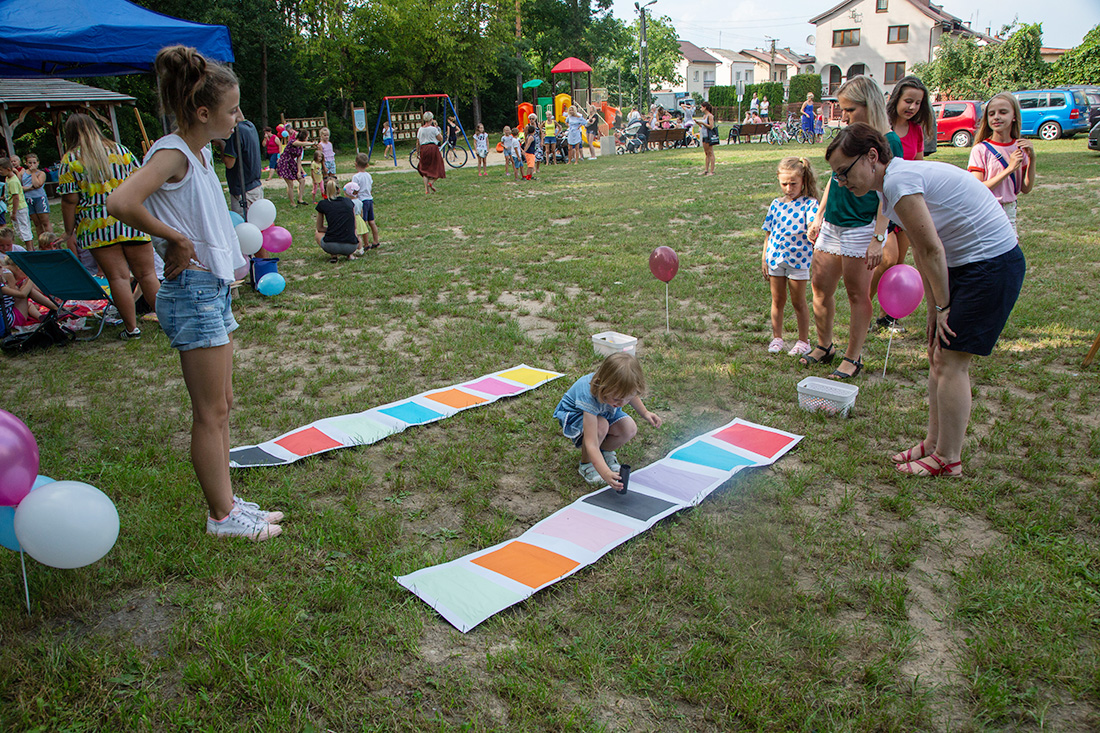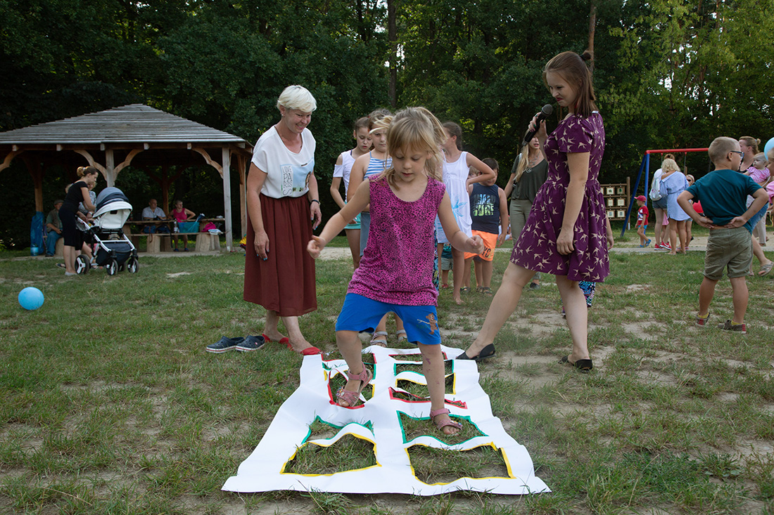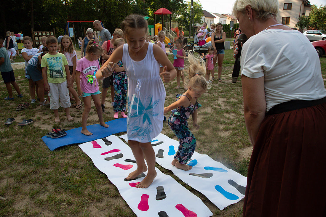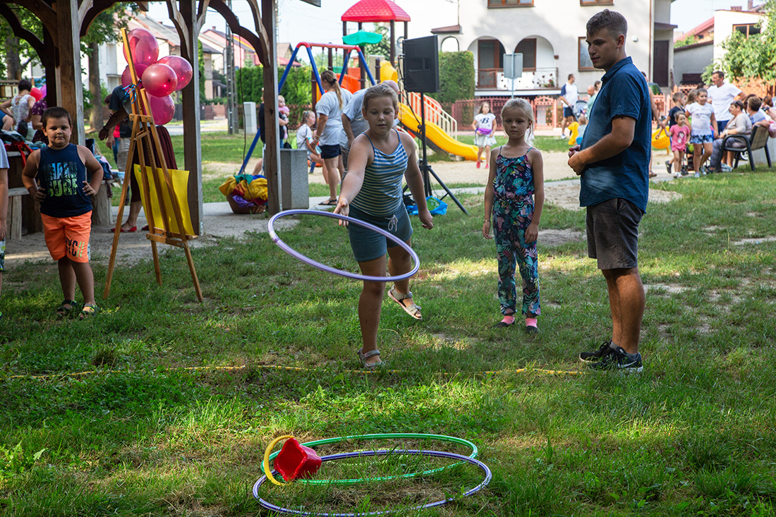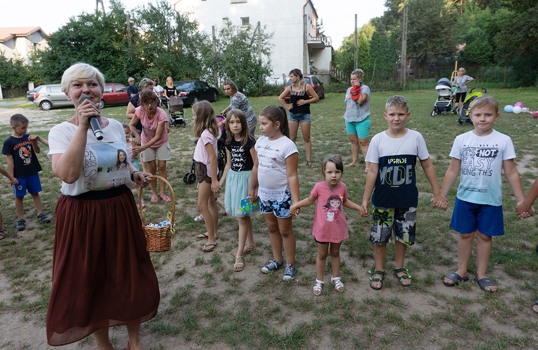 – Kiedy było otwarcie placu zabaw, państwo się super bawiliście i niektórzy z mieszkańców powiedzieli: „przyjdźcie do nas, od lasu chłodniej” – więc jesteśmy. Pracownicy Domu Kultury, ale nie tylko bo jest też młodzież, która się angażuje w to działanie – mówiła prowadząca imprezę Kasia Wojnarowska.