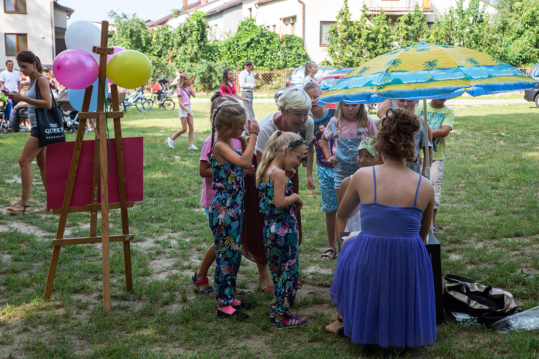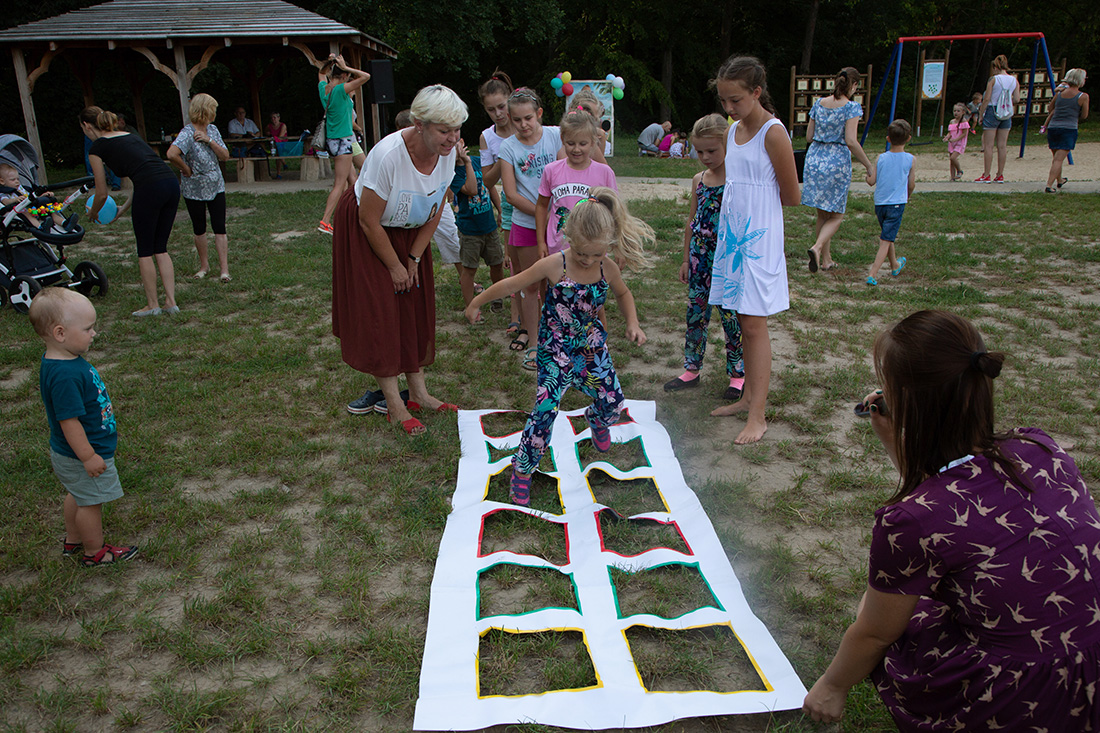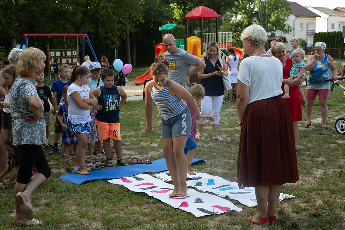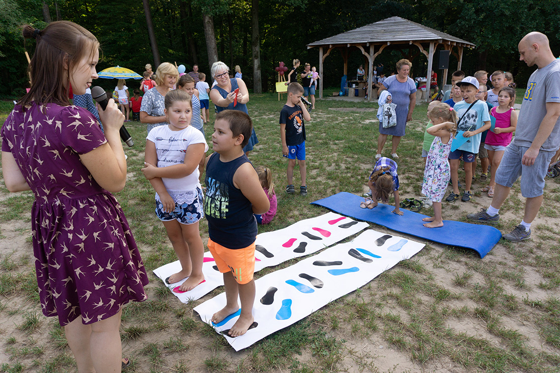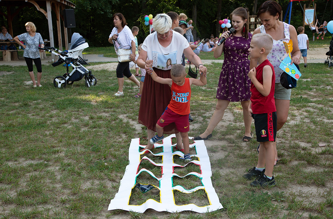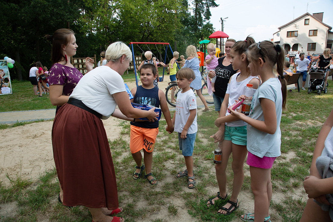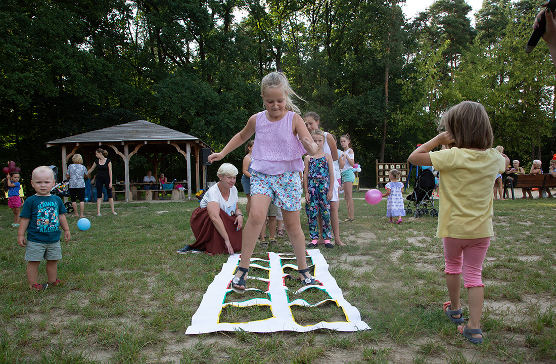 – Kiedy było otwarcie placu zabaw, państwo się super bawiliście i niektórzy z mieszkańców powiedzieli: „przyjdźcie do nas, od lasu chłodniej” – więc jesteśmy. Pracownicy Domu Kultury, ale nie tylko bo jest też młodzież, która się angażuje w to działanie – mówiła prowadząca imprezę Kasia Wojnarowska.