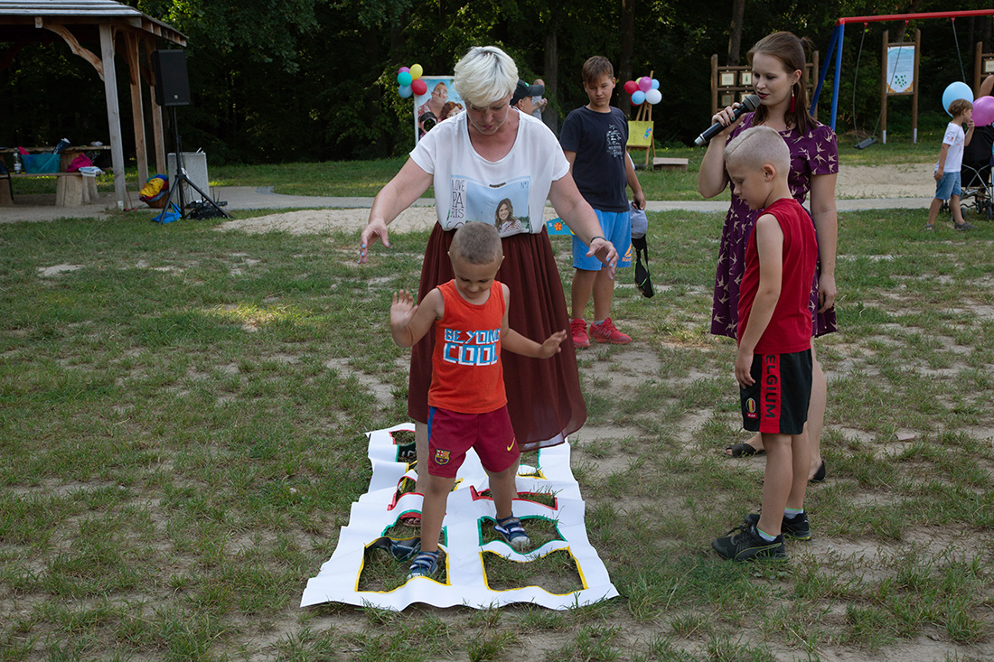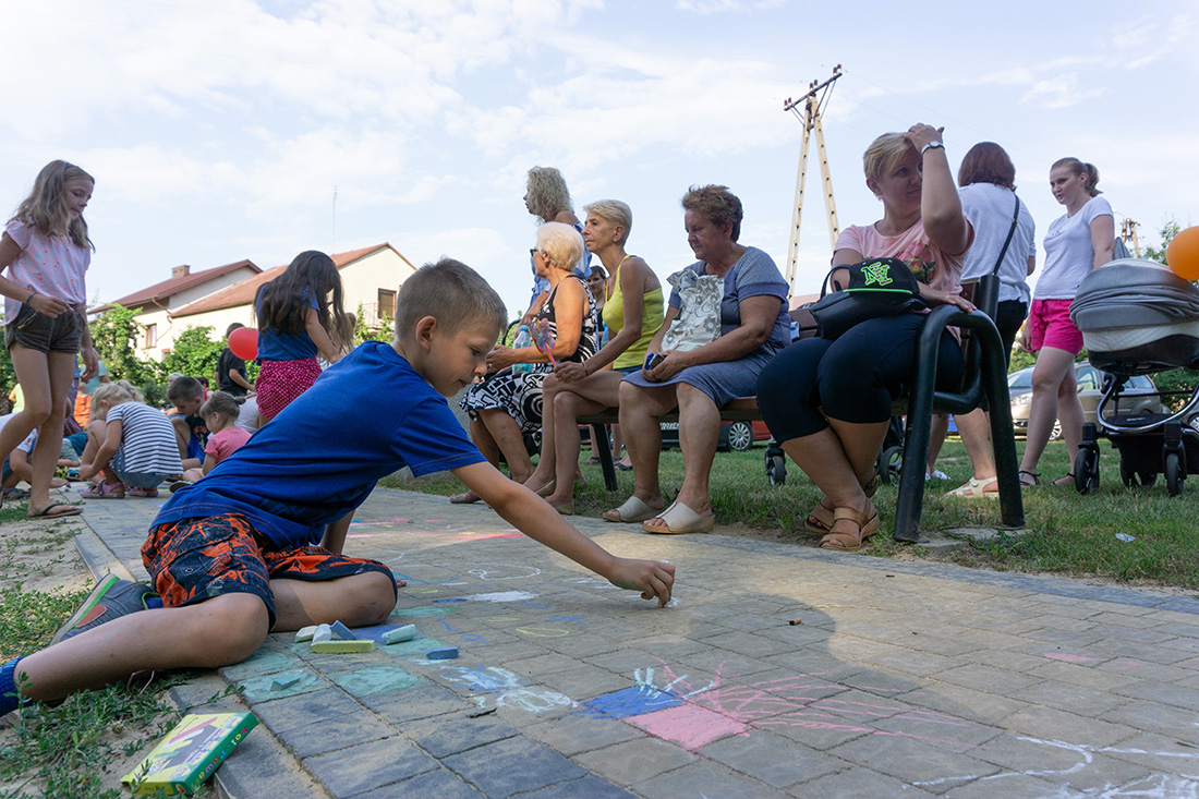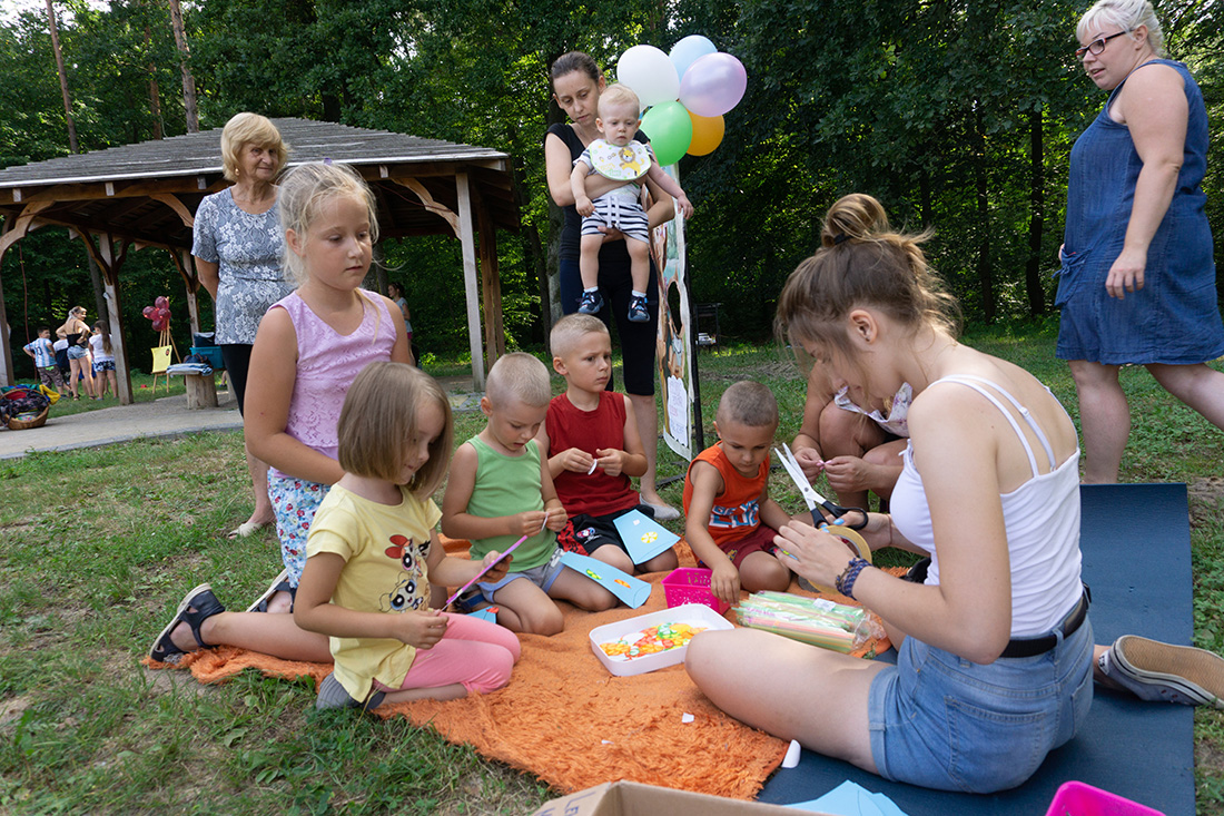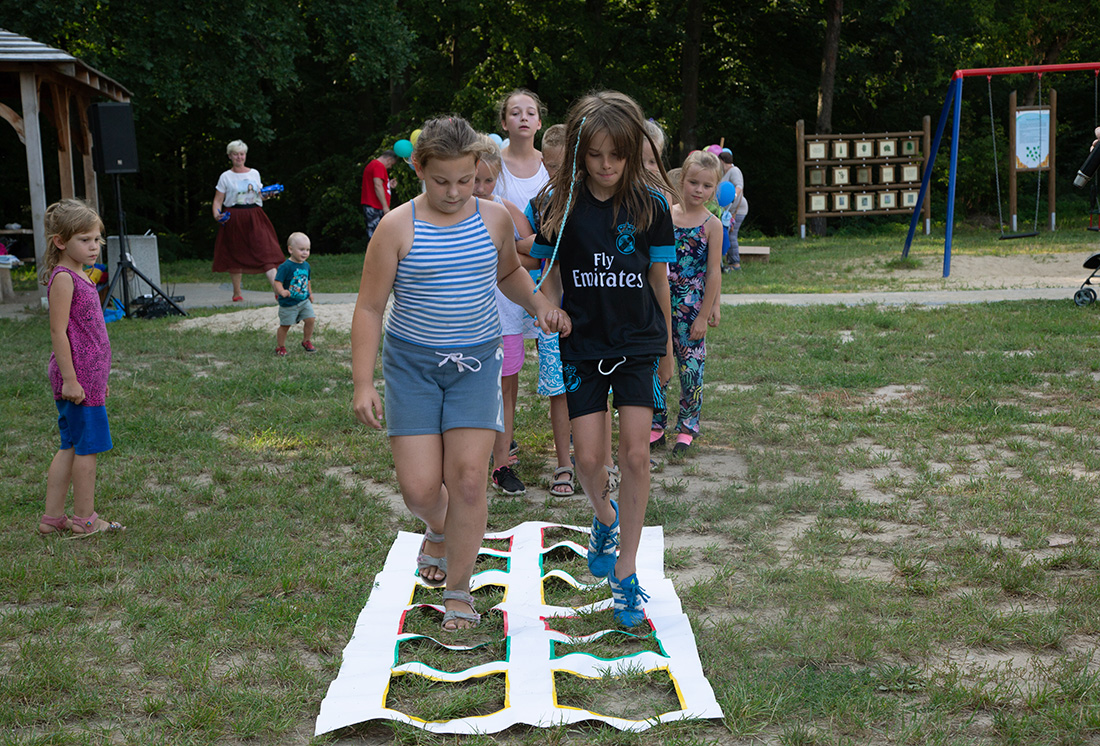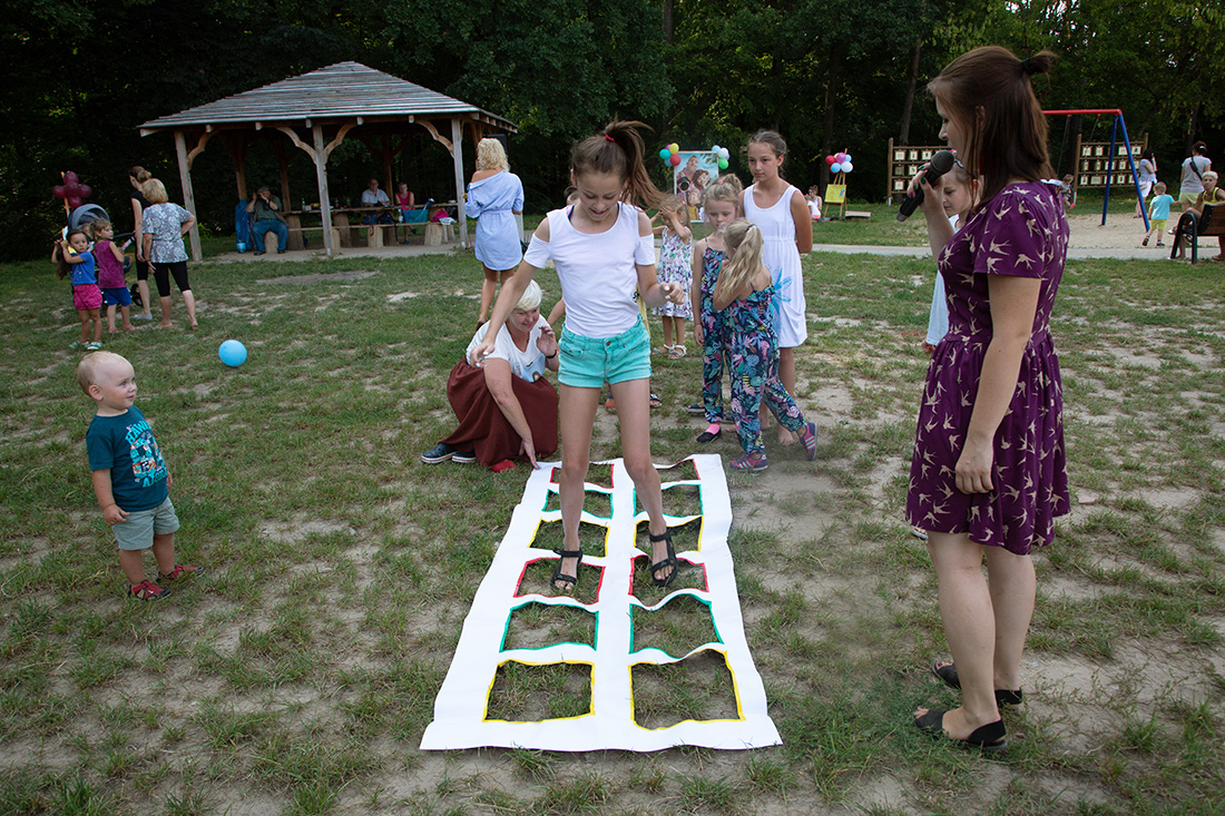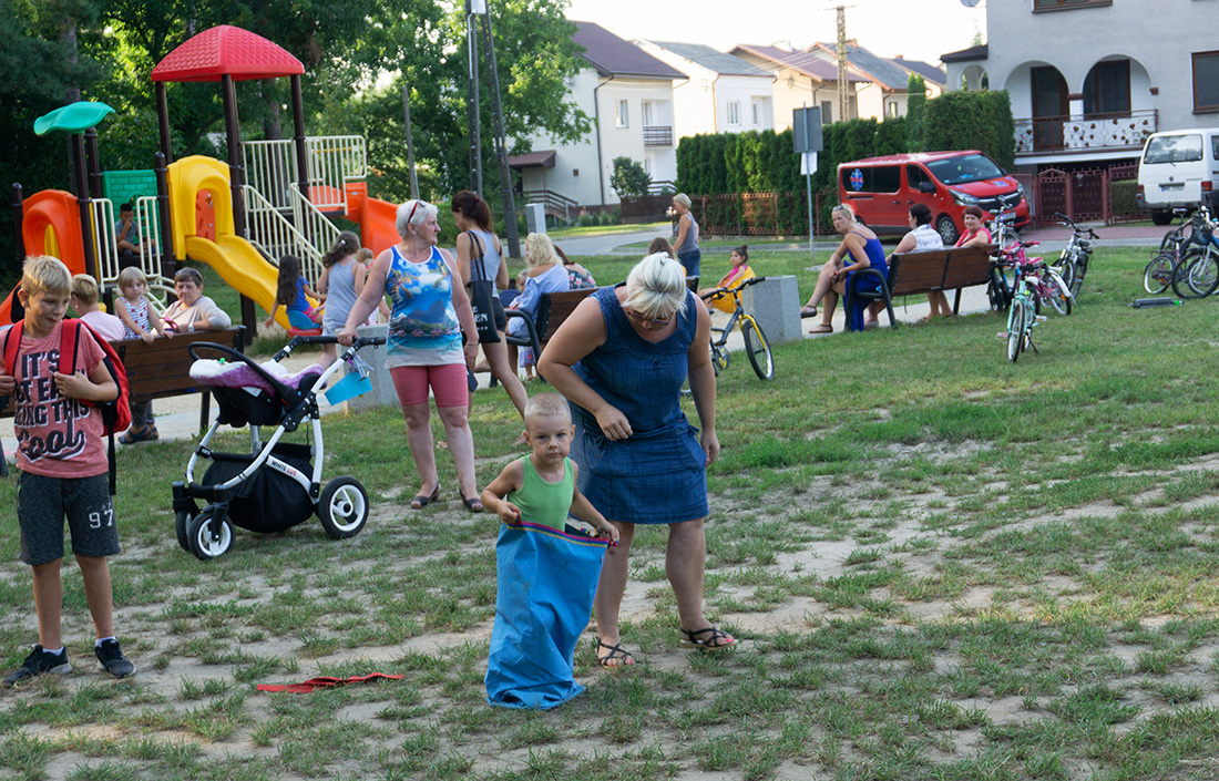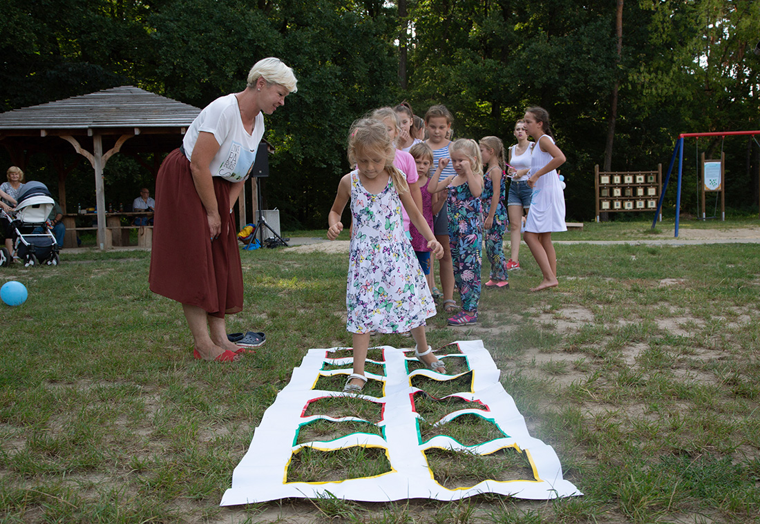 – Kiedy było otwarcie placu zabaw, państwo się super bawiliście i niektórzy z mieszkańców powiedzieli: „przyjdźcie do nas, od lasu chłodniej” – więc jesteśmy. Pracownicy Domu Kultury, ale nie tylko bo jest też młodzież, która się angażuje w to działanie – mówiła prowadząca imprezę Kasia Wojnarowska.