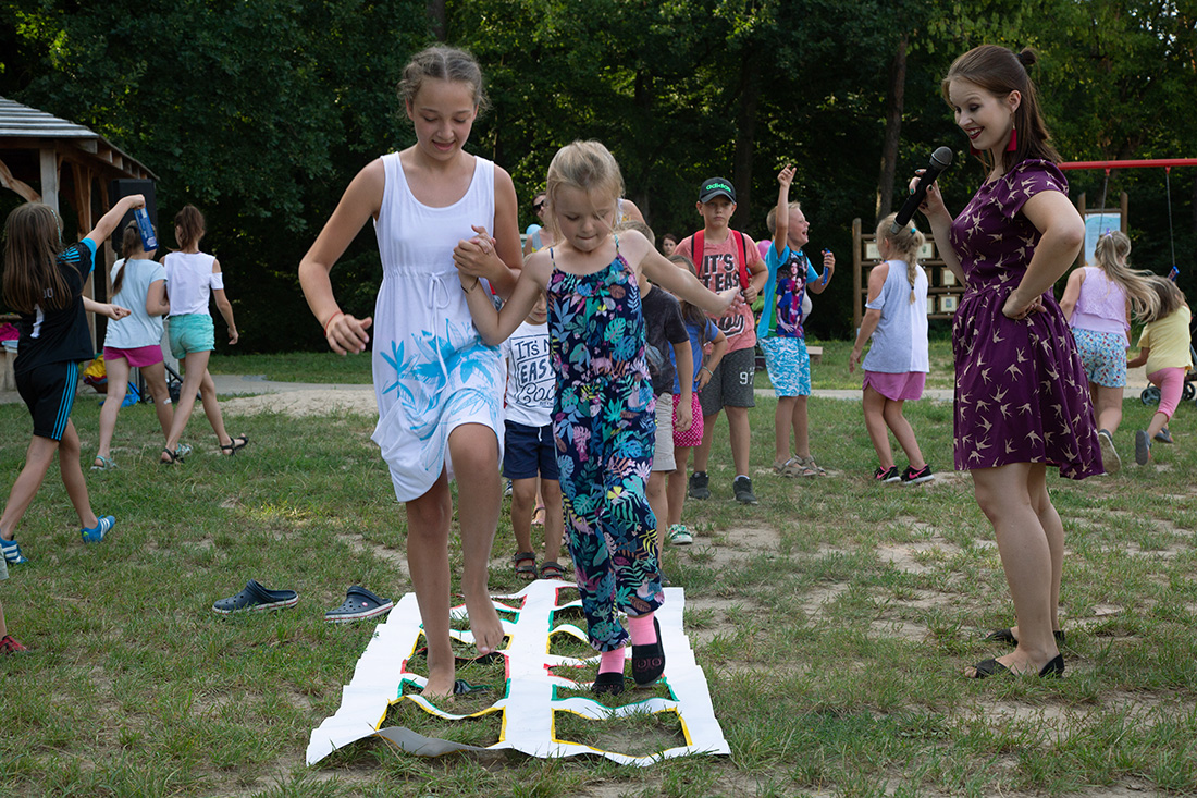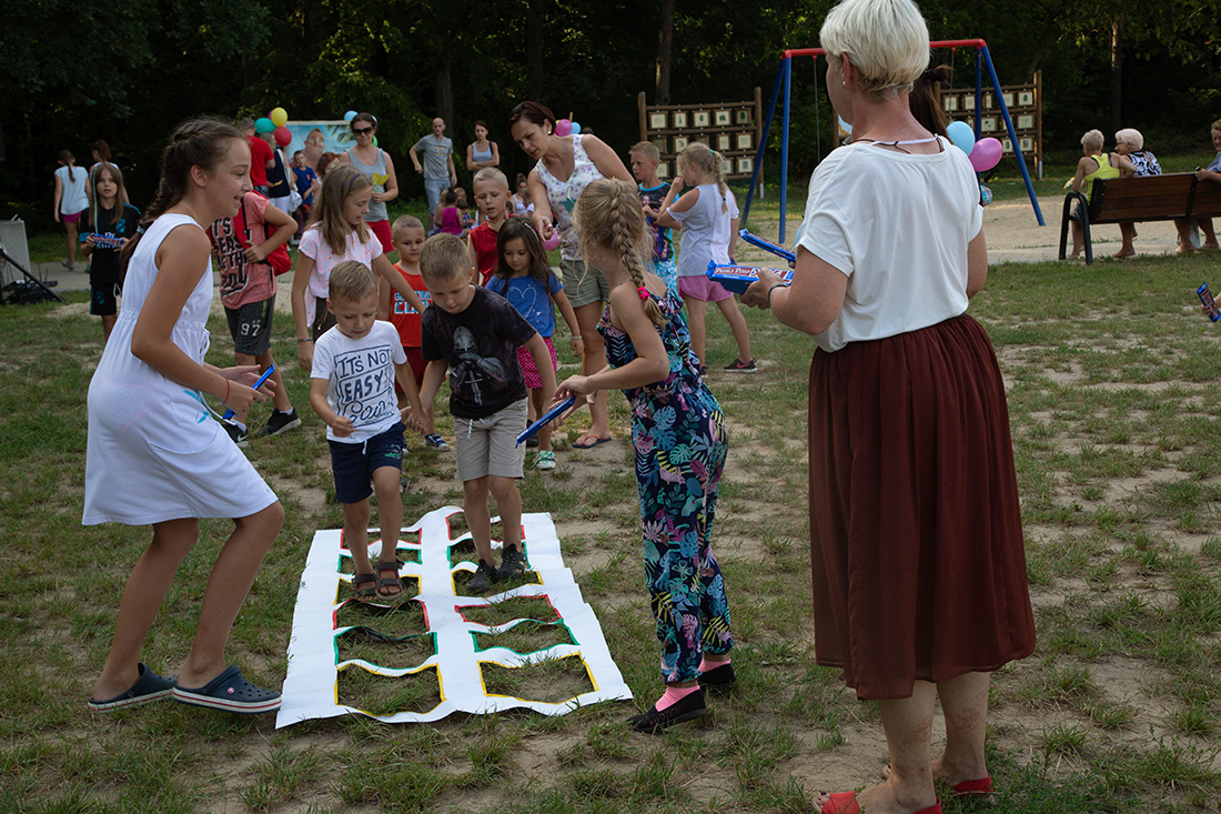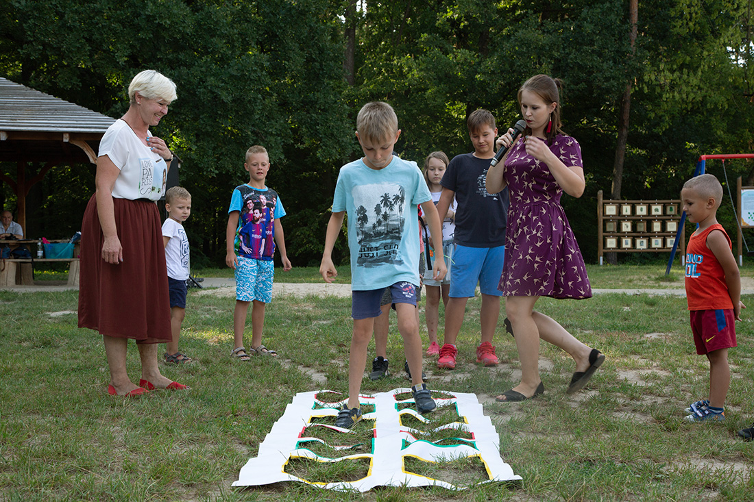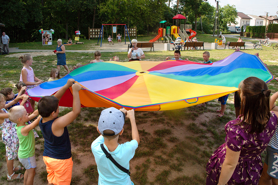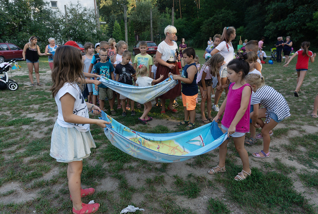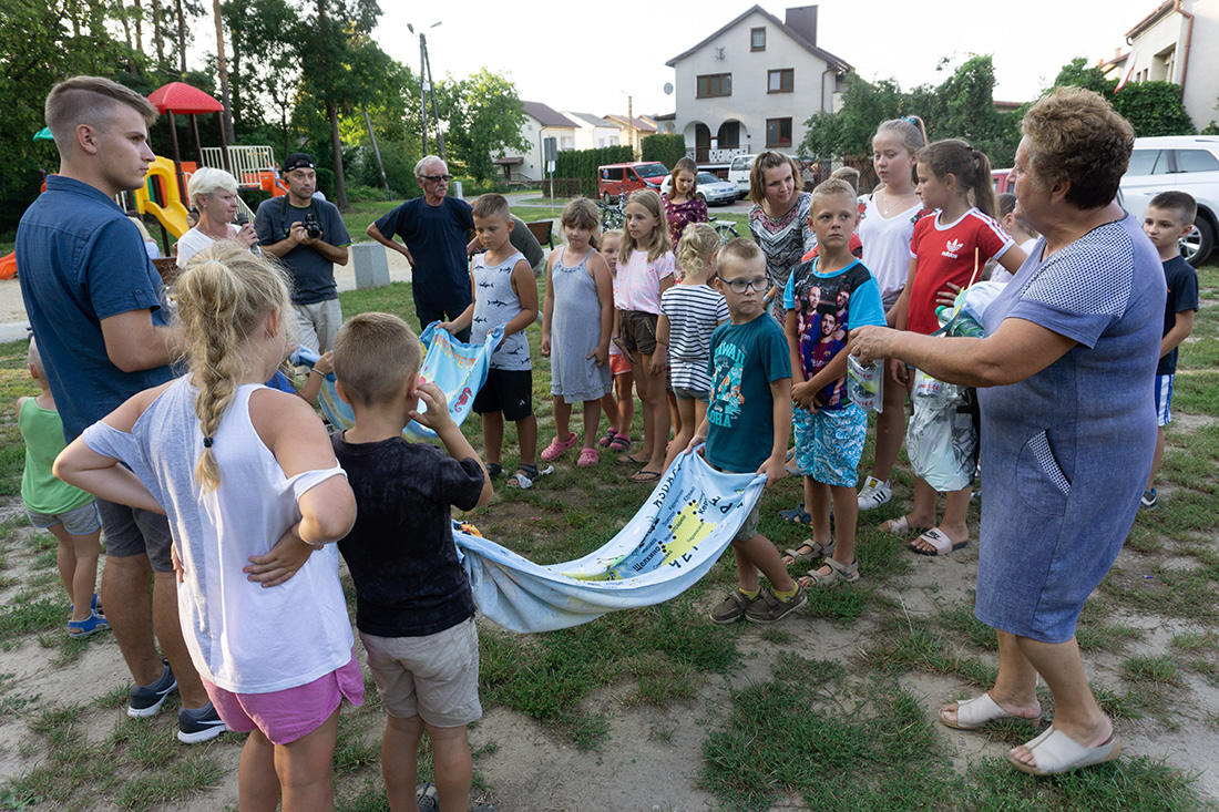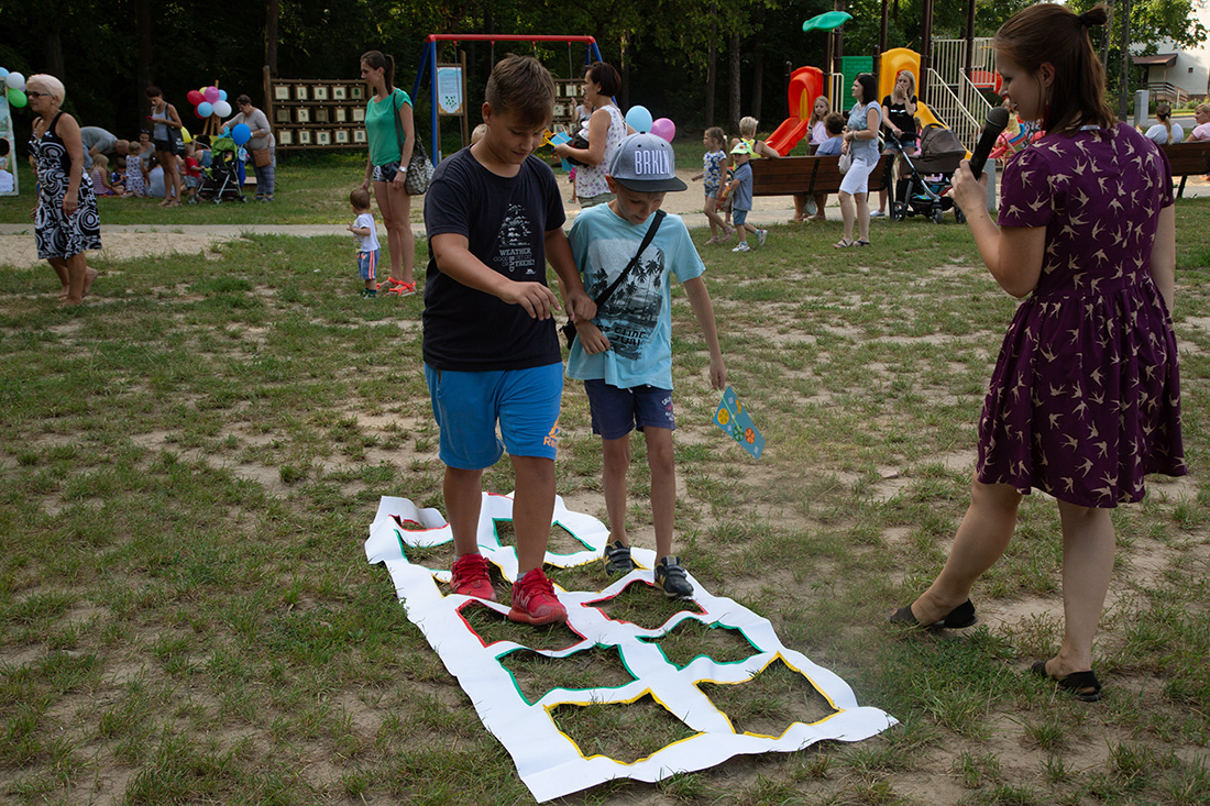 – Kiedy było otwarcie placu zabaw, państwo się super bawiliście i niektórzy z mieszkańców powiedzieli: „przyjdźcie do nas, od lasu chłodniej” – więc jesteśmy. Pracownicy Domu Kultury, ale nie tylko bo jest też młodzież, która się angażuje w to działanie – mówiła prowadząca imprezę Kasia Wojnarowska.