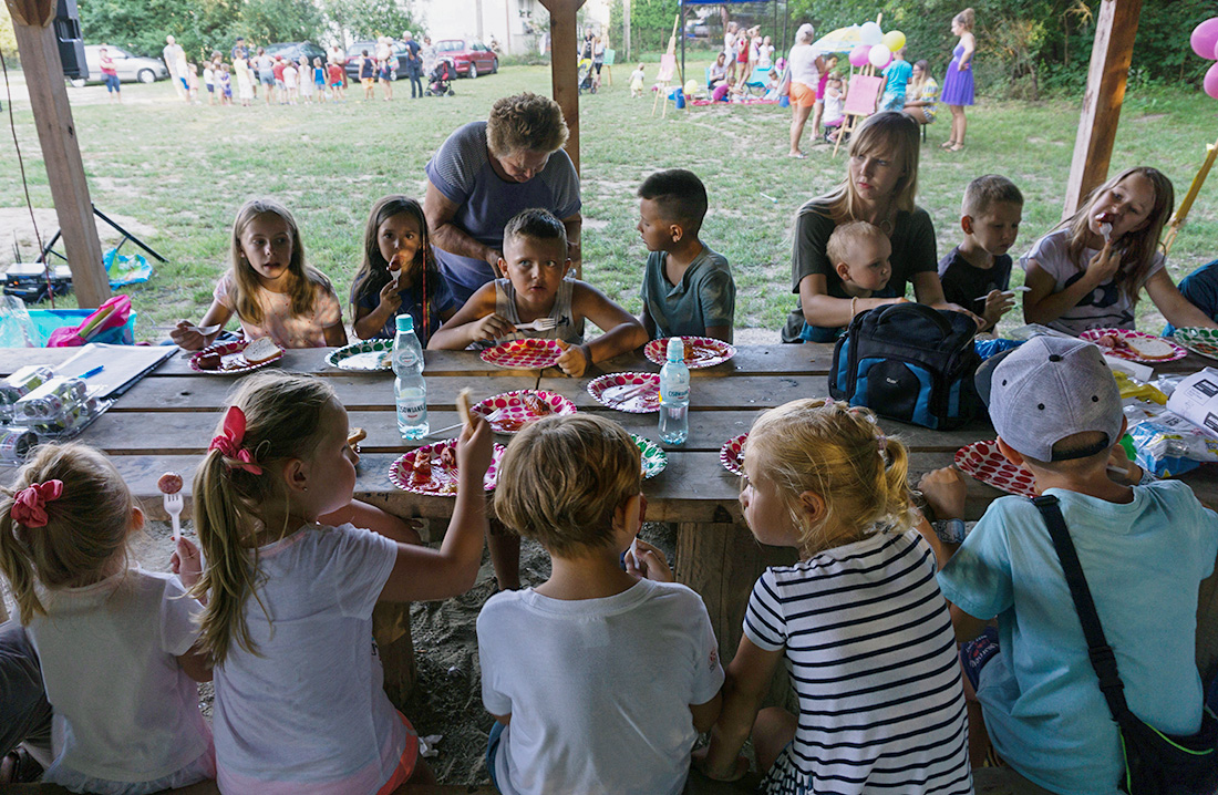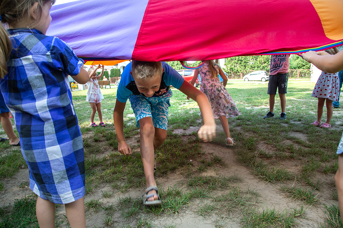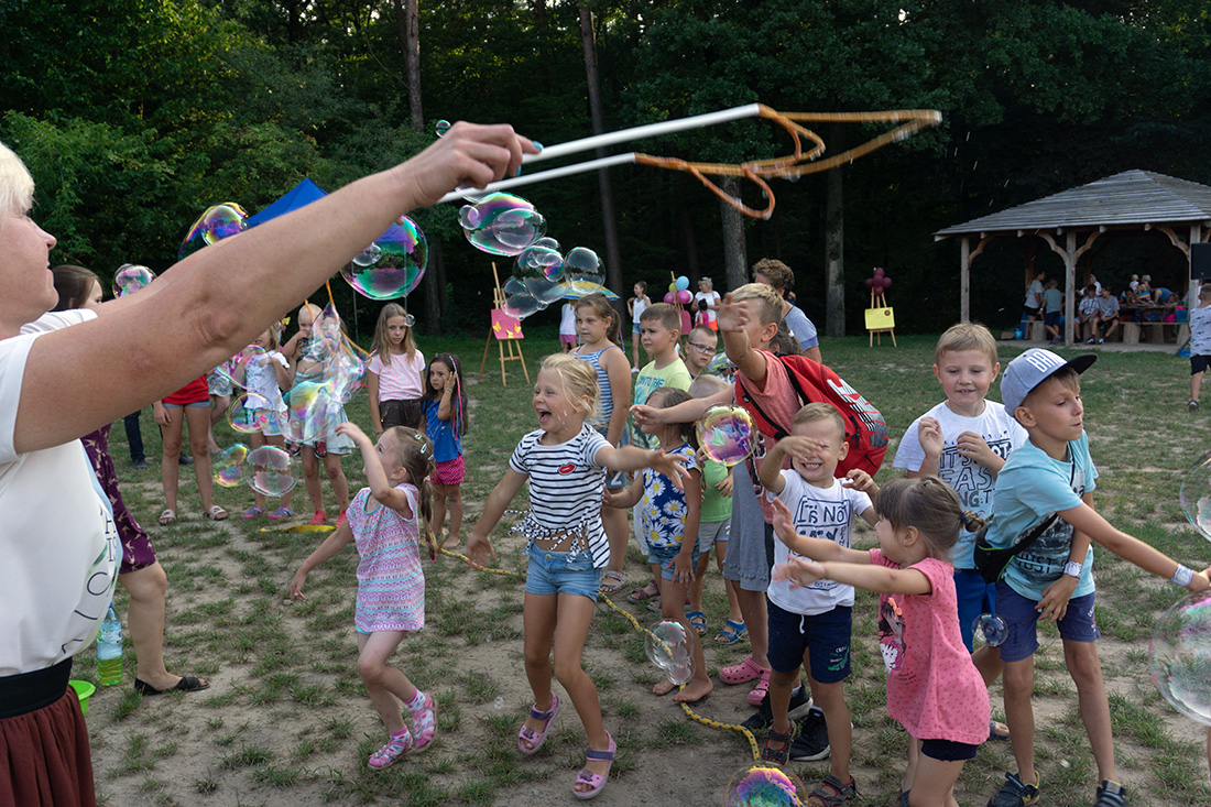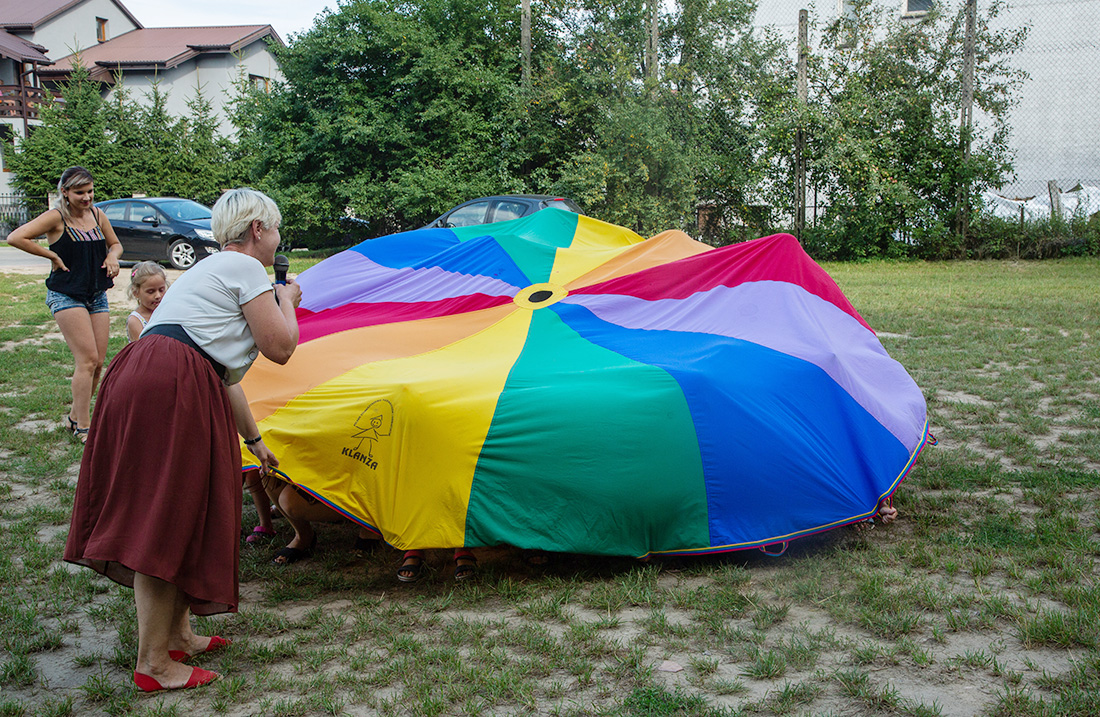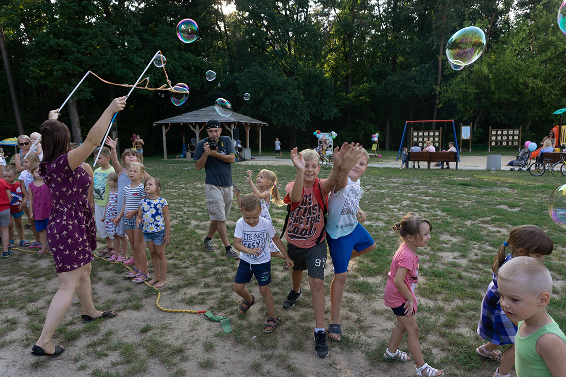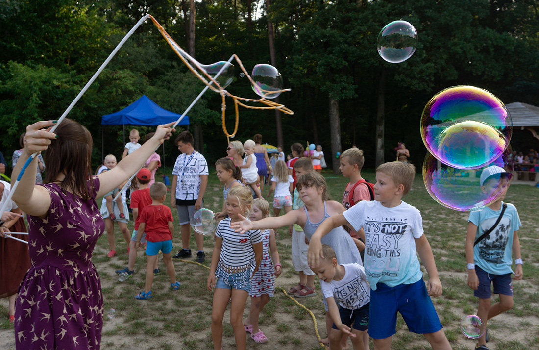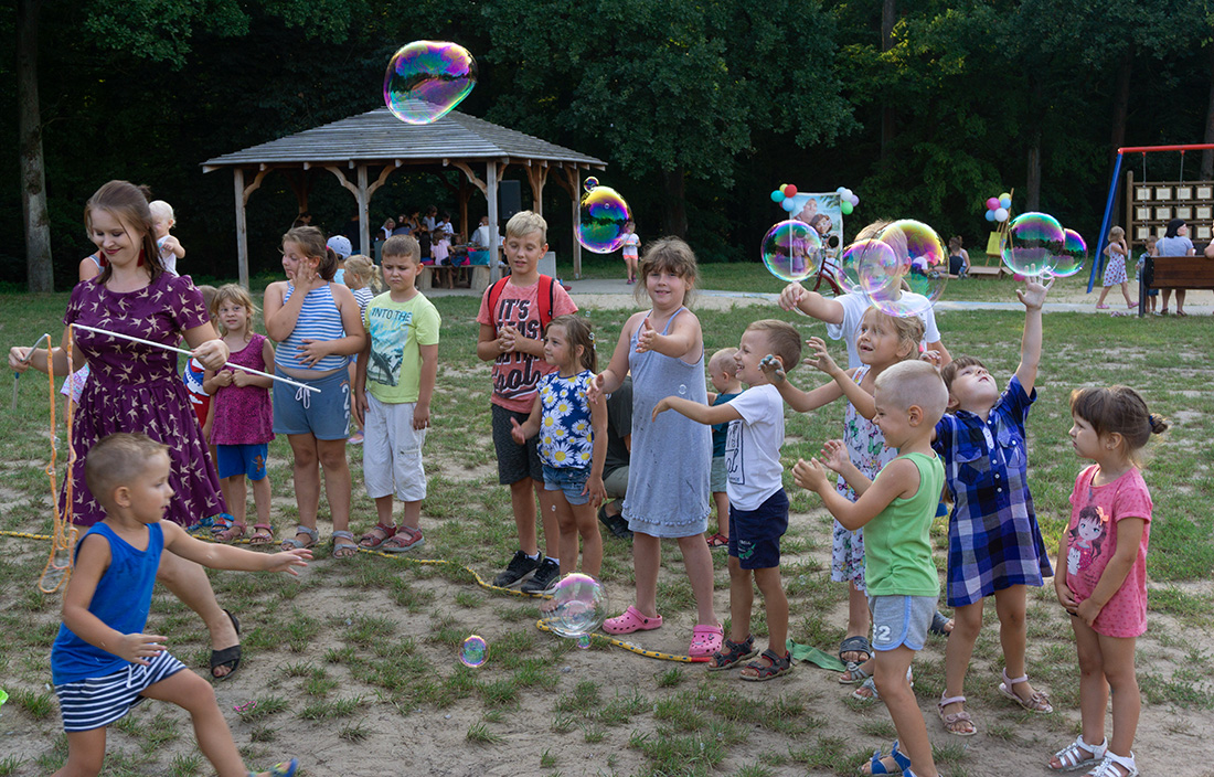 Na – prawie – zakończenie odbyła się konkurencja chwytania mydlanych baniek, wypuszczanych przez Kasię i Monikę Wojnarowską. Uczestnicy tej konkurencji po zbiciu kolorowej bańki udawali się na kiełbaski z grilla. Wystarczyło dla wszystkich dzieci i opiekunów.