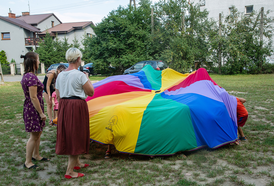 Organizatorzy imprezy prosili nas o przekazanie podziękowań wszystkim, którzy wsparli tegoroczne „Kolorowe Podwórko”. Spełniamy tę prośbę z przyjemnością i wymieniamy osoby, które wsparły „Kolorowe Podwórko”: Cezary Kołodziejski (mieszkaniec osiedla Grzanka), Rafał Romanowski z małżonką (mieszkańcy osiedla Grzanka), Hanna Skierkowska (mieszkanka osiedla Grzanka), Jacek Brzostek – firma Net-bis. Odblaski do quizu o ruchu drogowym przekazał Mirosław Augustyniak. Impreza nie byłaby tak udana, gdyby nie pomoc wolontariuszy. Koordynatorem grupy młodzieży była Monika Wojnarowska, a w skład grupy wchodzili: Maja Zaradkiewicz, Patryk Osiński, Daria Ruszczyńska, Kinga Jelińska, Laura Myślak, Patrycja Leleń.