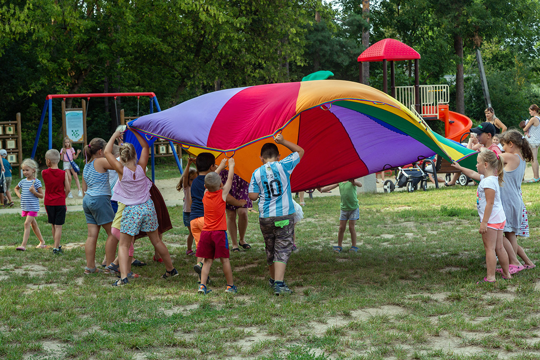 Plac zabaw pod lasem zapełnił się atrakcyjnymi stoiskami.